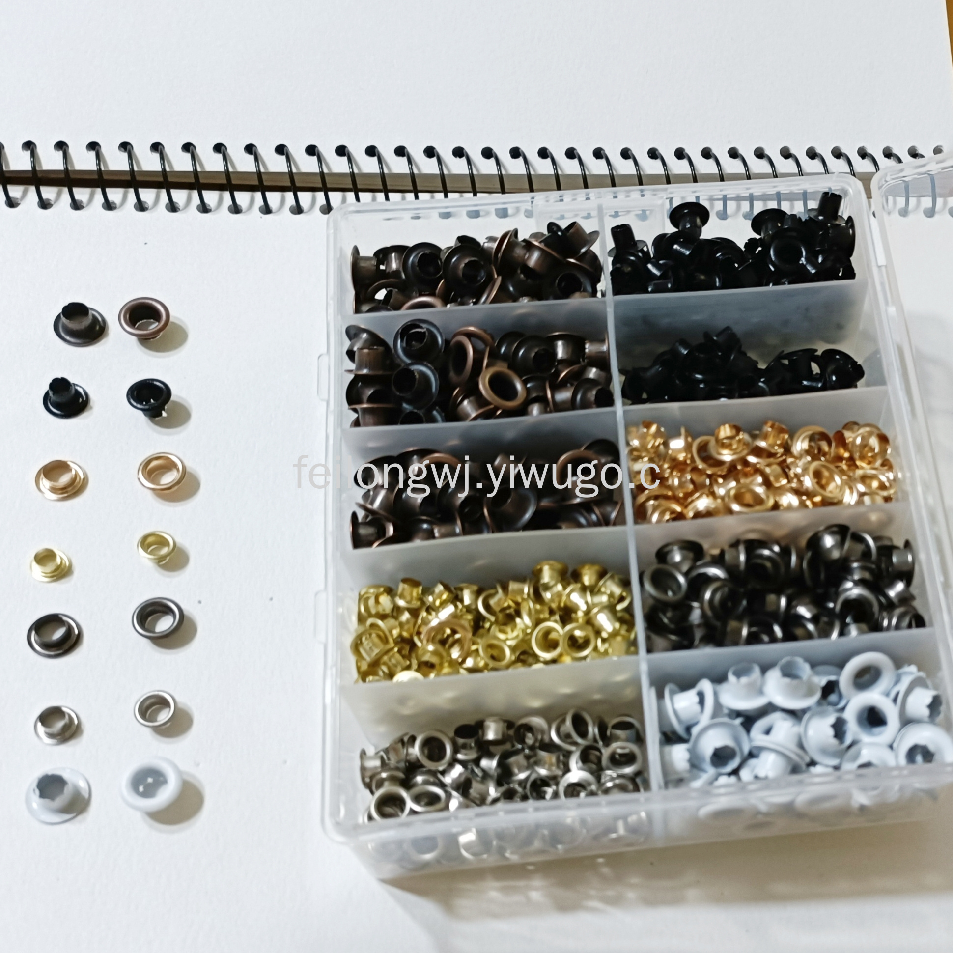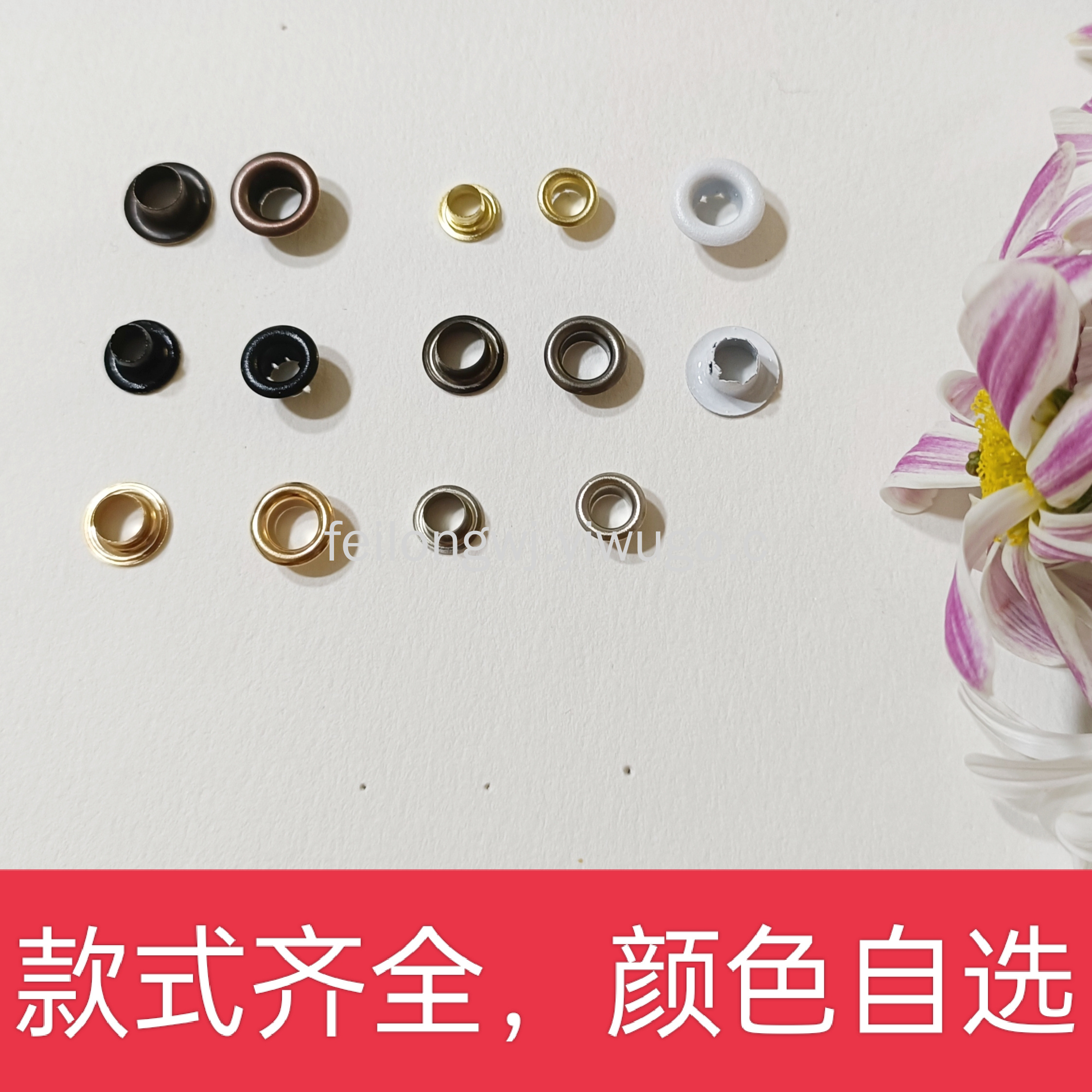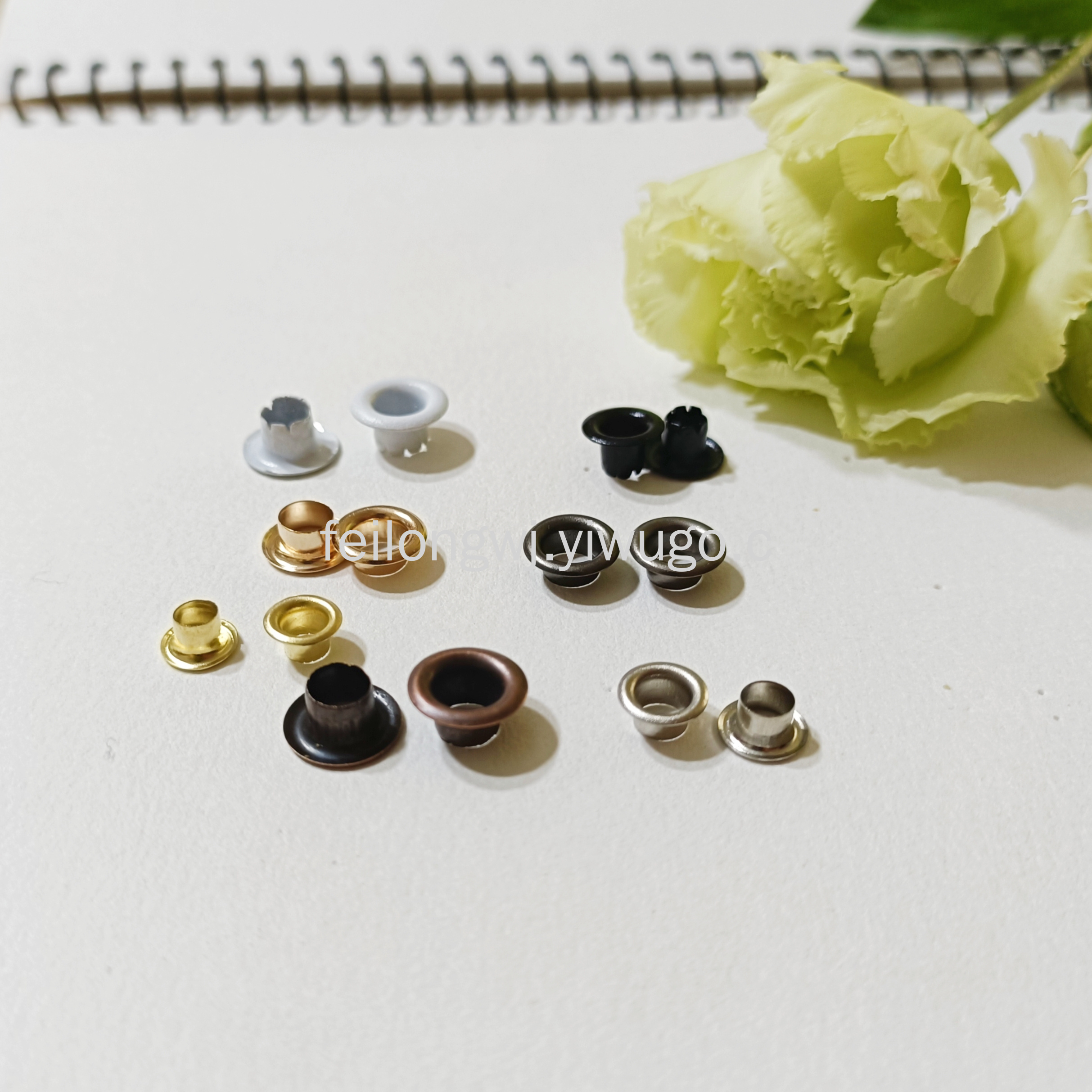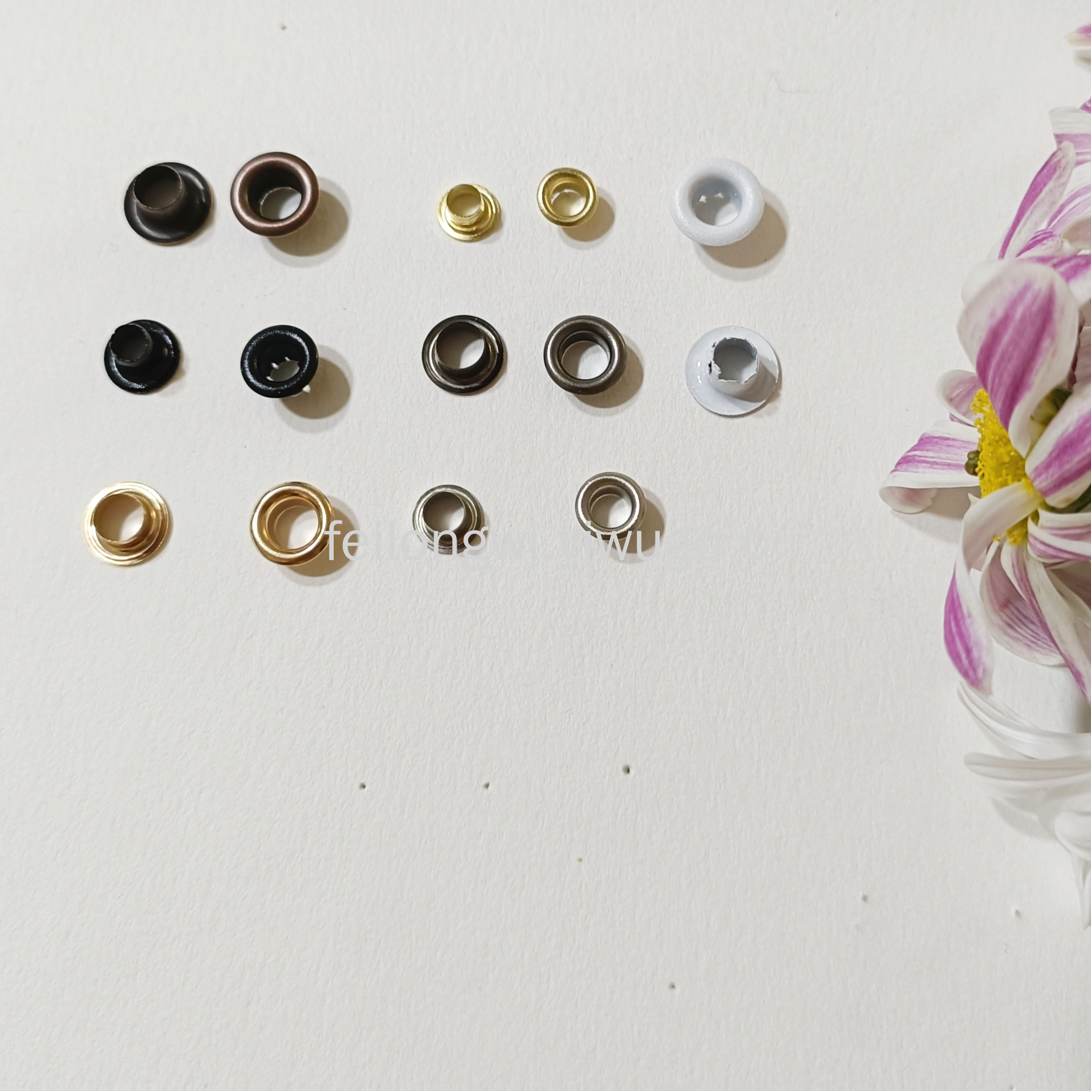 Ojo de pollo metálico inoxidable abrochado con ojeras, remachado con borde circular abrochado con pintura a la parrilla de cobre y hierro Chapada en oro y fijación de botones plateados