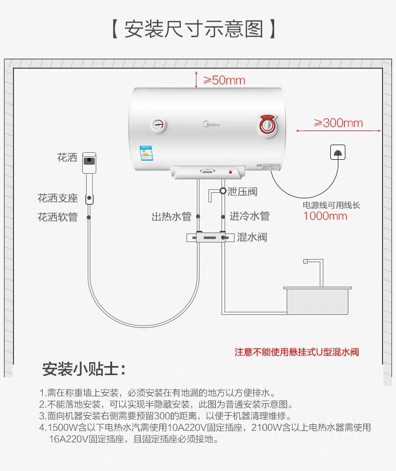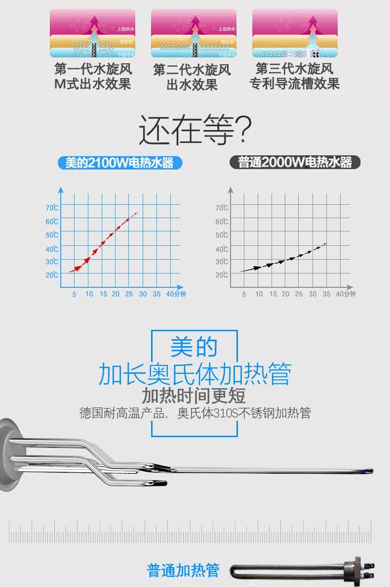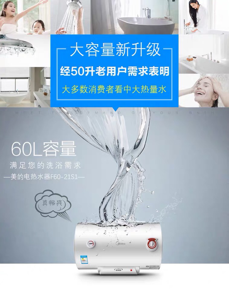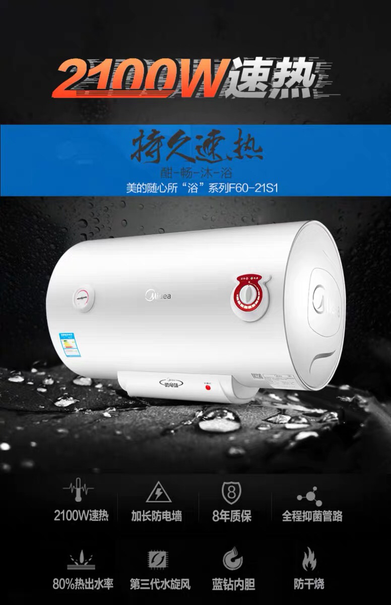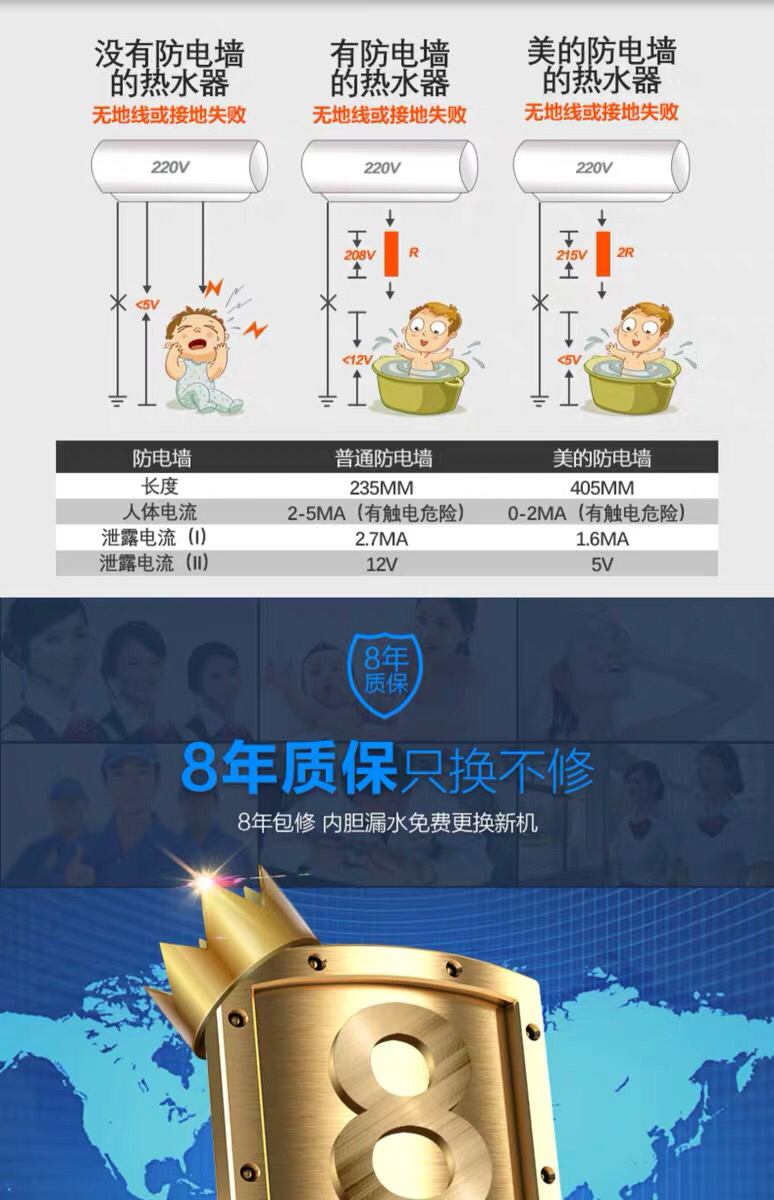 Midea / midea 60 litros de calentador de agua térmico rápido de almacenamiento de agua alquiler de baño pequeño para bañarse 60l