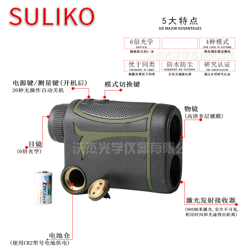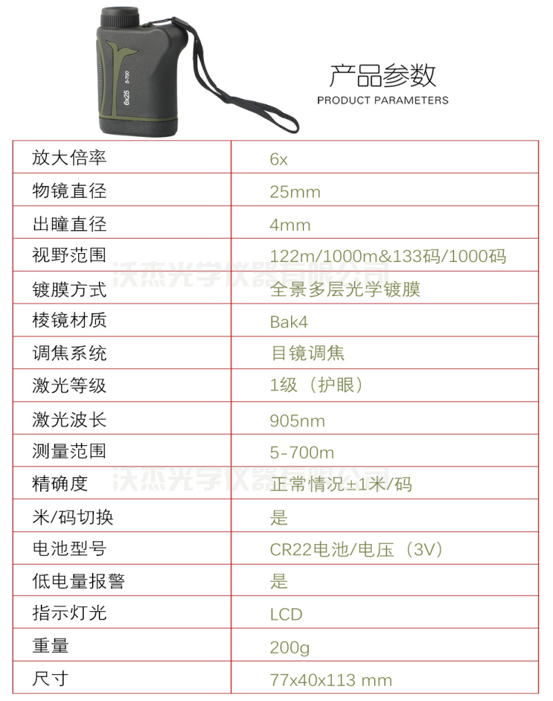 Xiju Suliko 6x25 telémetro de 700 metros infrarrojos portátil telescopio de telémetro láser infrarrojo