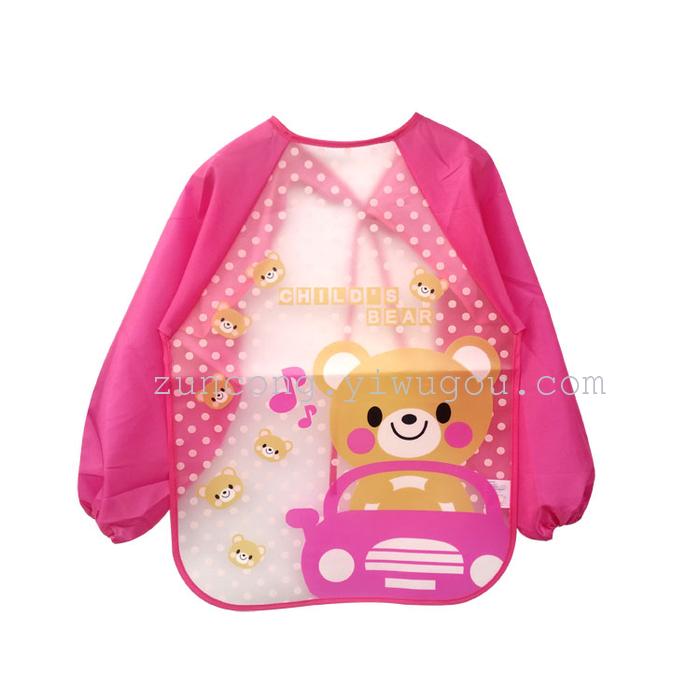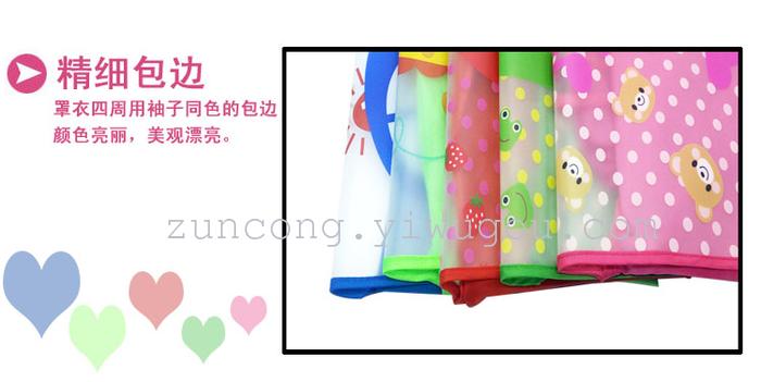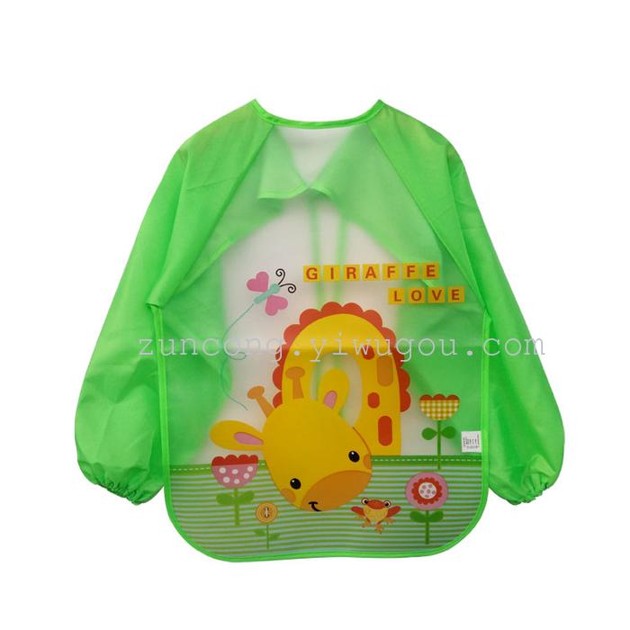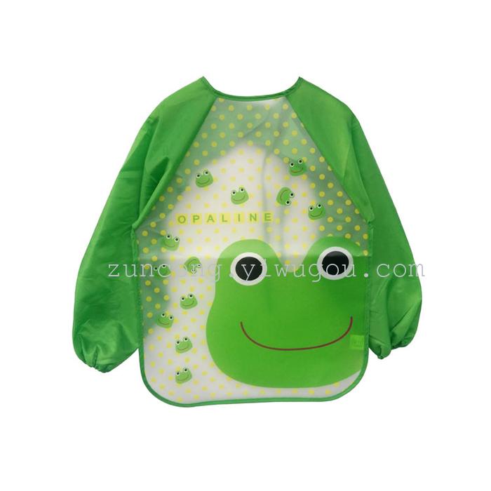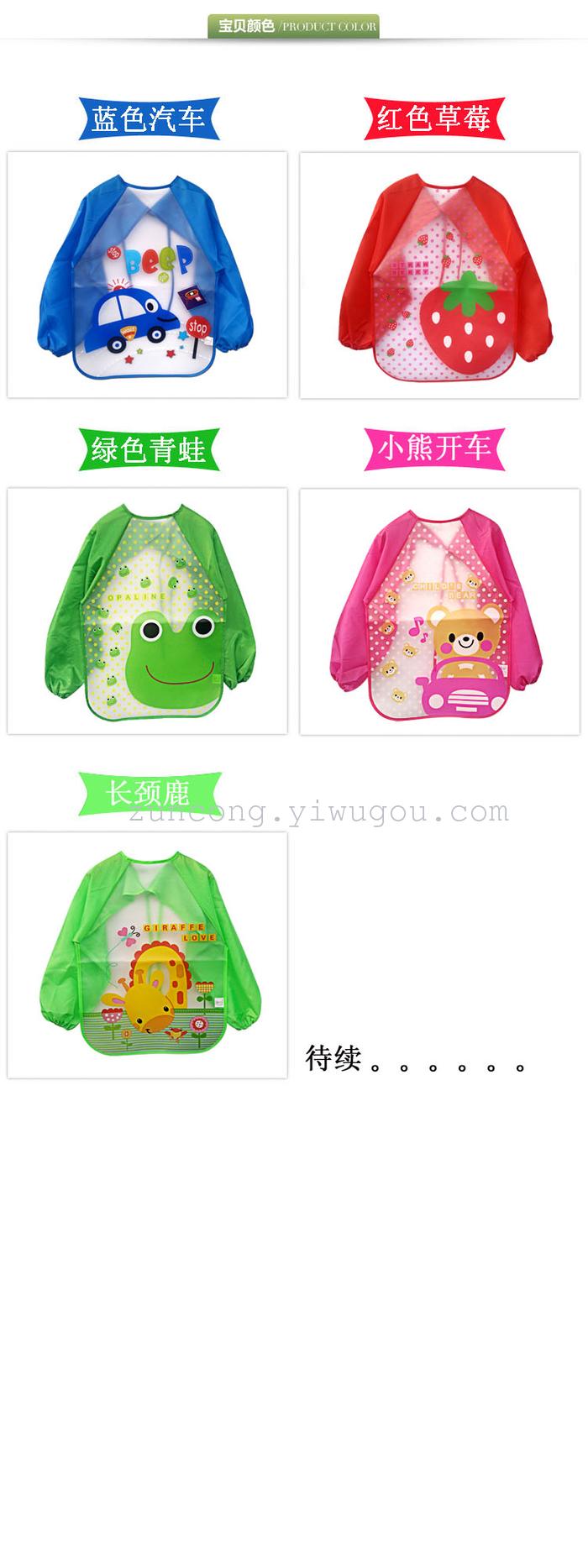 适用性别:中性/男女均可 货号:1107 图案:卡通|动物|字母|头像|图案 面料:防水环保EVA+涤纶 颜色:绿色|浅蓝色|粉红色 货源类别:现货 适用年龄:幼儿装(1-3岁)|婴儿装(0-1岁) 成分:涤纶 是否外贸:是 产品类别:罩衣 主图来源:实拍无模特 功能:防水防脏 适用年龄段:儿童 是否库存:否 外贸类型:出口