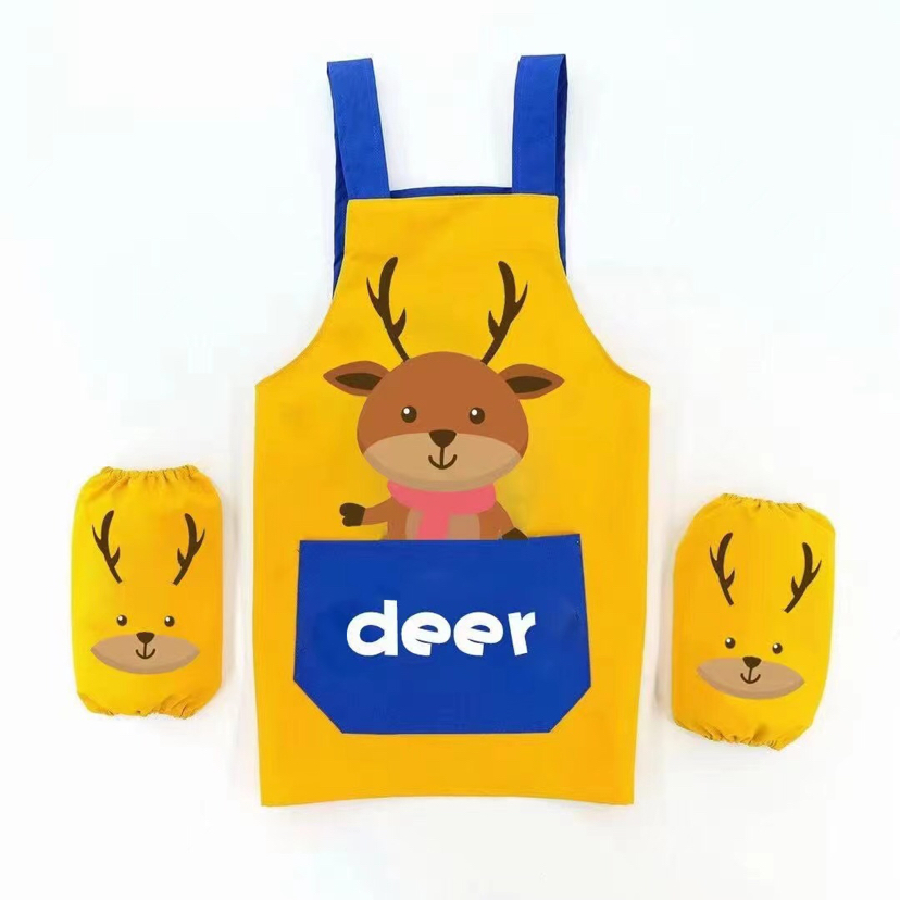 Ropa de pintura para niños autoproducida y vendida jardín de infantes dibujos animados contra la ropa, ropa de cubierta y delantal de bebé con mangas