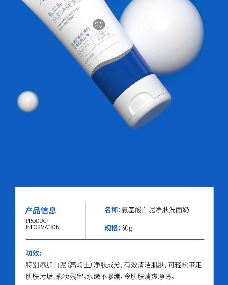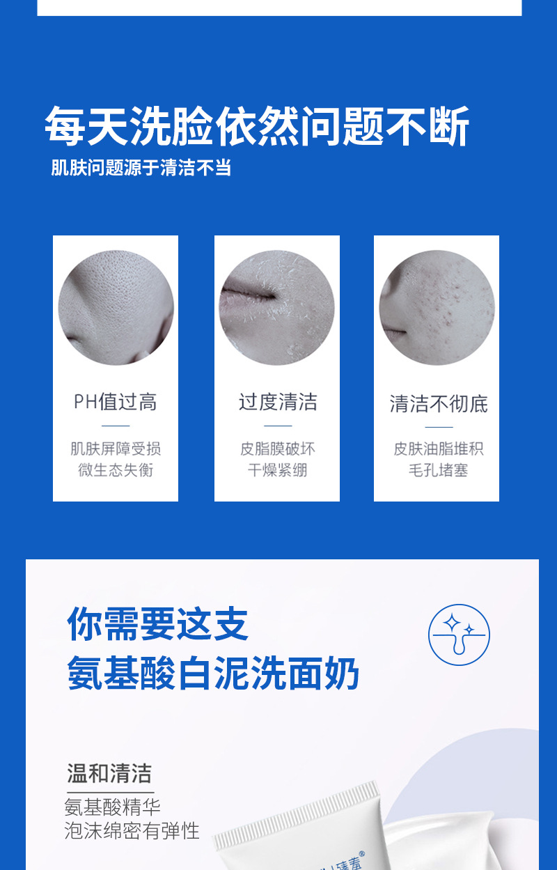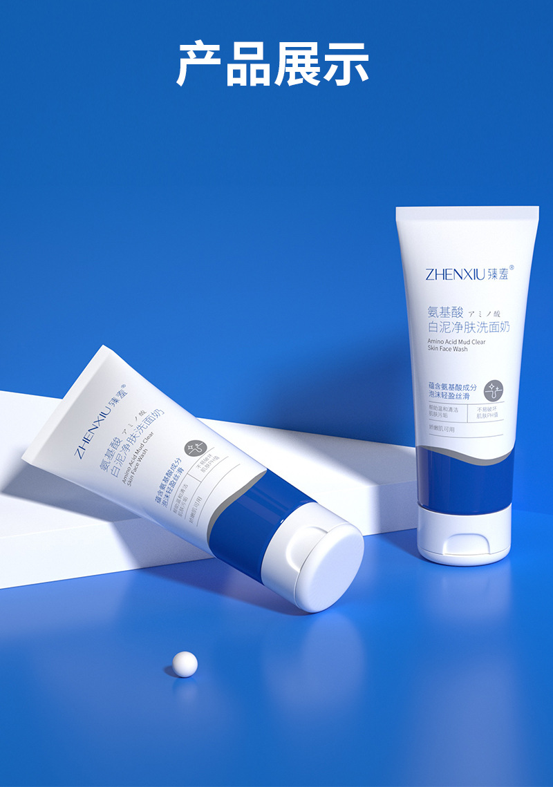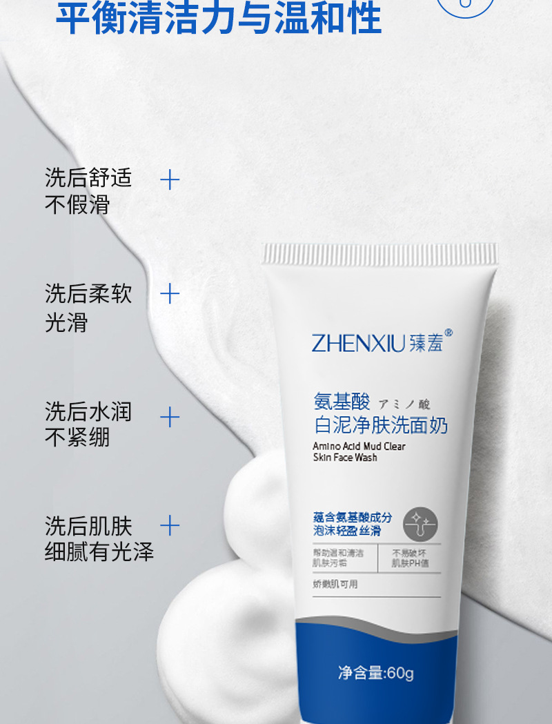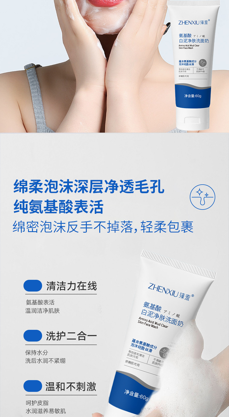 Zhenxi aminoácidos barro blanco leche de lavado facial limpieza de cabeza negra contracción de poros limpieza acné control facial leche de limpieza al por mayor para hombres y mujeres