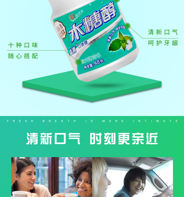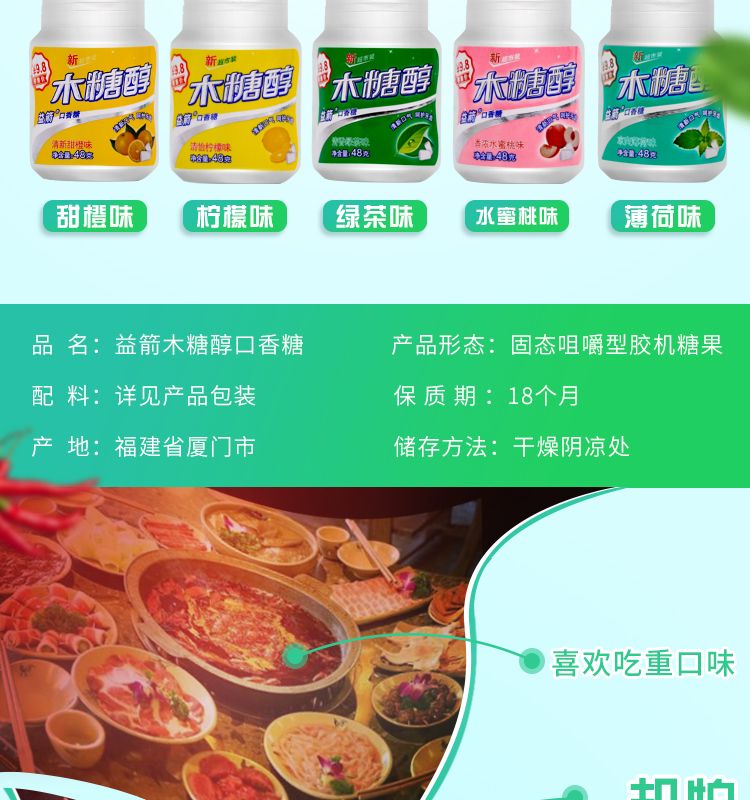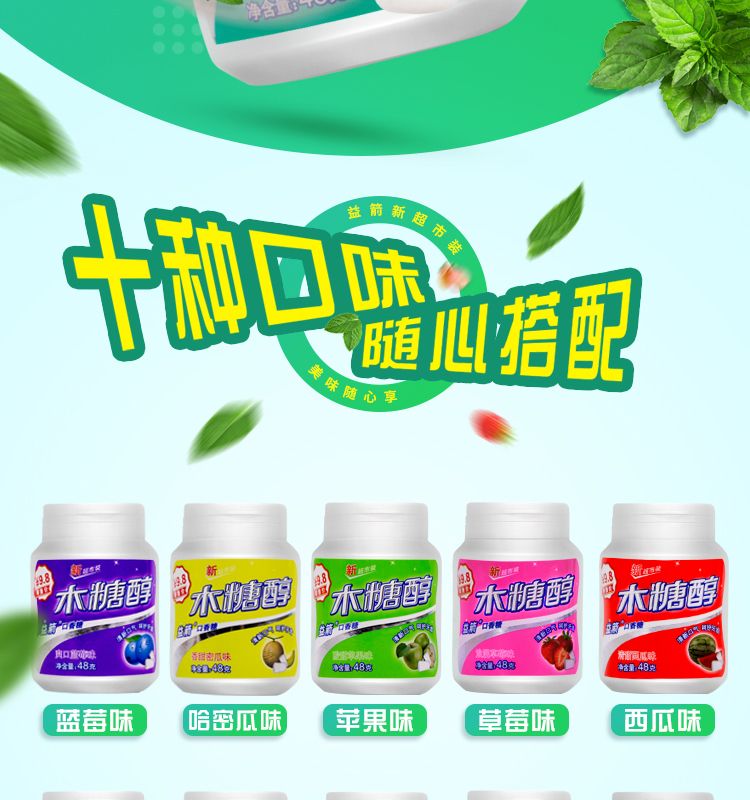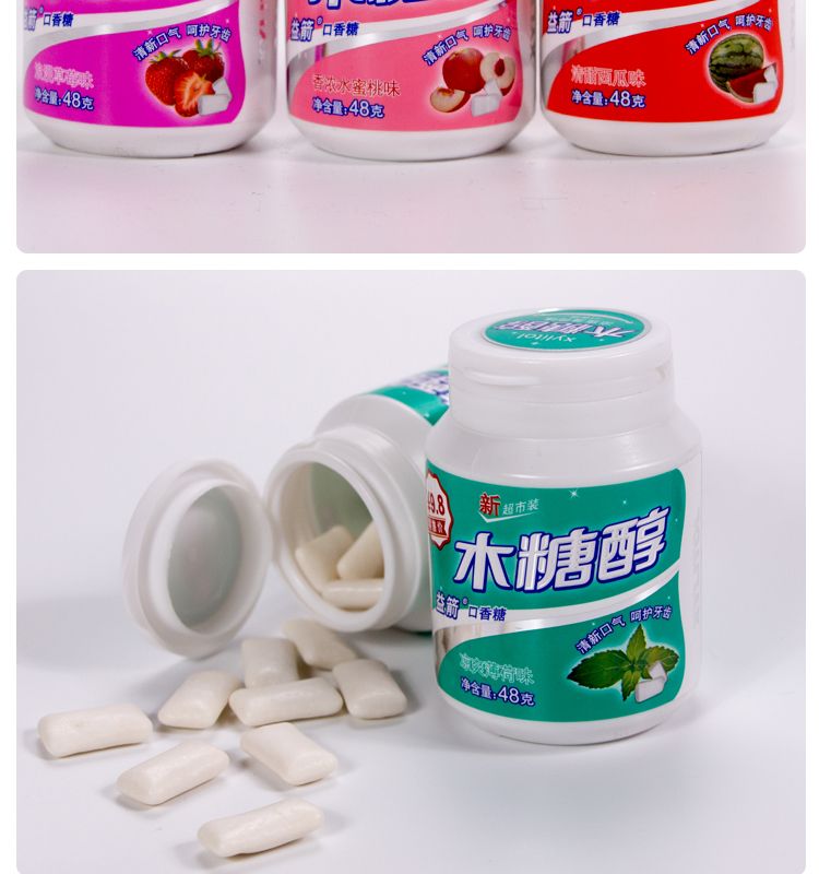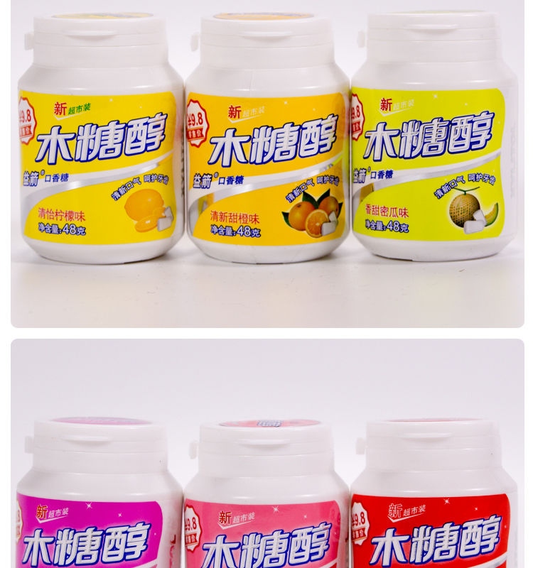 Tres botellas de chicle fresco de Xilitol yijian venta al por mayor de dulces con sabor a fruta, productos de año nuevo, cero fabricantes de alimentos venta al por mayor