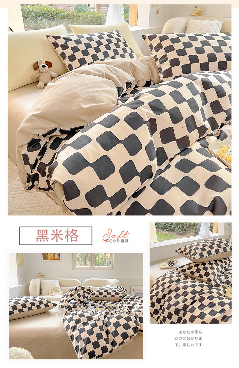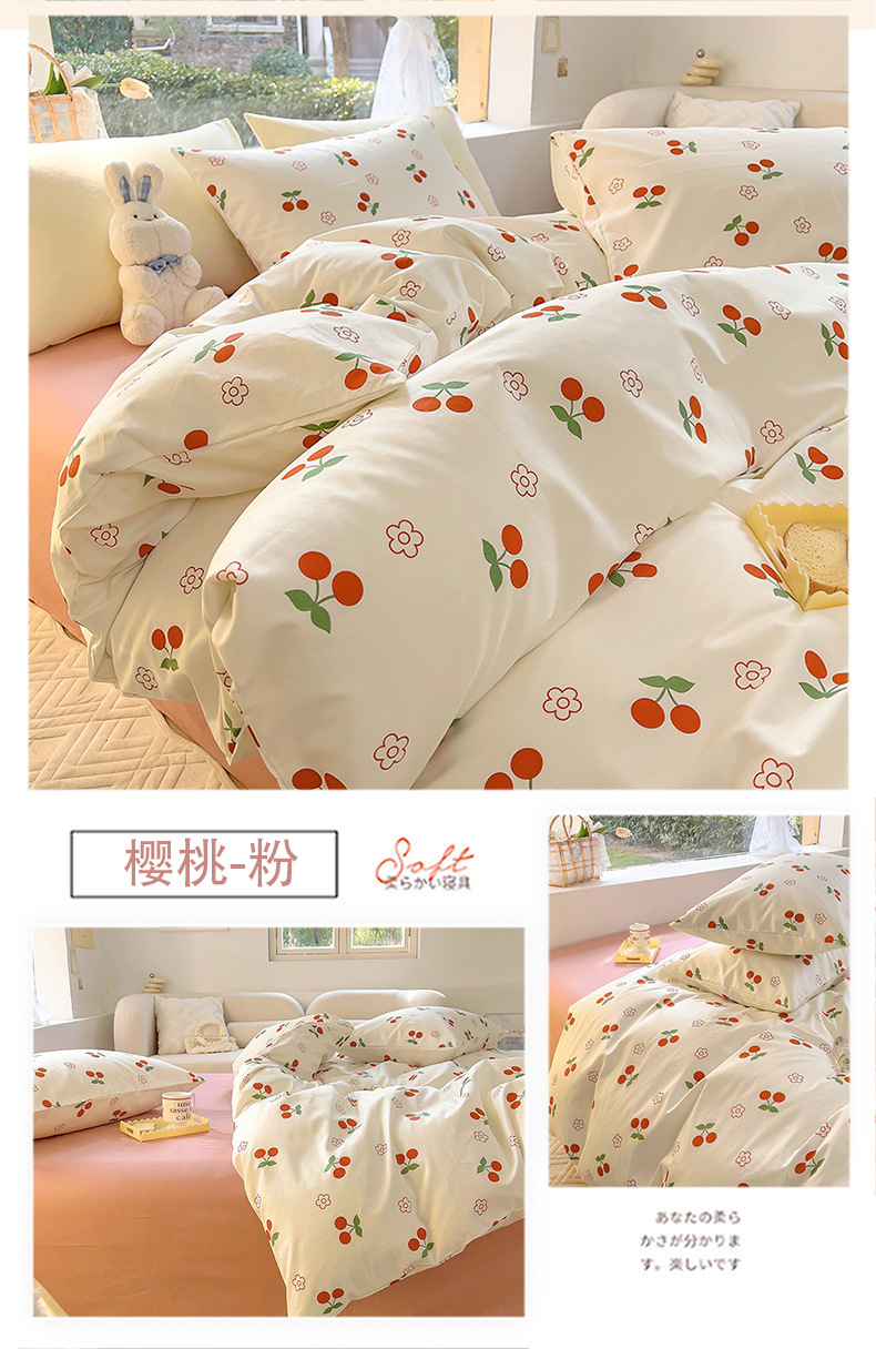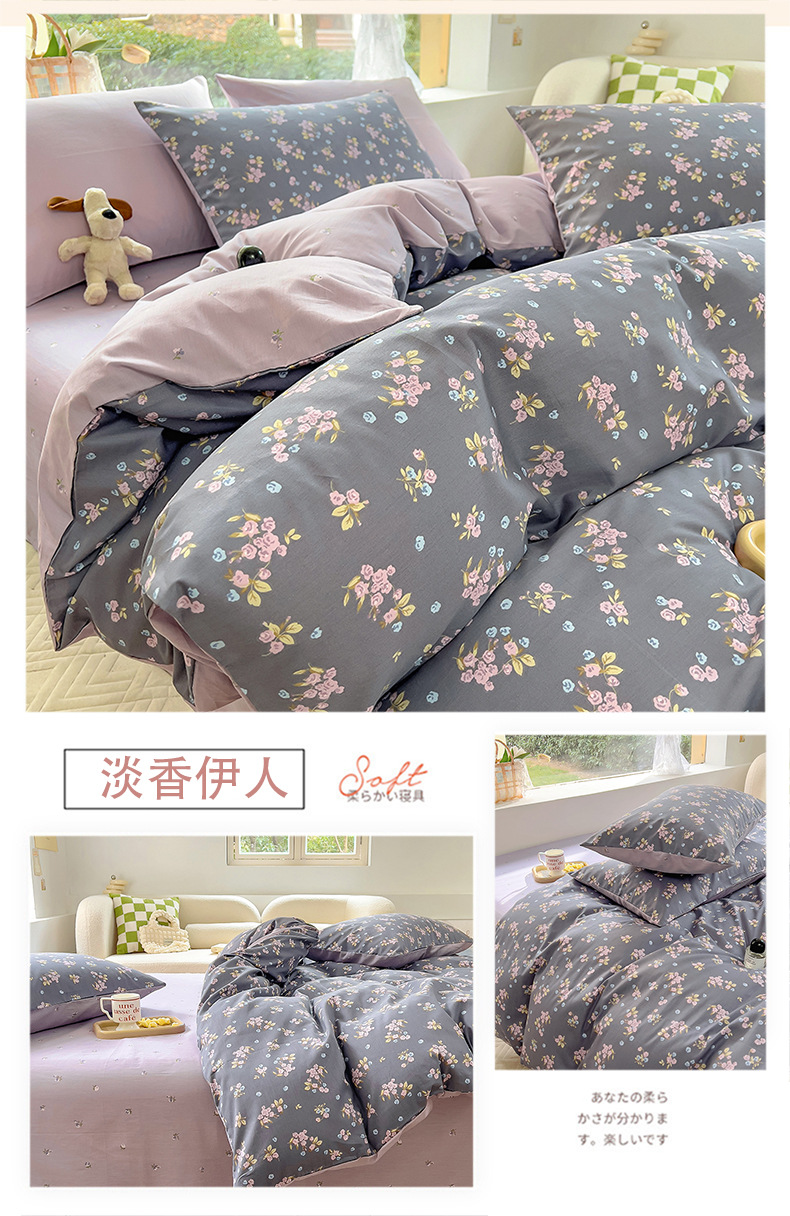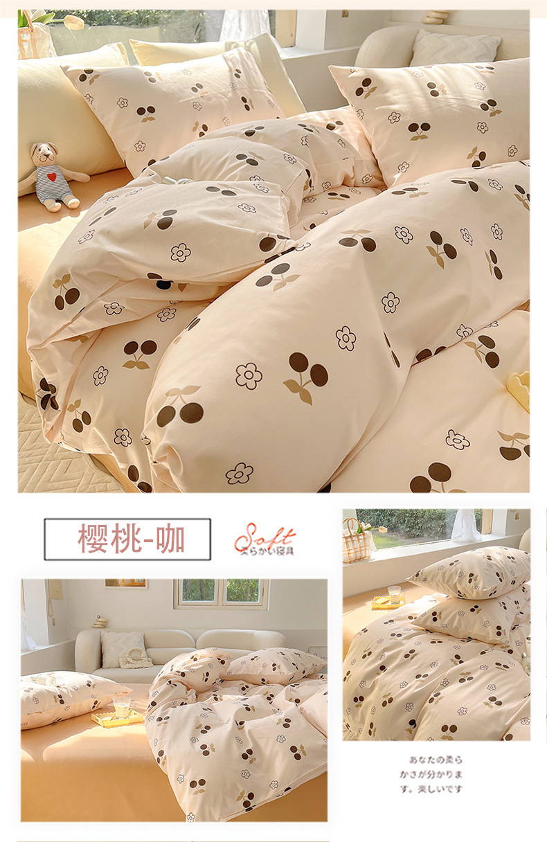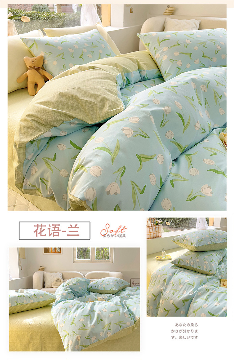 60 juegos de chorro de aire de algodón de cuatro piezas, ropa de cama de impresión activa, pequeña y fresca, 4 juegos de cama, modelo de hoja de algodón simple