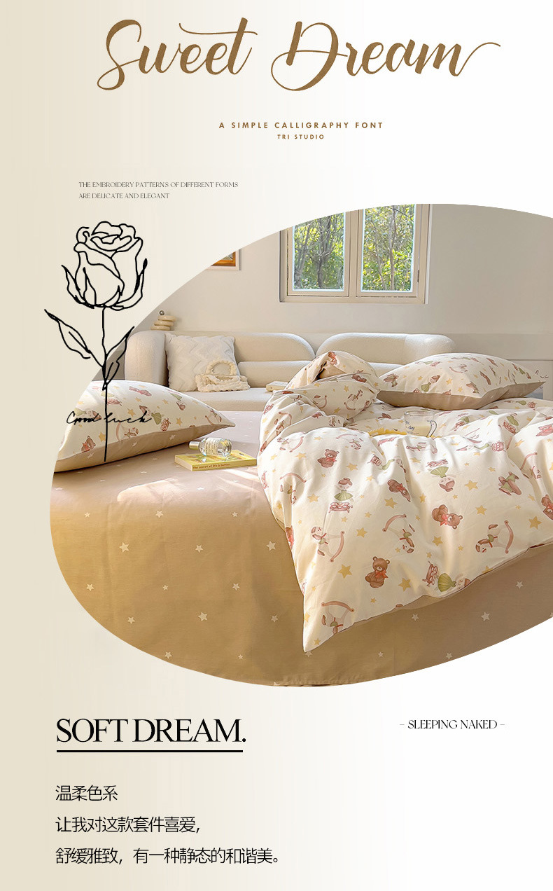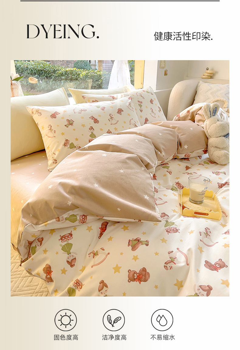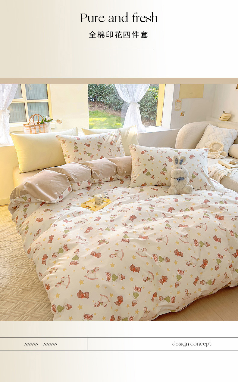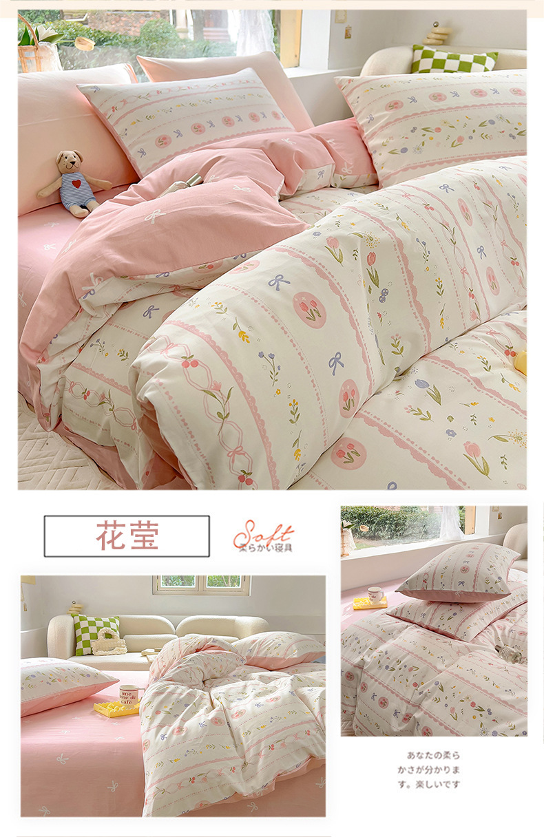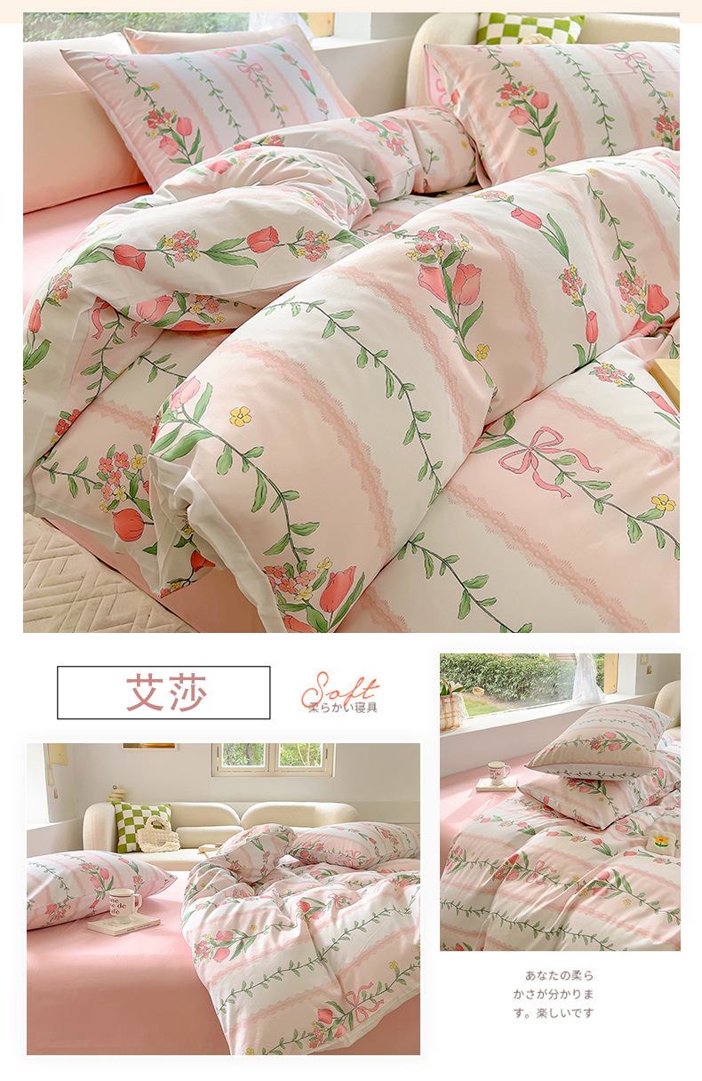 60 juegos de chorro de aire de algodón de cuatro piezas, ropa de cama de impresión activa, pequeña y fresca, 4 juegos de cama, modelo de hoja de algodón simple