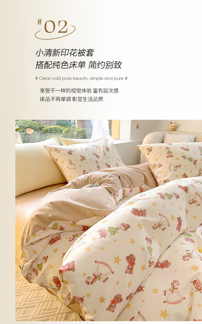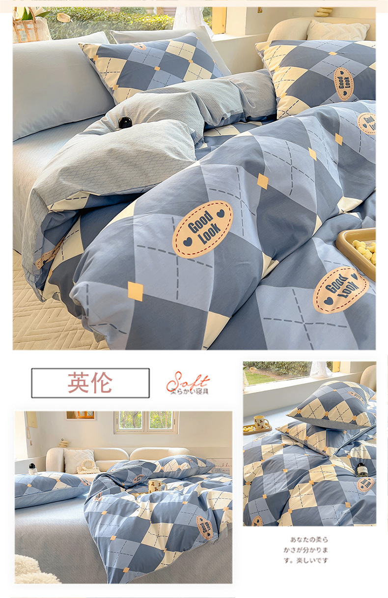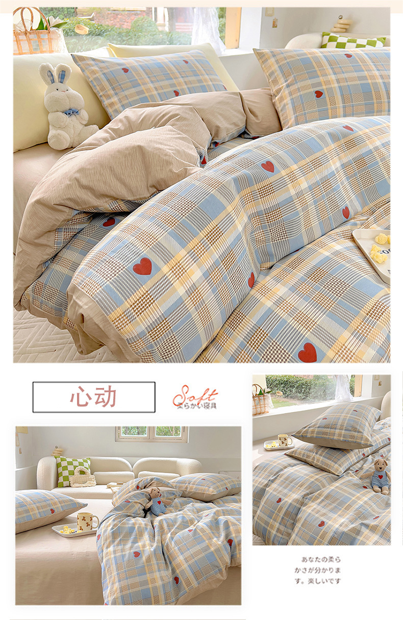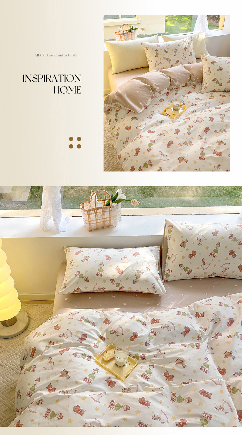 60 juegos de chorro de aire de algodón de cuatro piezas, ropa de cama de impresión activa, pequeña y fresca, 4 juegos de cama, modelo de hoja de algodón simple