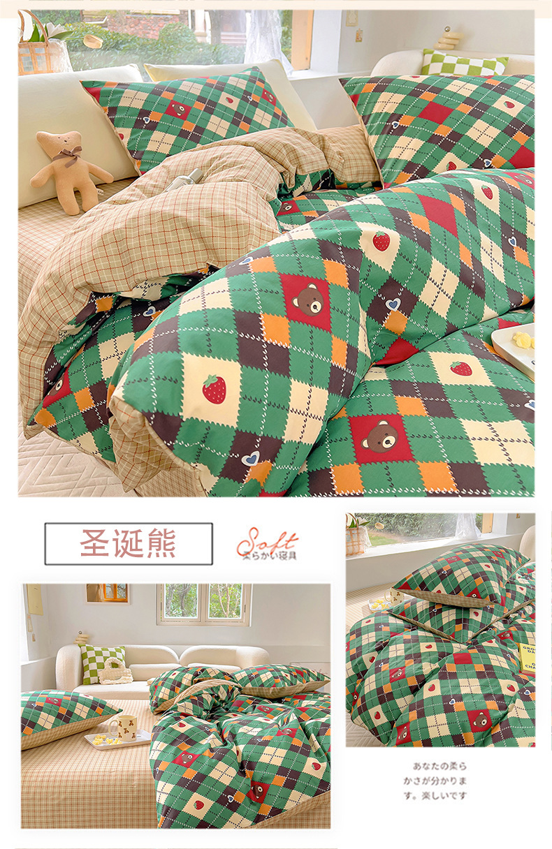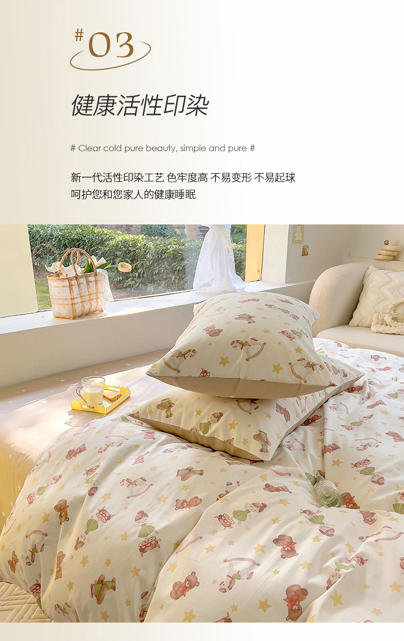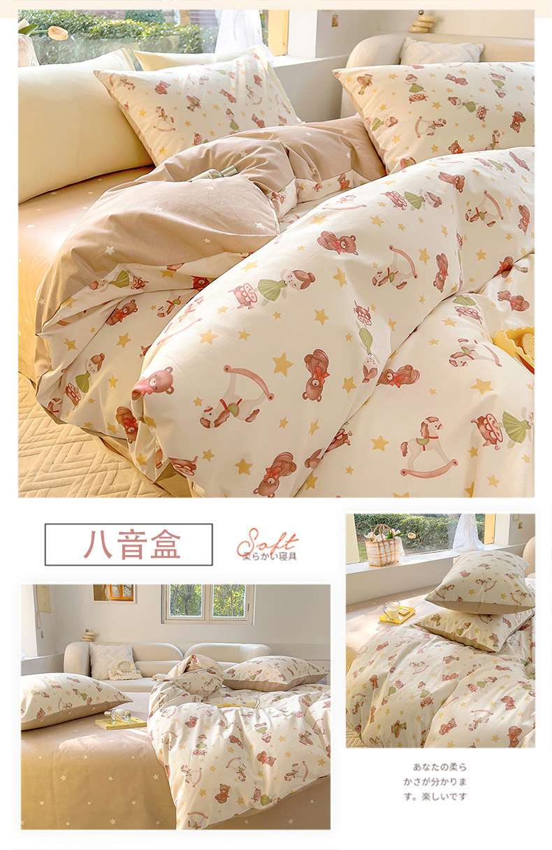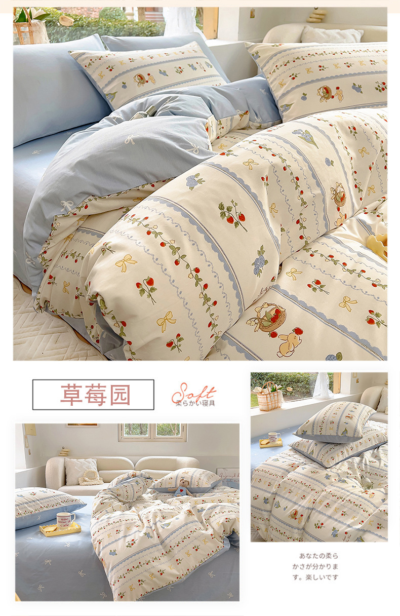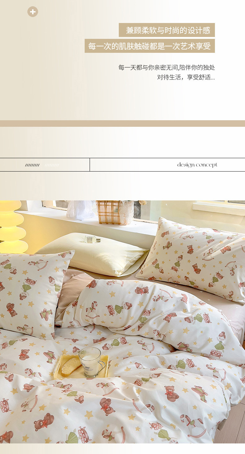 60 juegos de chorro de aire de algodón de cuatro piezas, ropa de cama de impresión activa, pequeña y fresca, 4 juegos de cama, modelo de hoja de algodón simple