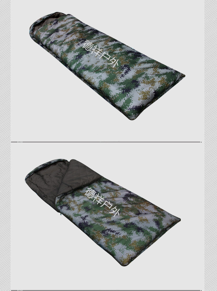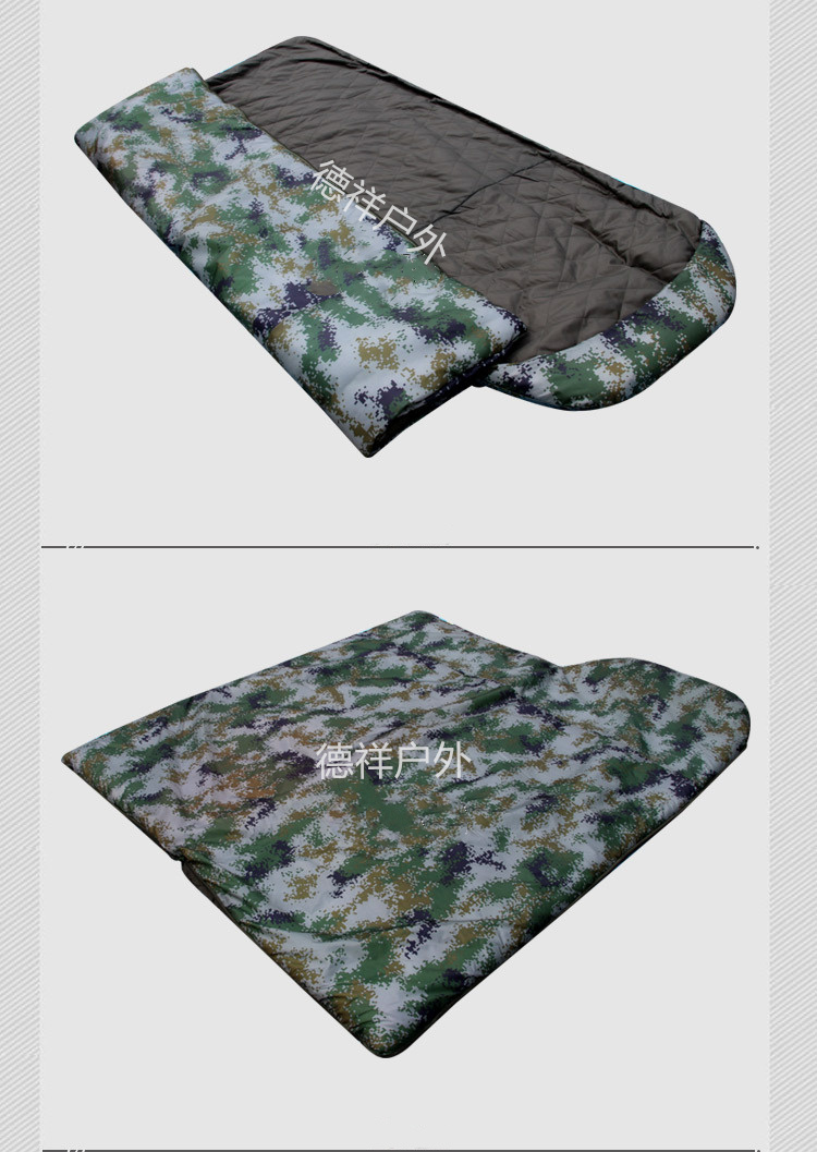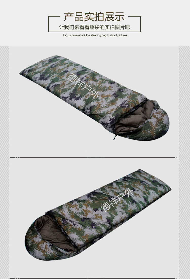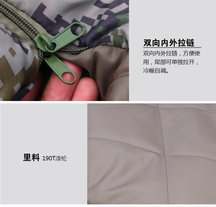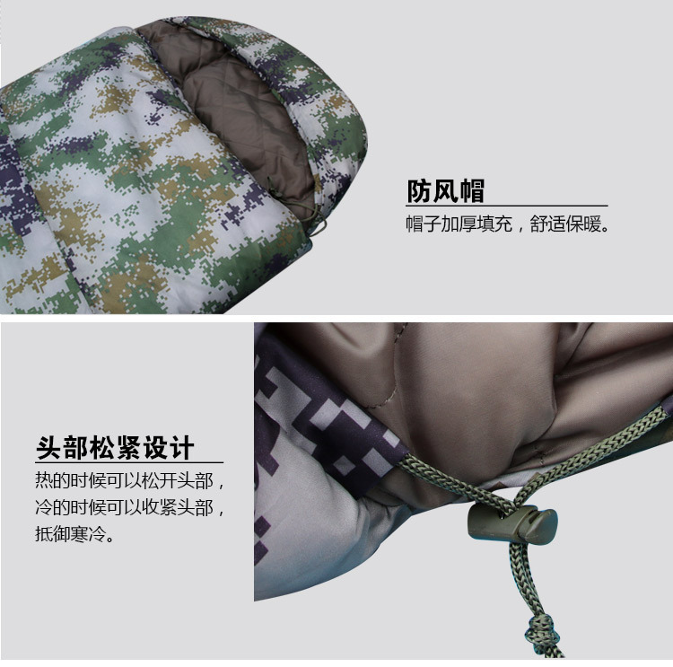 产品名称:2.4KG冬季加厚便携挎包型户外野营信封带帽迷彩睡袋