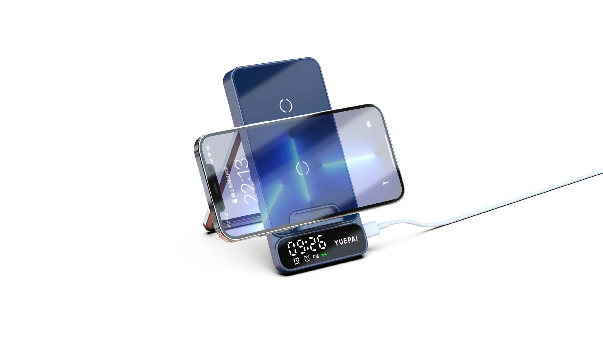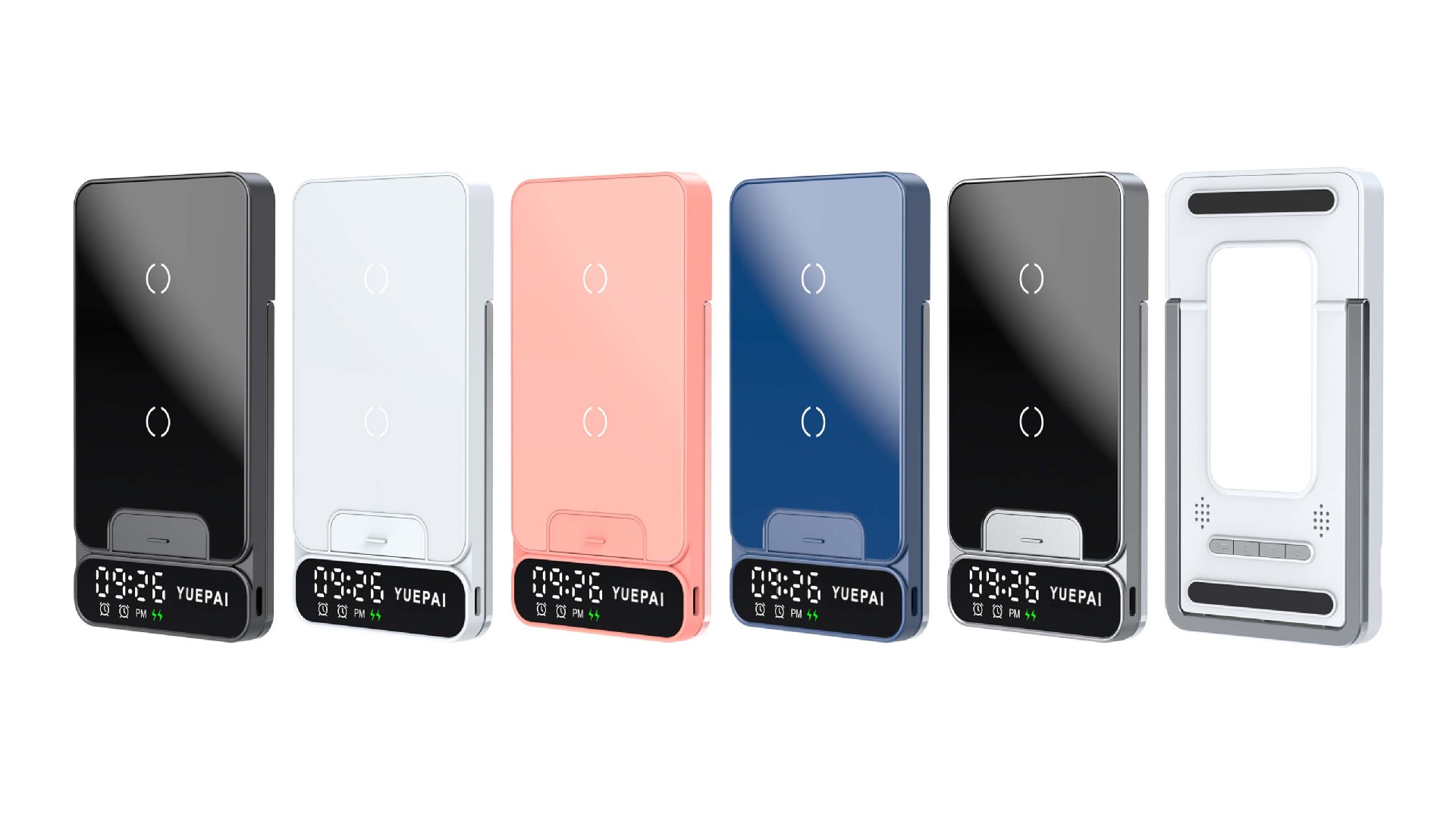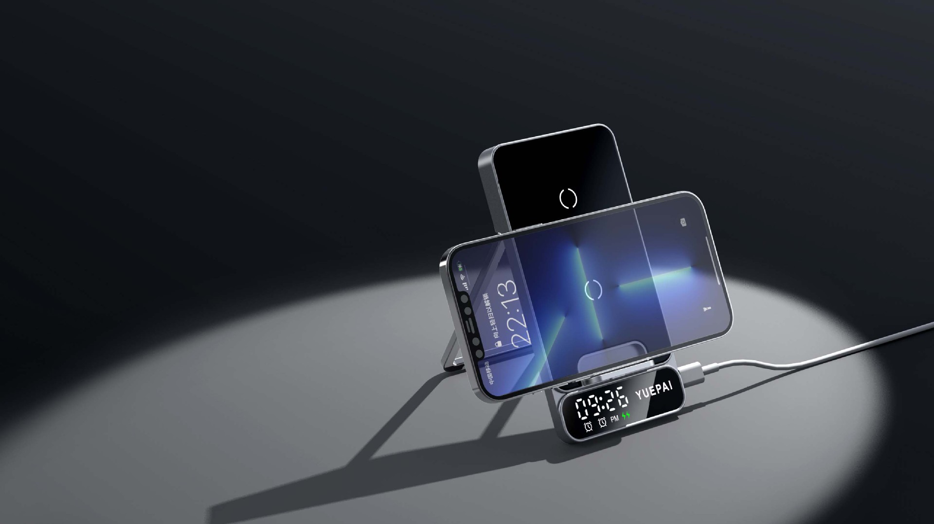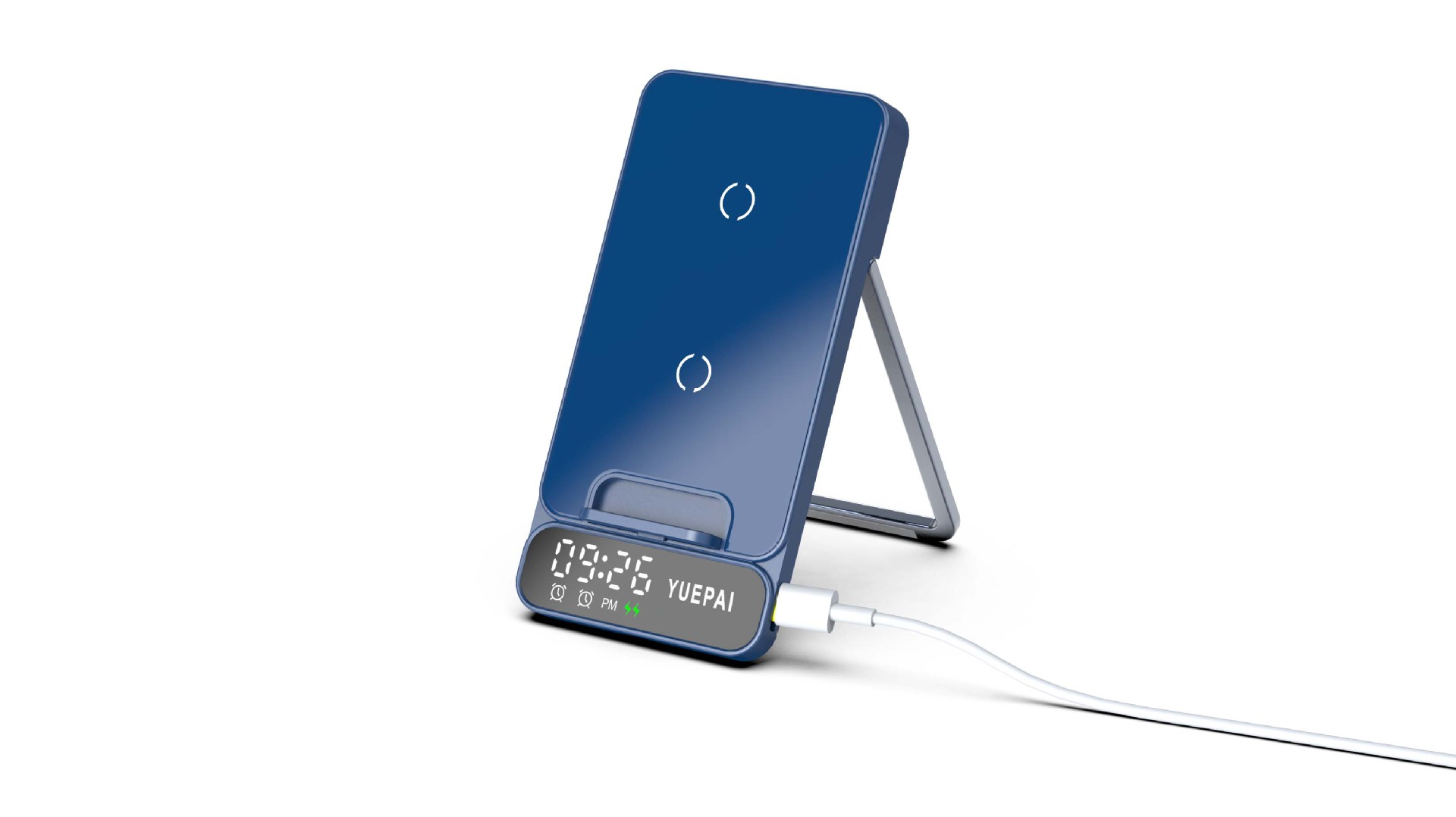 产品特性: u 支持全系自带无线充电技术手机充电,功率最大支持15W u 手机支持横放竖放,让你在不同情景使用不同方式充电 u 自带闹钟24h制,轻松设置自我需求 u 背面自带LED放夜晚不再惧怕黑暗