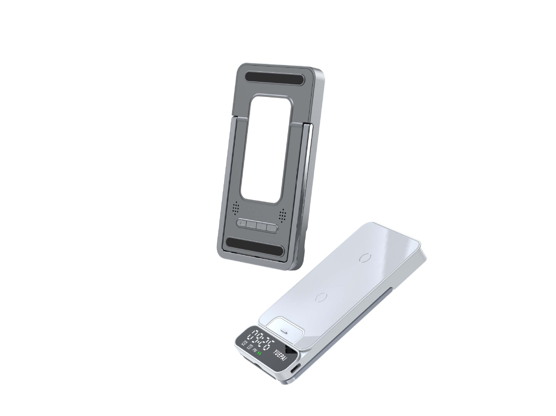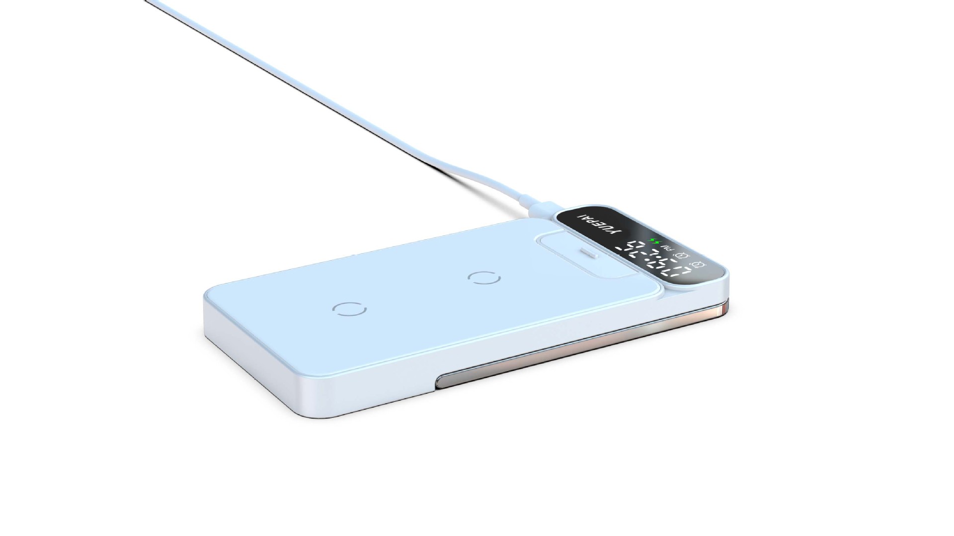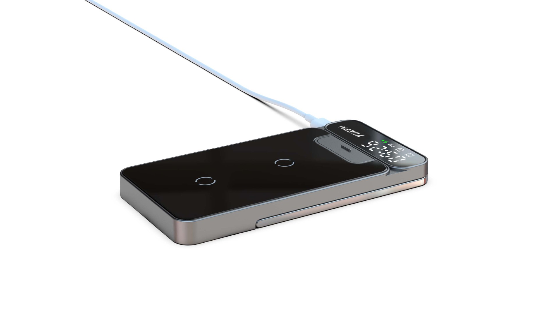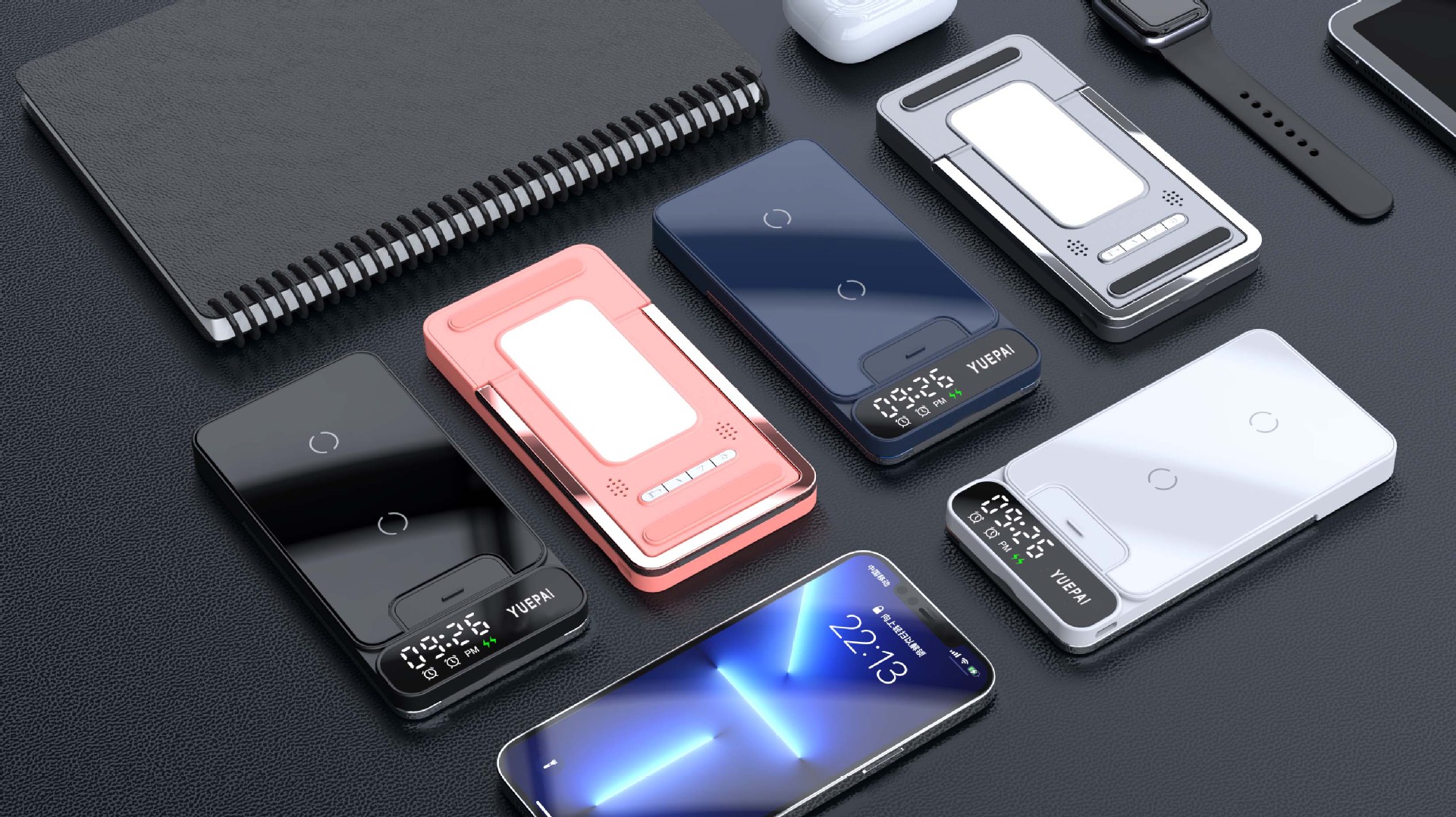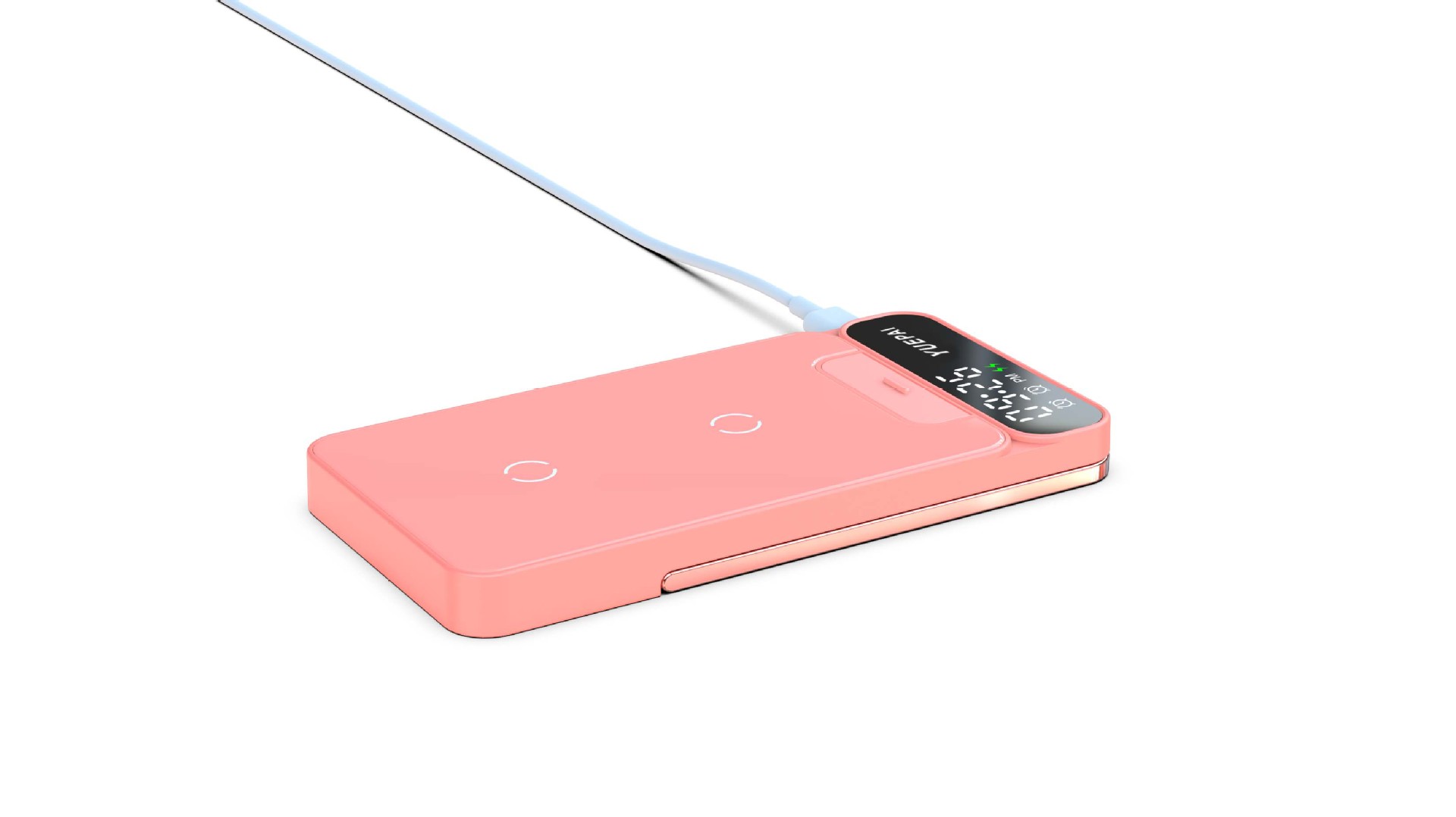 产品特性: u 支持全系自带无线充电技术手机充电,功率最大支持15W u 手机支持横放竖放,让你在不同情景使用不同方式充电 u 自带闹钟24h制,轻松设置自我需求 u 背面自带LED放夜晚不再惧怕黑暗