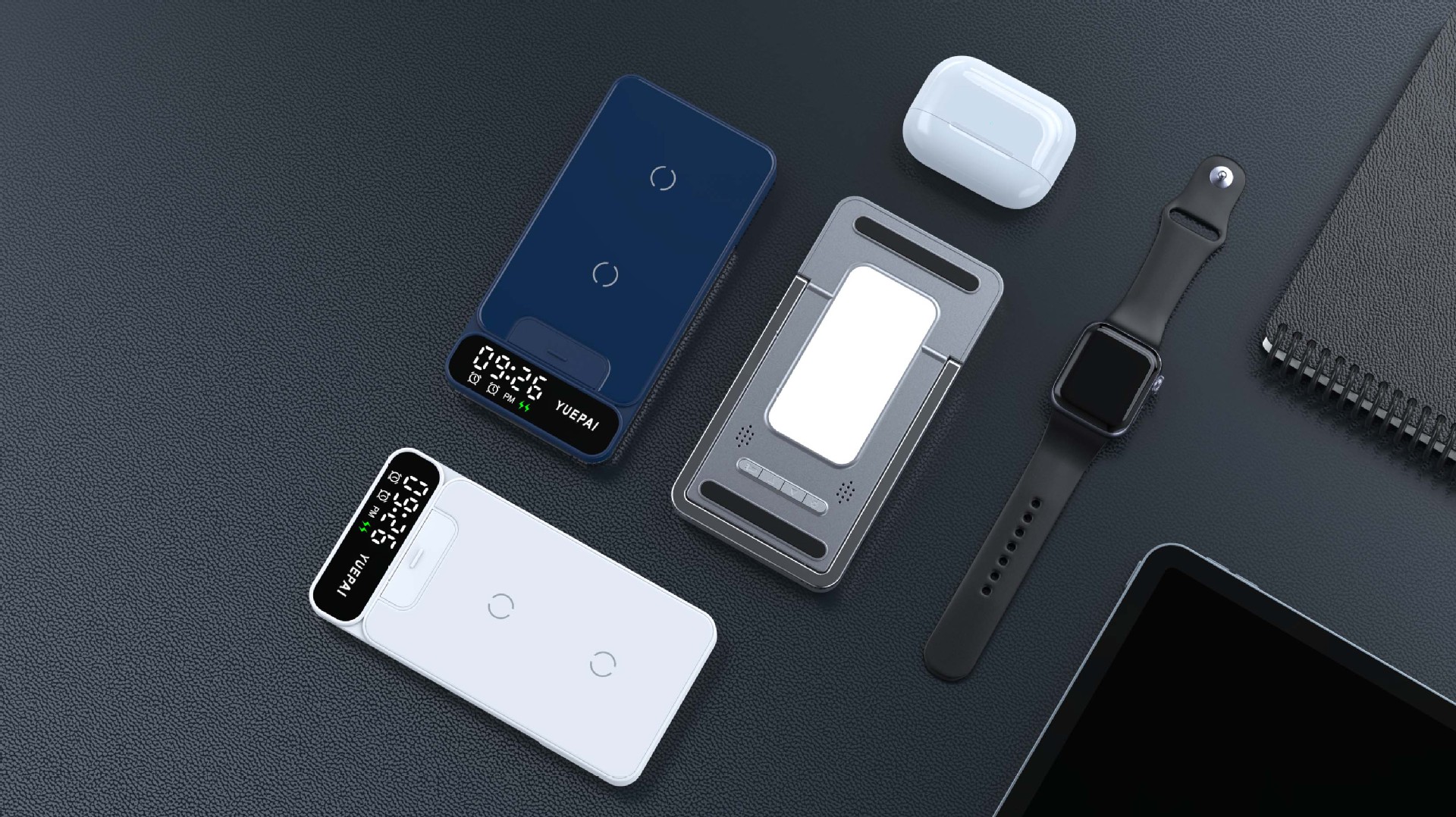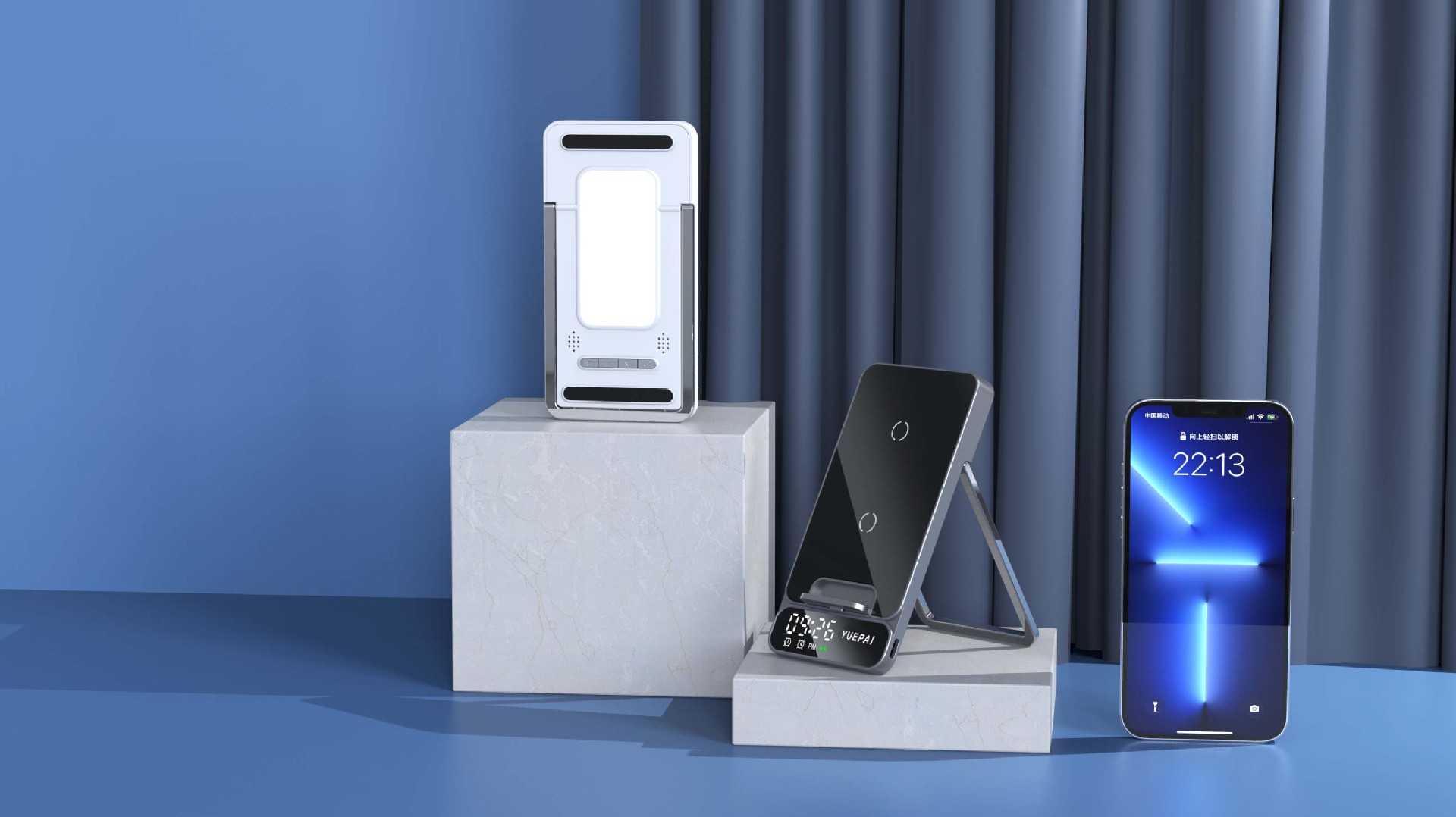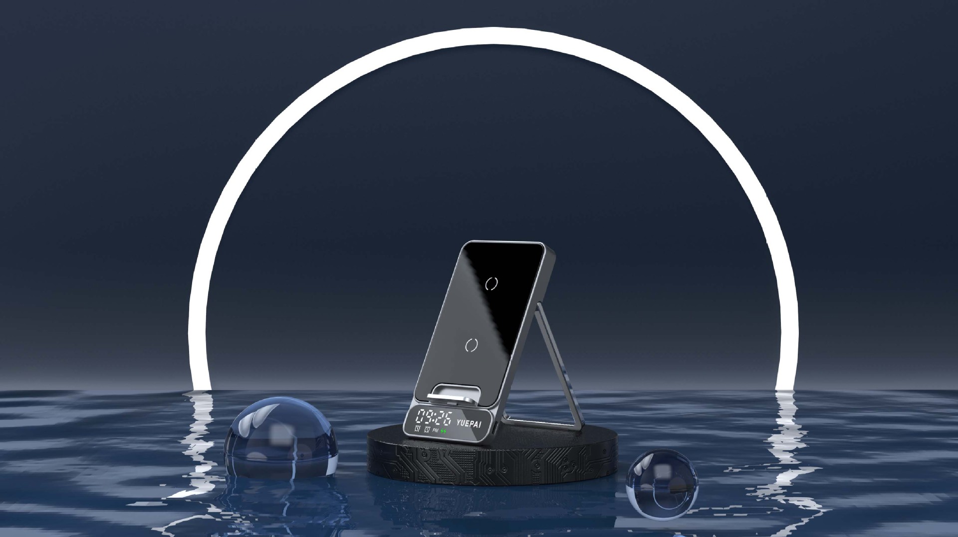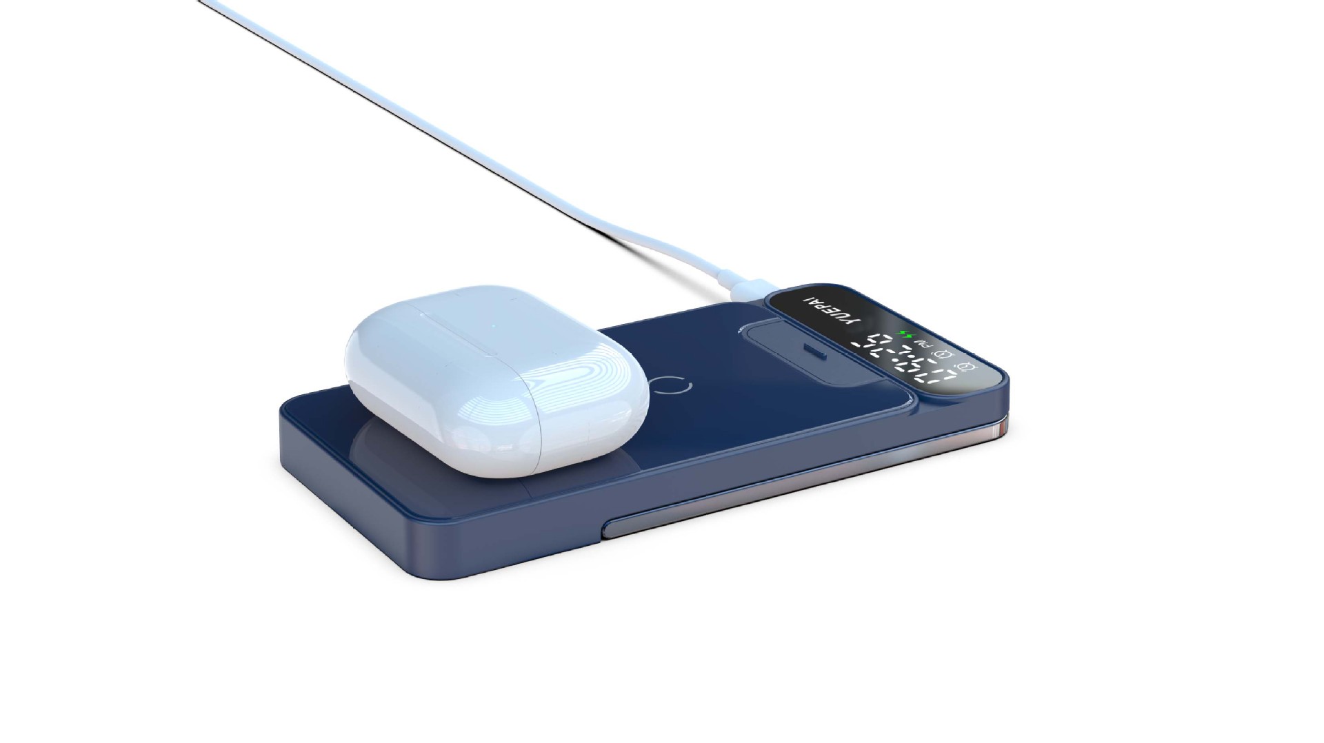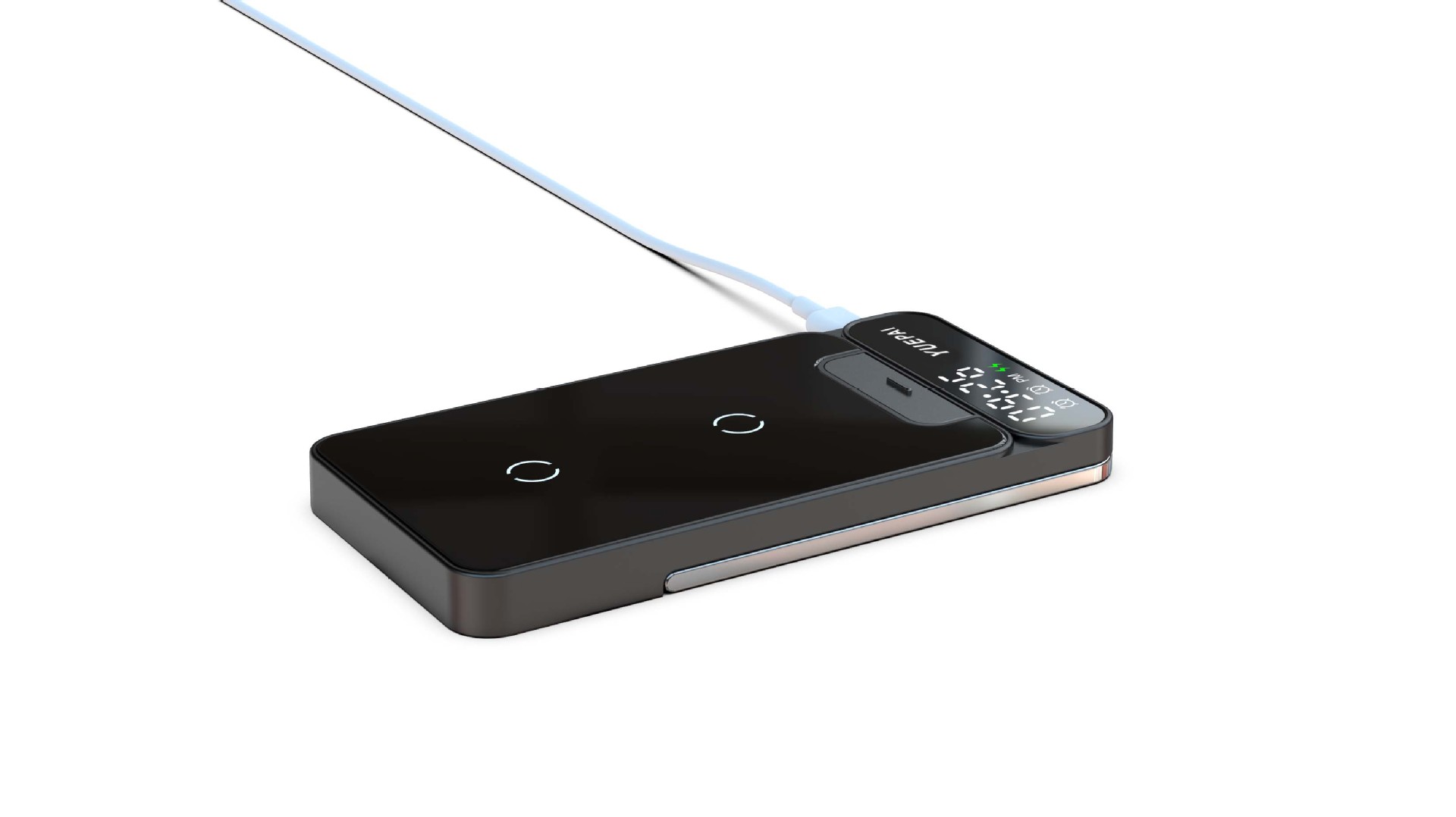 产品特性: u 支持全系自带无线充电技术手机充电,功率最大支持15W u 手机支持横放竖放,让你在不同情景使用不同方式充电 u 自带闹钟24h制,轻松设置自我需求 u 背面自带LED放夜晚不再惧怕黑暗