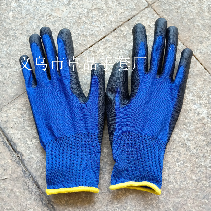 十三针尼龙PU轻薄防护手套 【材质】:PU 【重量】:24g 【颜色】:兰纱黑胶(可定做多种颜色). 【尺寸】:XS/6、S/7、M/8、L/9、XL/10(出口还有XXL/11、XXXL/12). 【包装】:1双/OPP袋,10双/中袋,1000双/编织袋。 【特性】:舒适透气、轻薄灵巧、防滑耐磨 【用途】:电气维修、精密仪器装配、石油化工、油漆印刷、农牧劳作、园林作业、基础防护等。 QQ:992409953