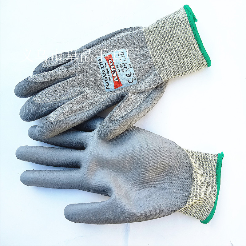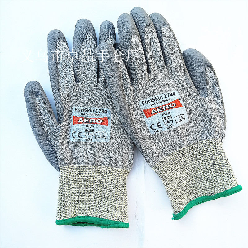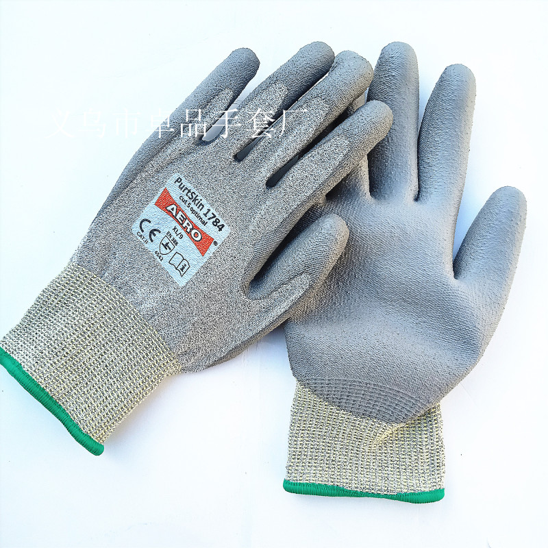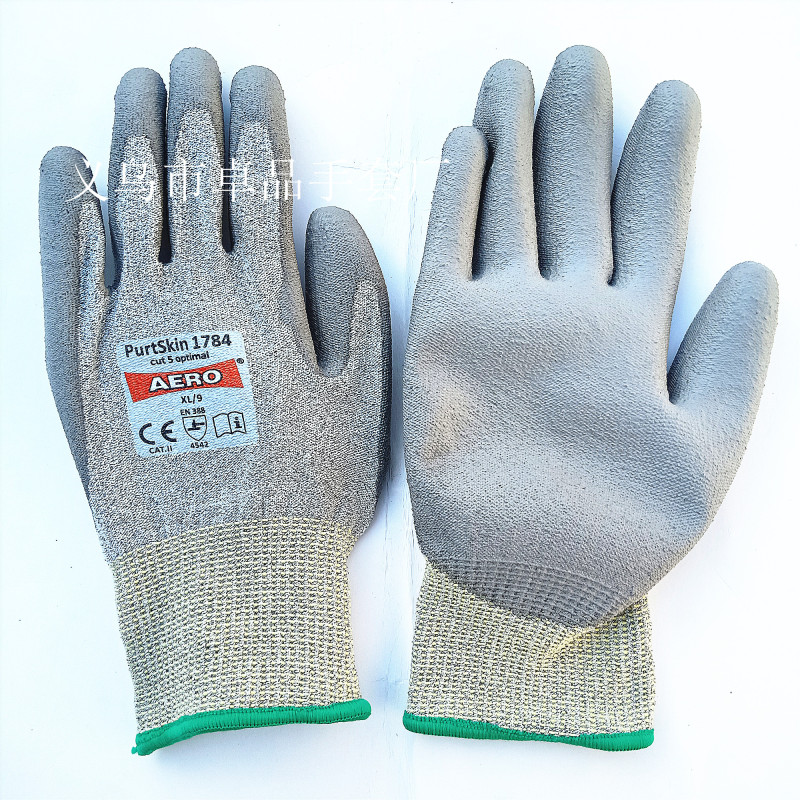 Guantes anti - Corte de cinco etapas, recubrimiento de Pu de poliuretano, palma sumergida, guantes hortícolas resistentes al desgaste y transpirables, logotipo de transferencia térmica