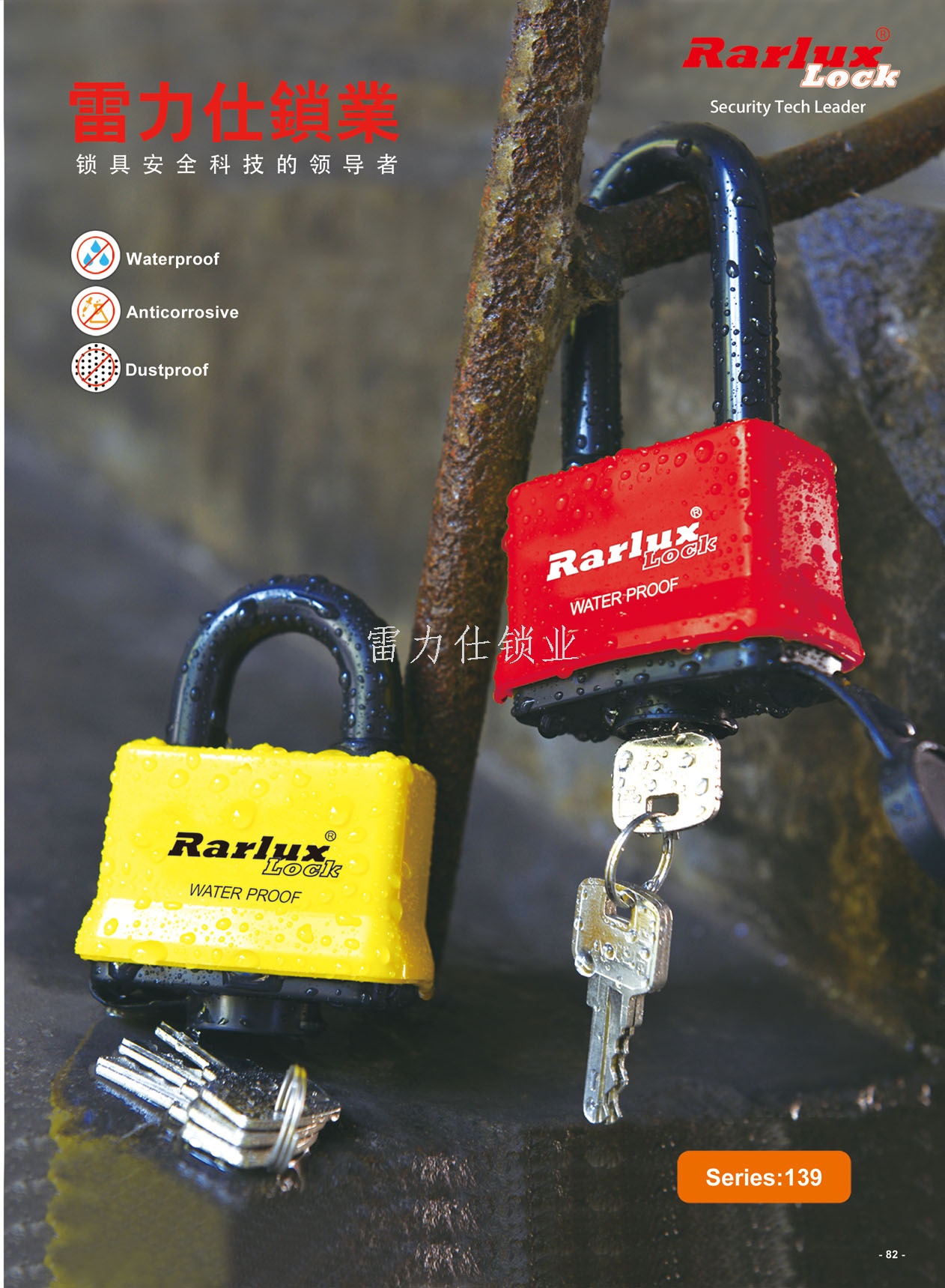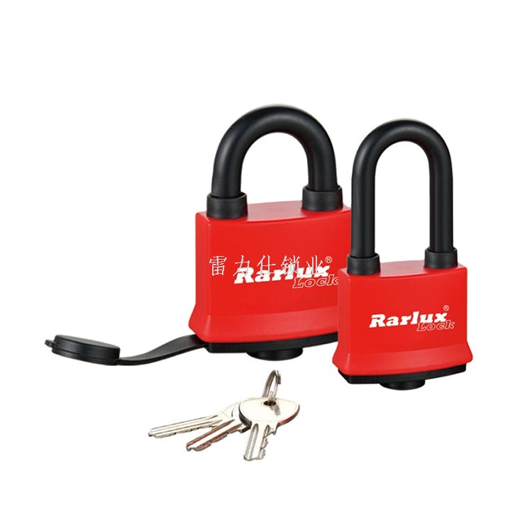 户外防雨水耐酸碱安全挂锁 铁锁体 外面套不同颜色塑料壳,铜芯 ,锁梁黑色套管并带双防水圈,双泡包装
