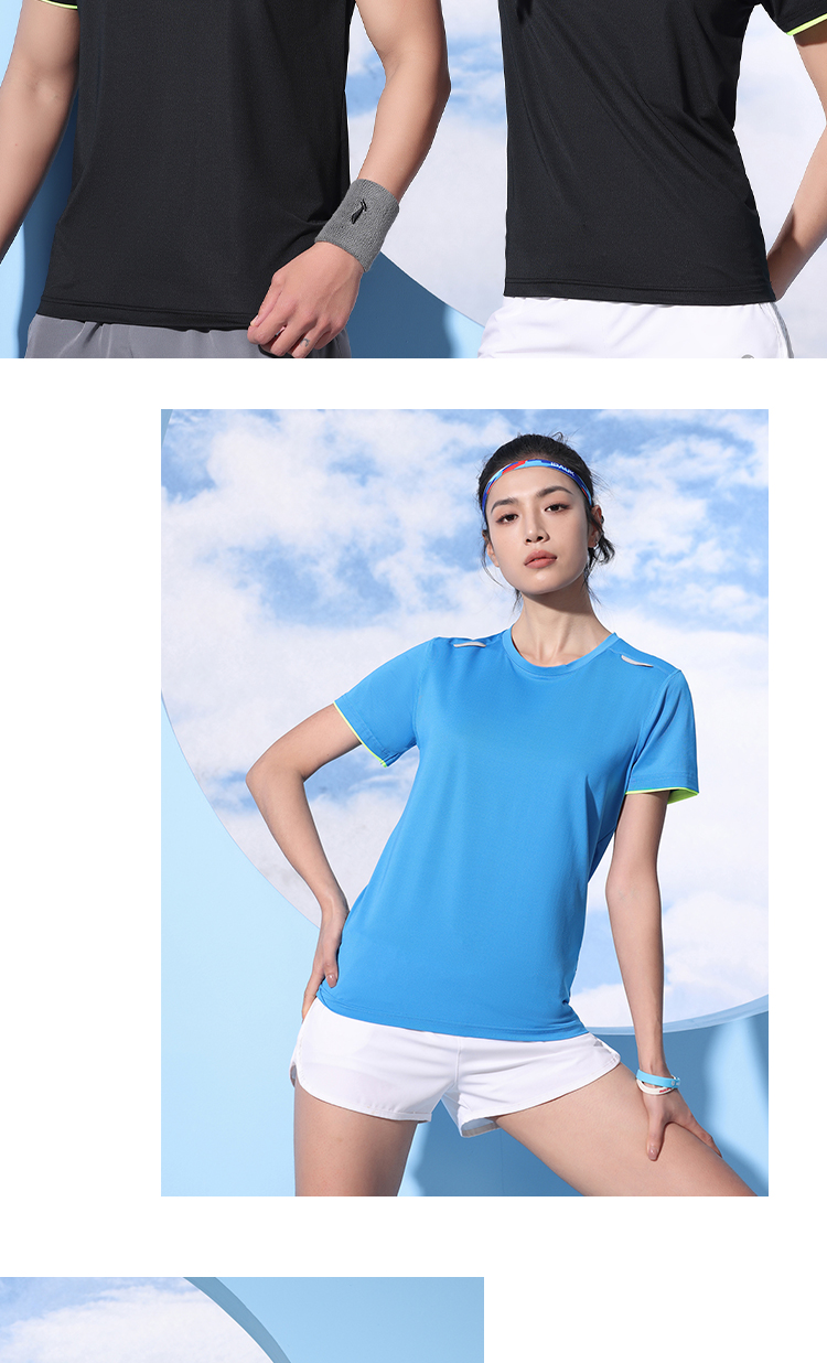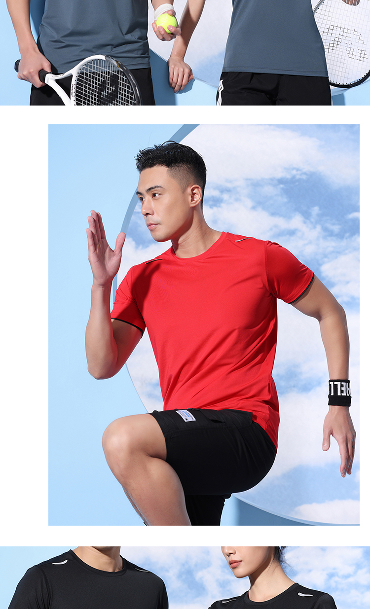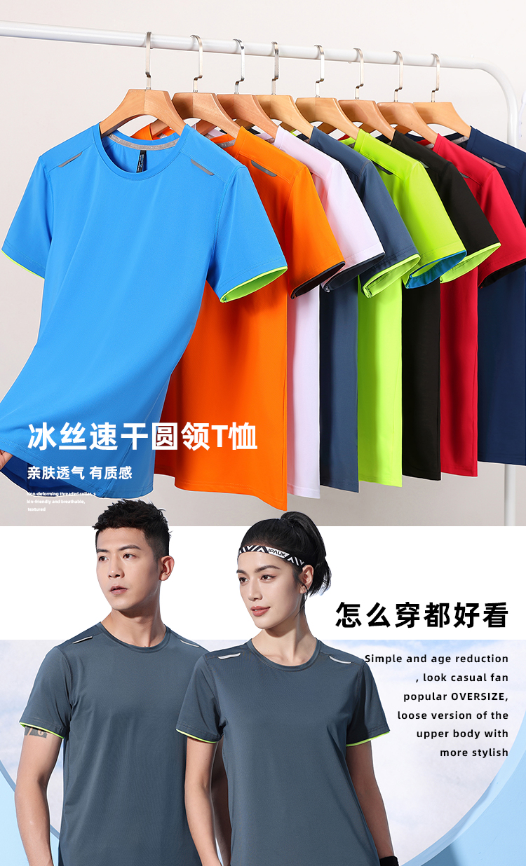 Camiseta de cuello redondo de seda de hielo de manga corta para deportes de verano camiseta de cuello redondo de carreras ropa deportiva de tenis impresa a medida con logotipo