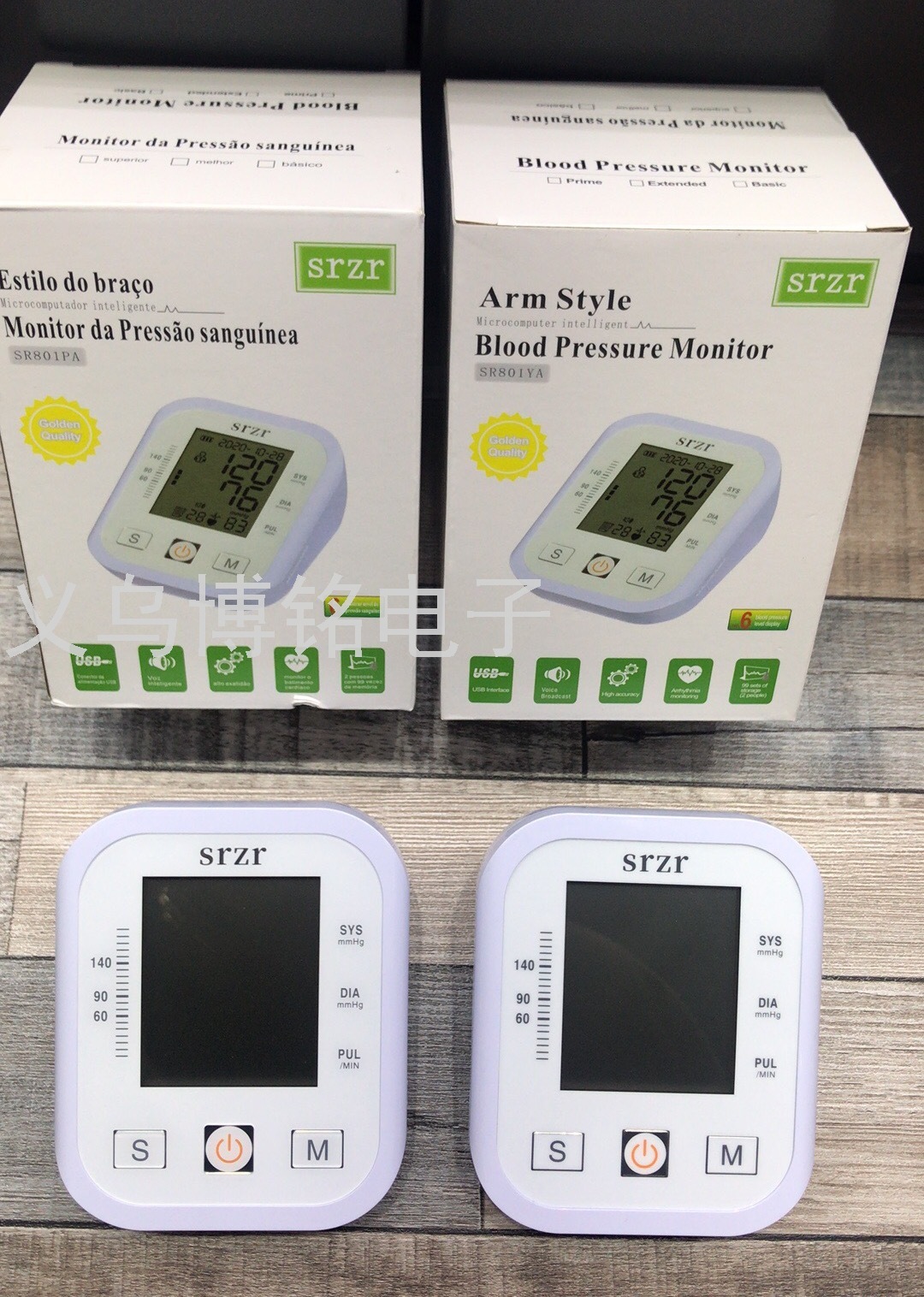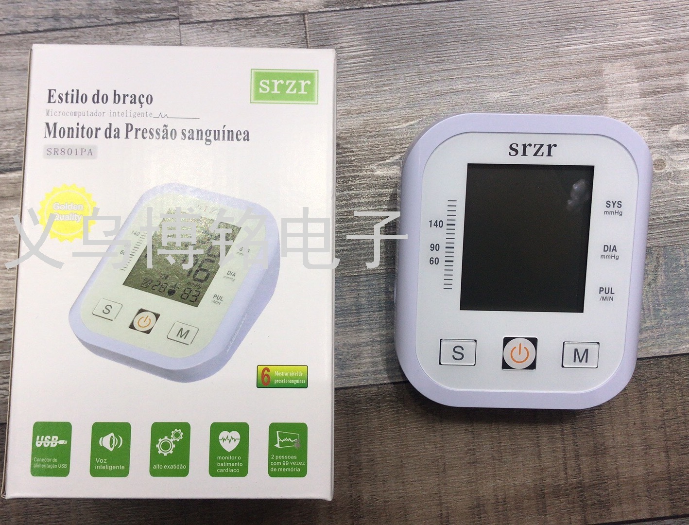 家用智能电子血压计, 外面精美, 有专利,测量标准 是居家必备健康伴侣。欢迎新老客户拿样 选购。 包装有英文包装 西班牙文包装 葡萄牙文包装。欢迎选购