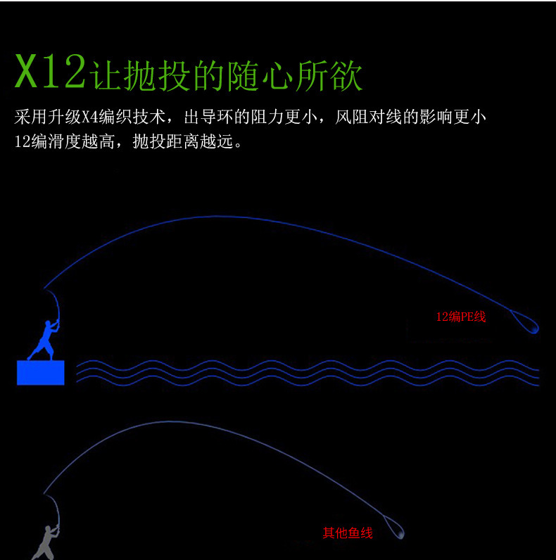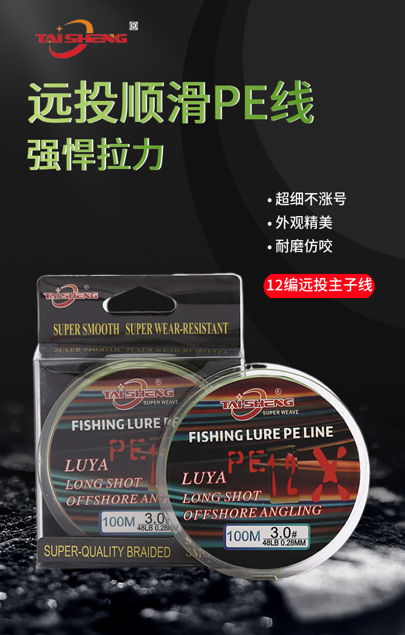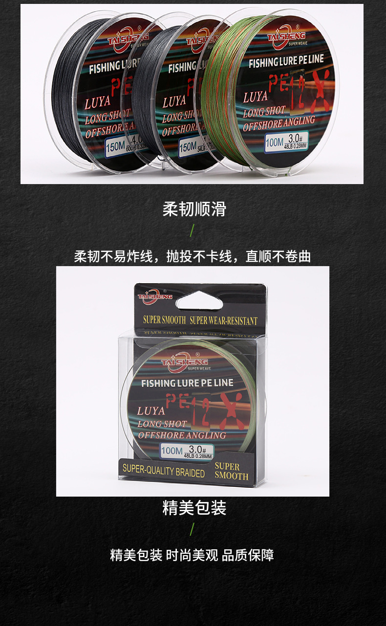 Fabricante de aparejos de pesca 12 made Dali Horse Main Line Ship placa de hierro de pesca de sacudida lenta y lanzamiento lejano luya línea de pesca PE de 100 metros especial