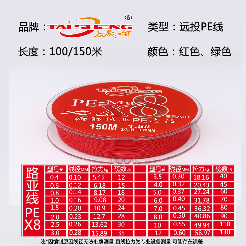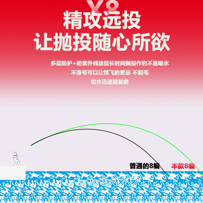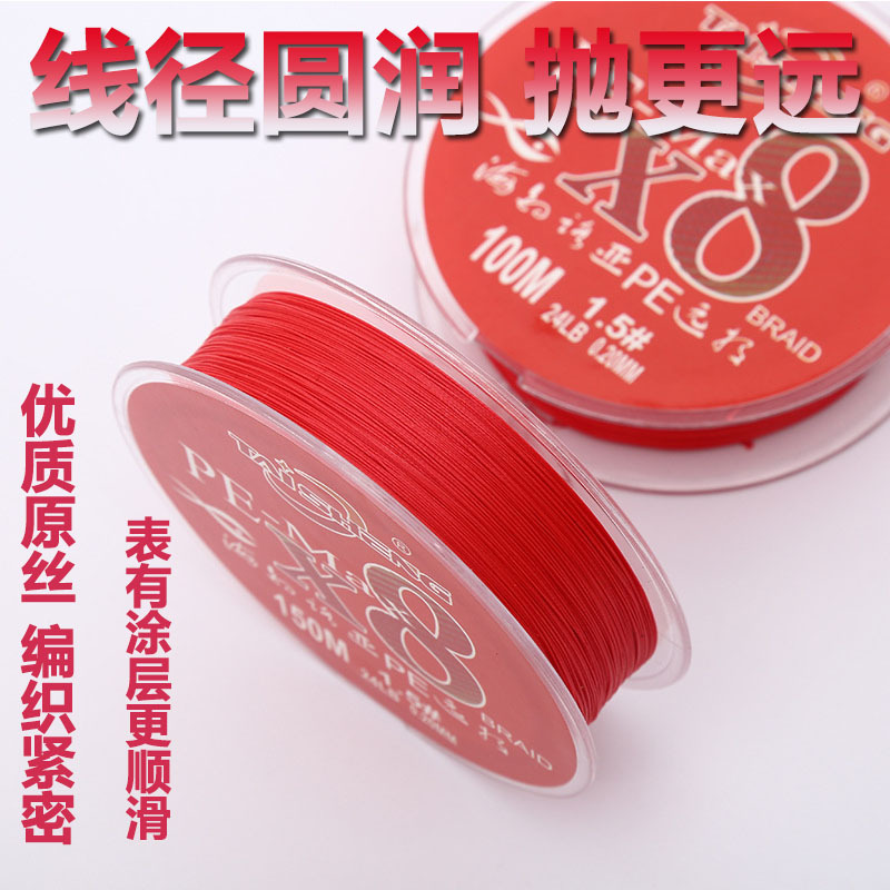 La línea principal de la línea PE de lanzamiento lejano de China Red Road asia, la pesca marítima de 8 hilos, el lanzamiento lejano de caballos y postes de mar vigorosos, la línea de pesca no se desvanece.