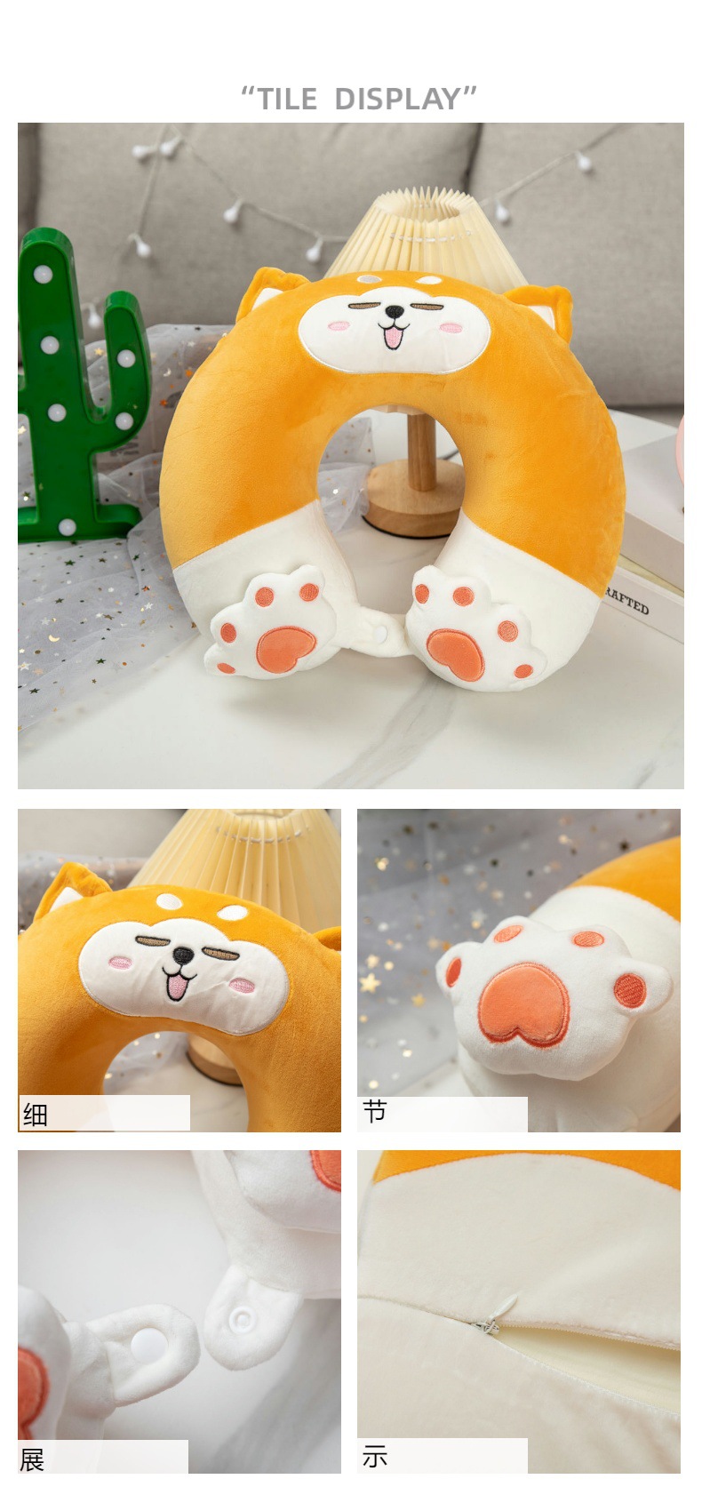 El fabricante diseña de forma independiente el lindo colchón circular de almohada de cuello en forma de u de la serie de perros de leña de semillas de melón tridimensionales.