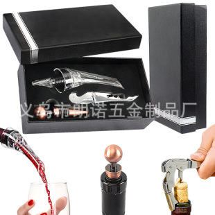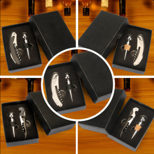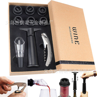 产品品名:黄色长纸盒黑泵6塞砂光刀倒酒器9件套