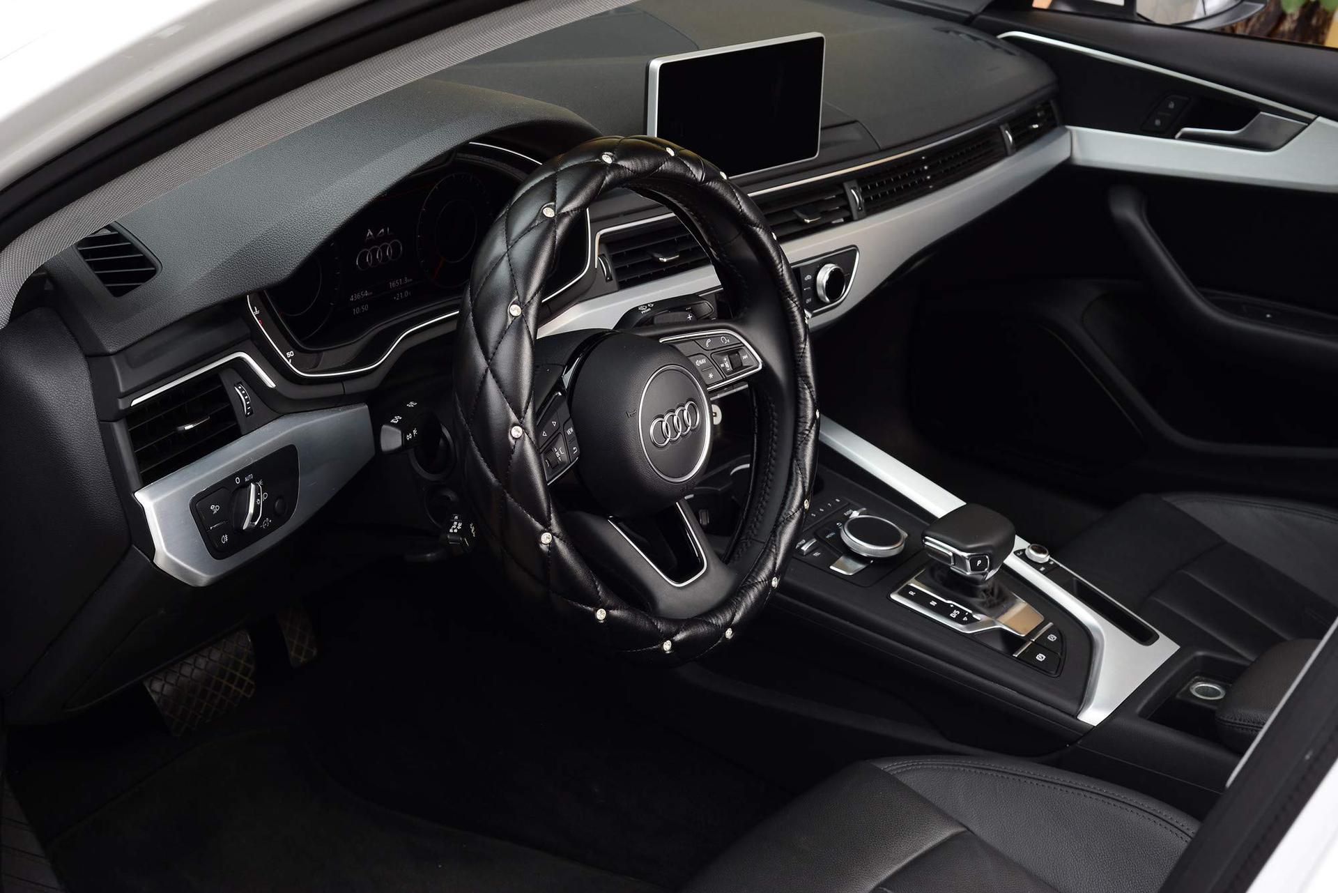 Nueva funda de volante de automóviles con diamantes, funda de carroza de cuero, funda de moda, accesorios interiores de automóviles al por mayor