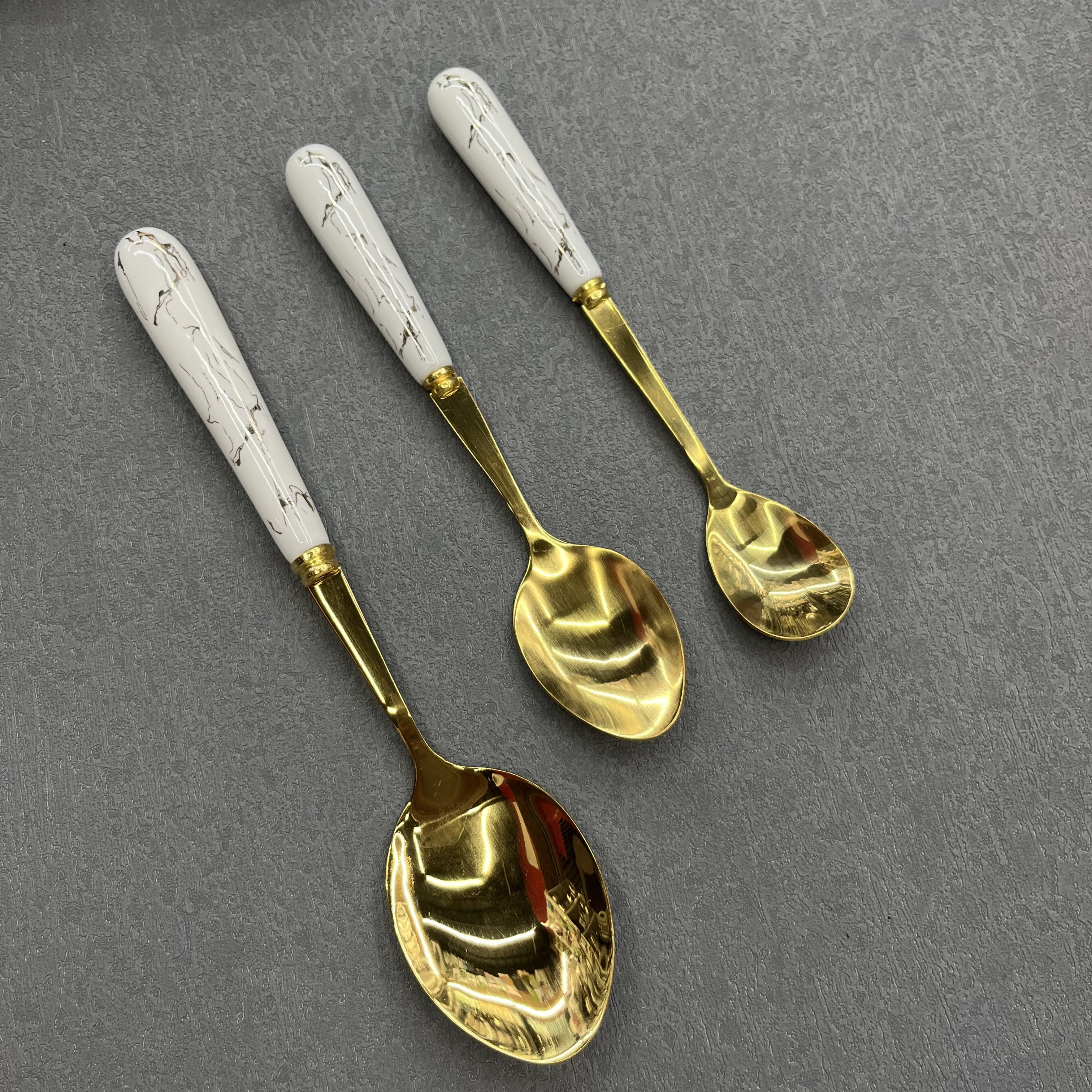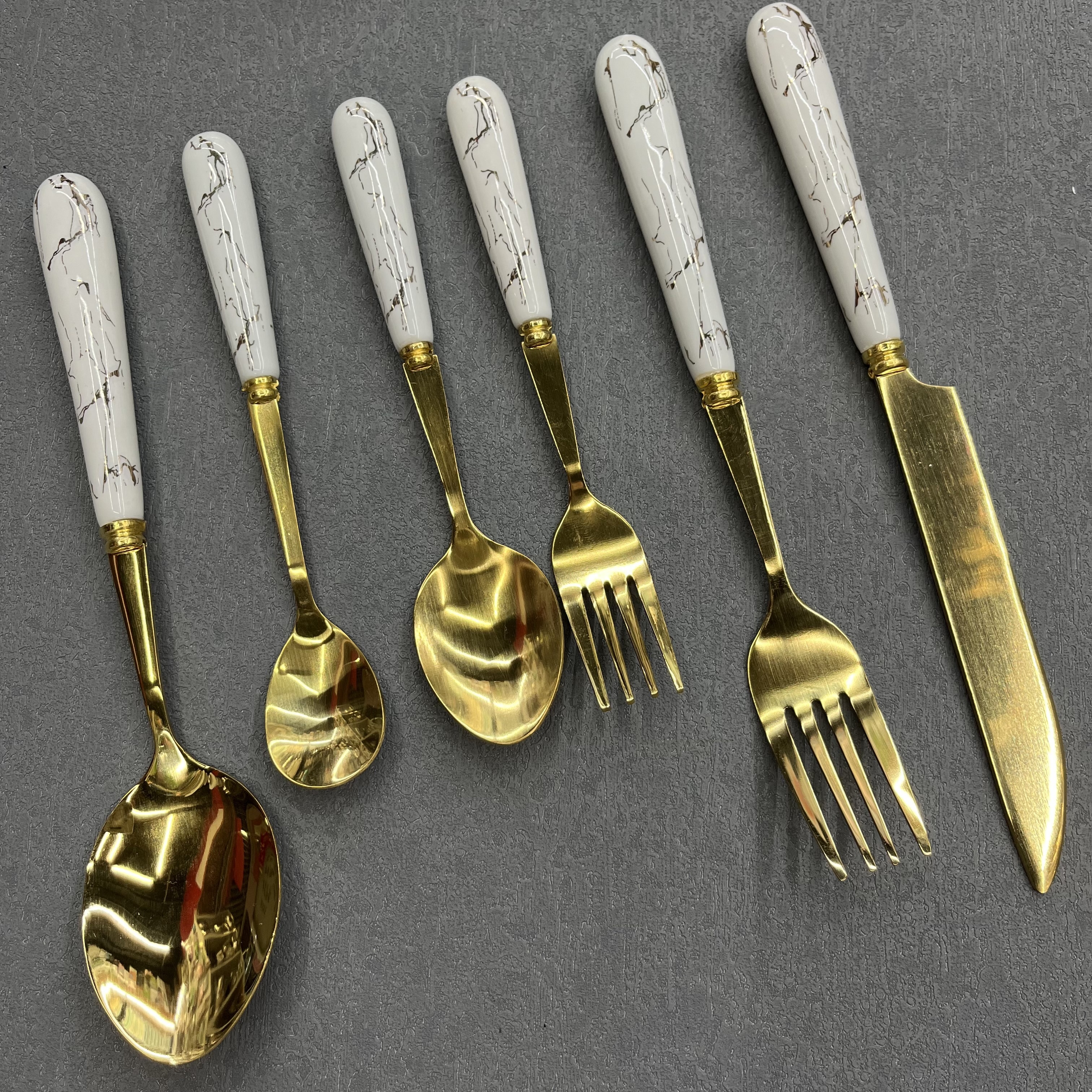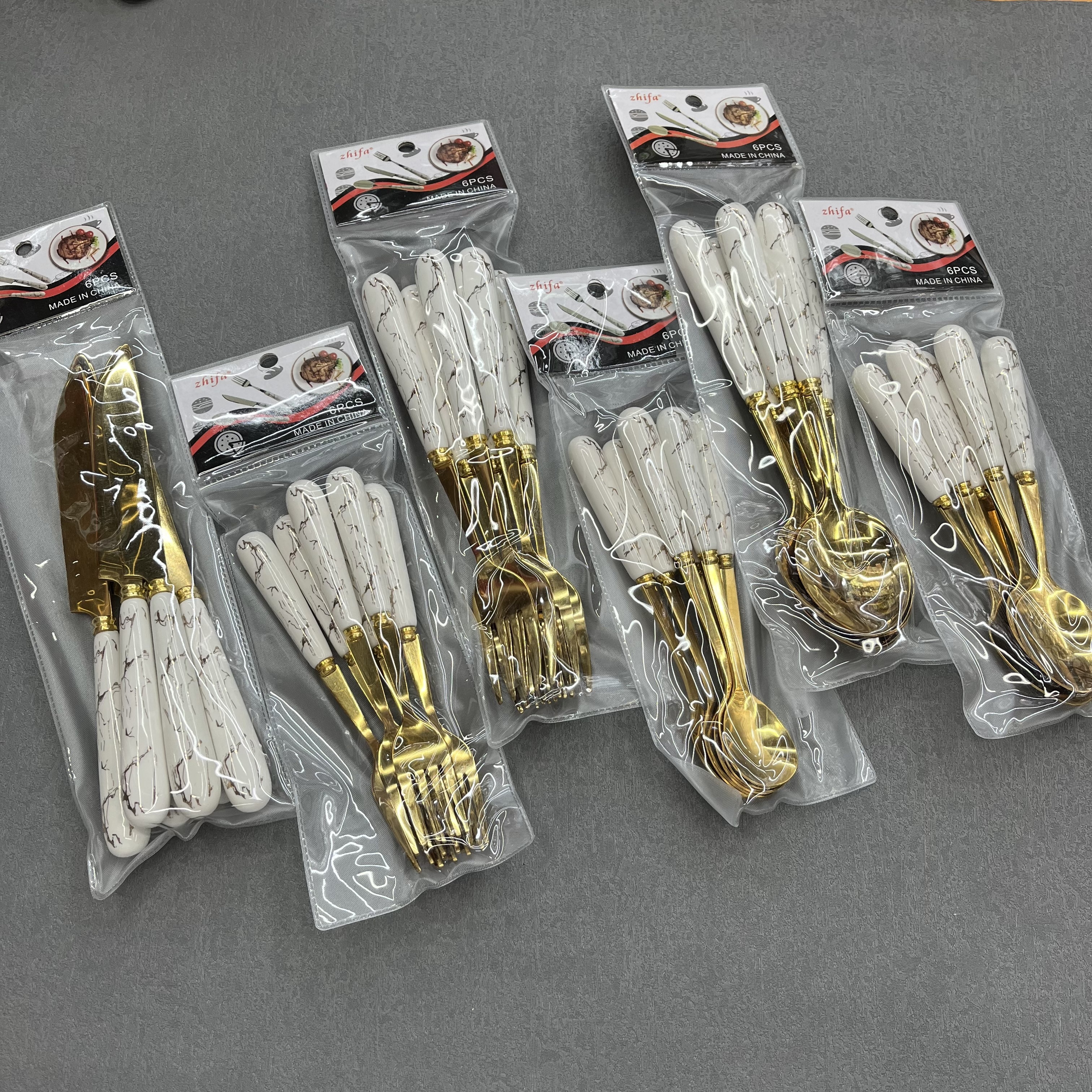 [vajilla chengfa] vajilla de mango cerámico, vajilla dorada, cuchillo, tenedor, cuchara, acero inoxidable 6 / paquete de artículos de cocina