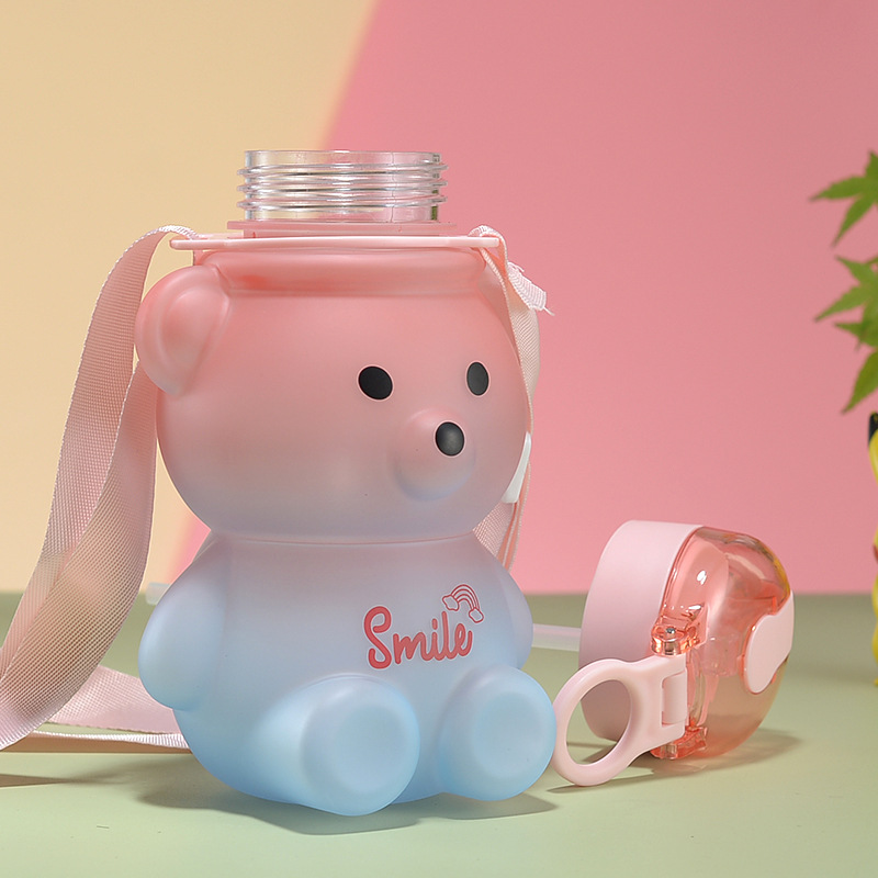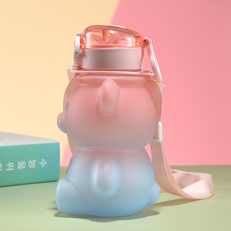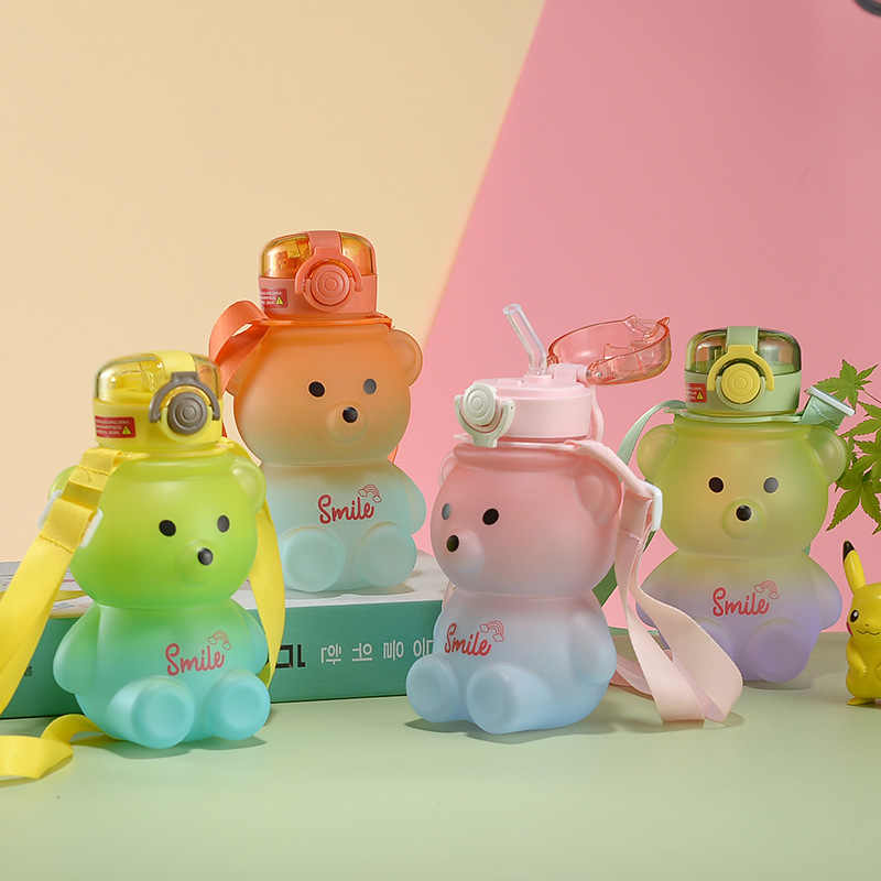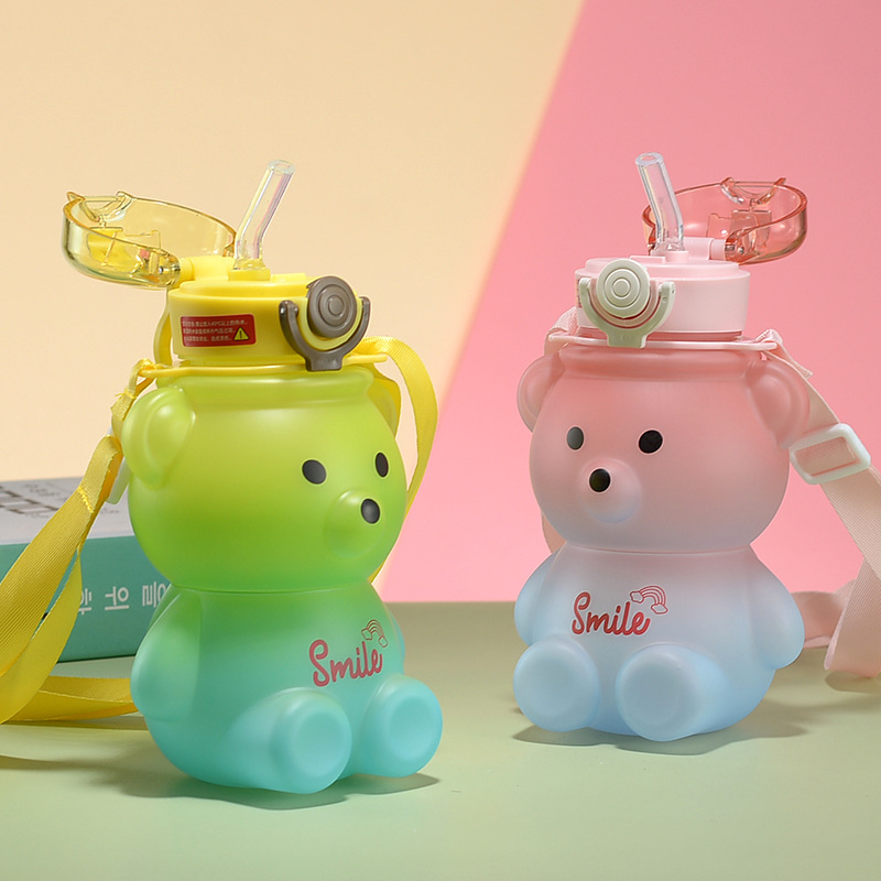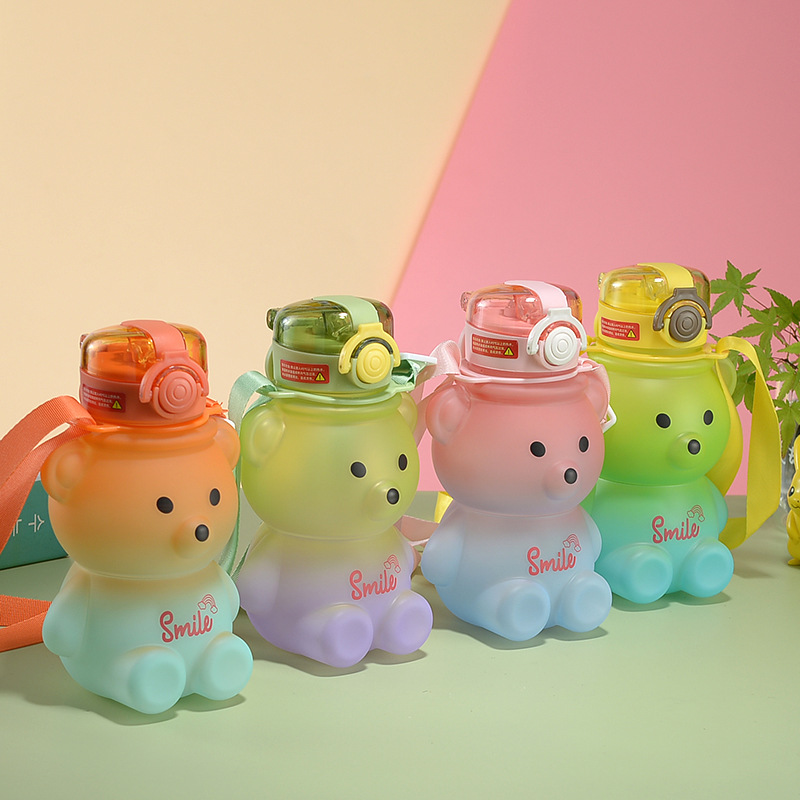 Tazas de color degradado pajitas de silicona de oso, vasos de agua deportivos de hervidor de agua para niños, vasos de plástico resistentes a altas temperaturas para estudiantes de gran capacidad