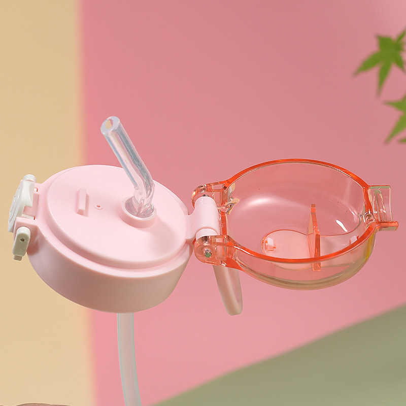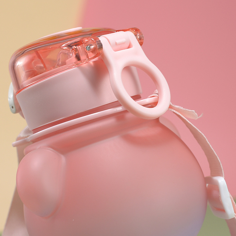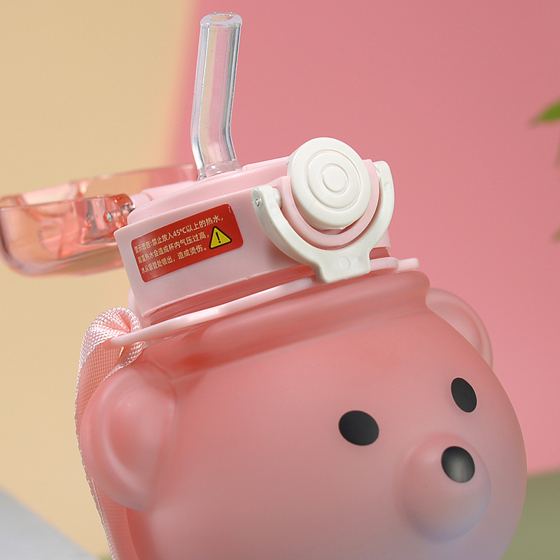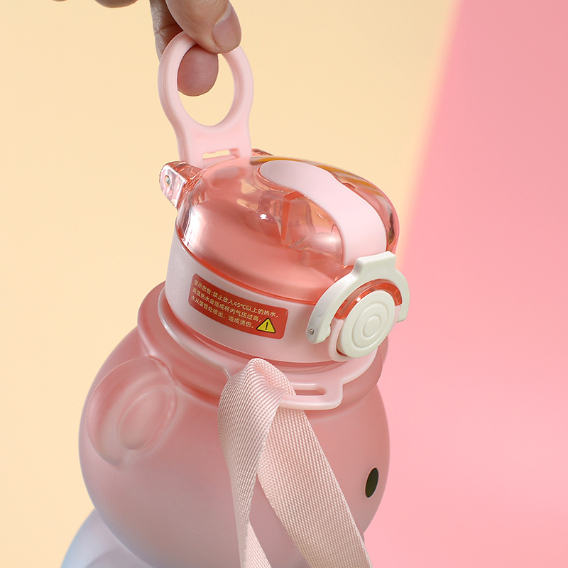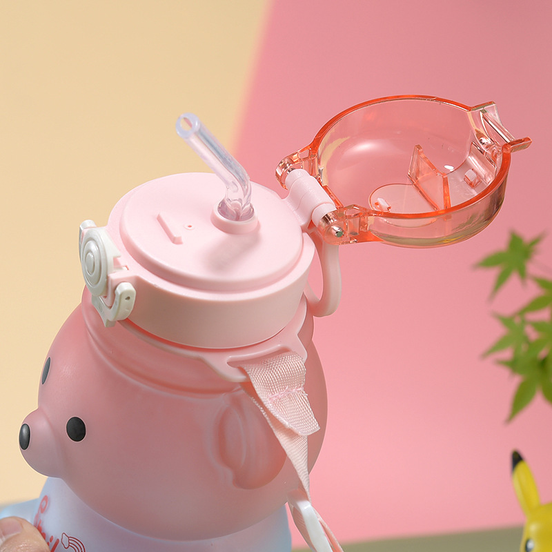 Tazas de color degradado pajitas de silicona de oso, vasos de agua deportivos de hervidor de agua para niños, vasos de plástico resistentes a altas temperaturas para estudiantes de gran capacidad