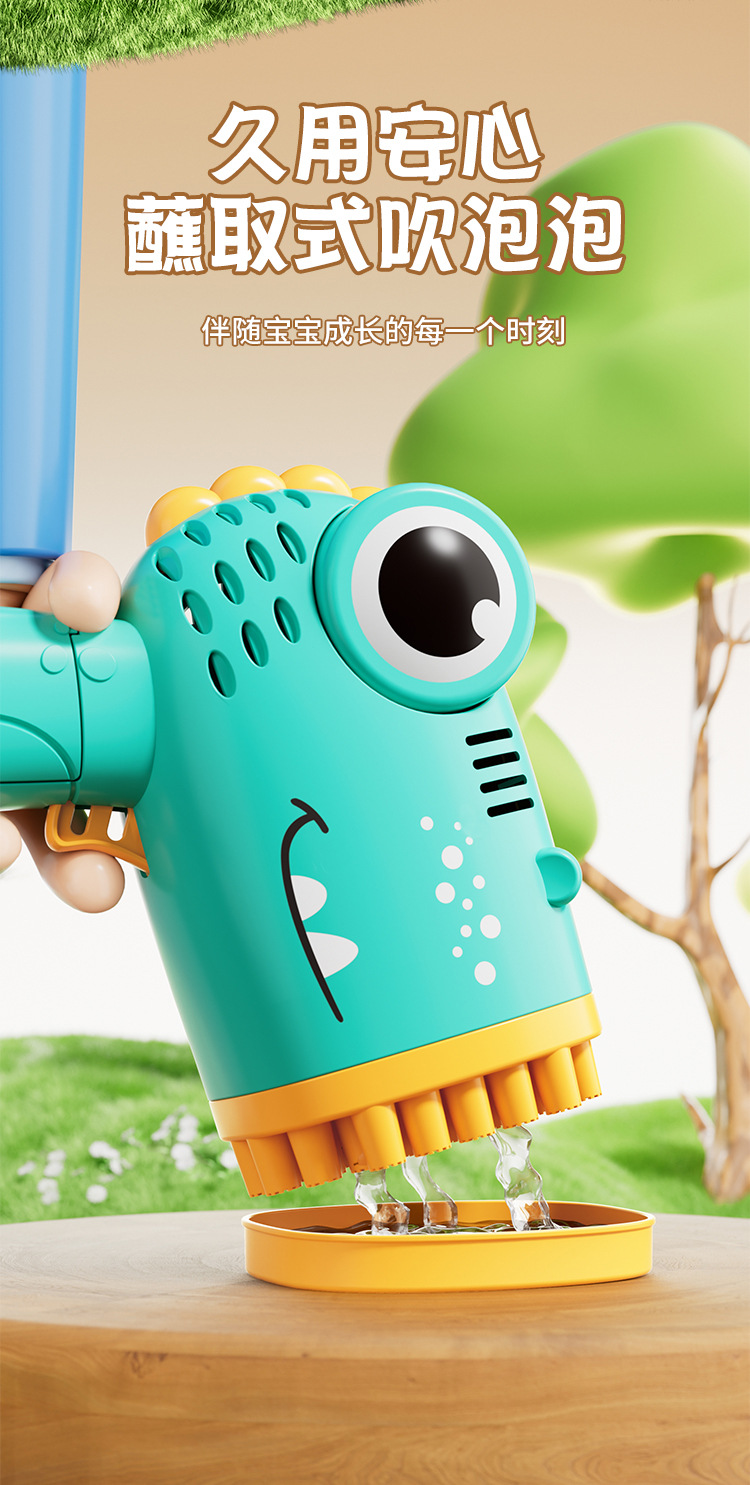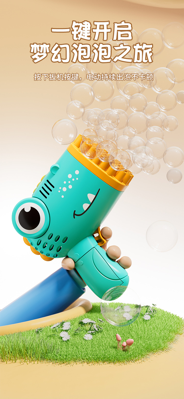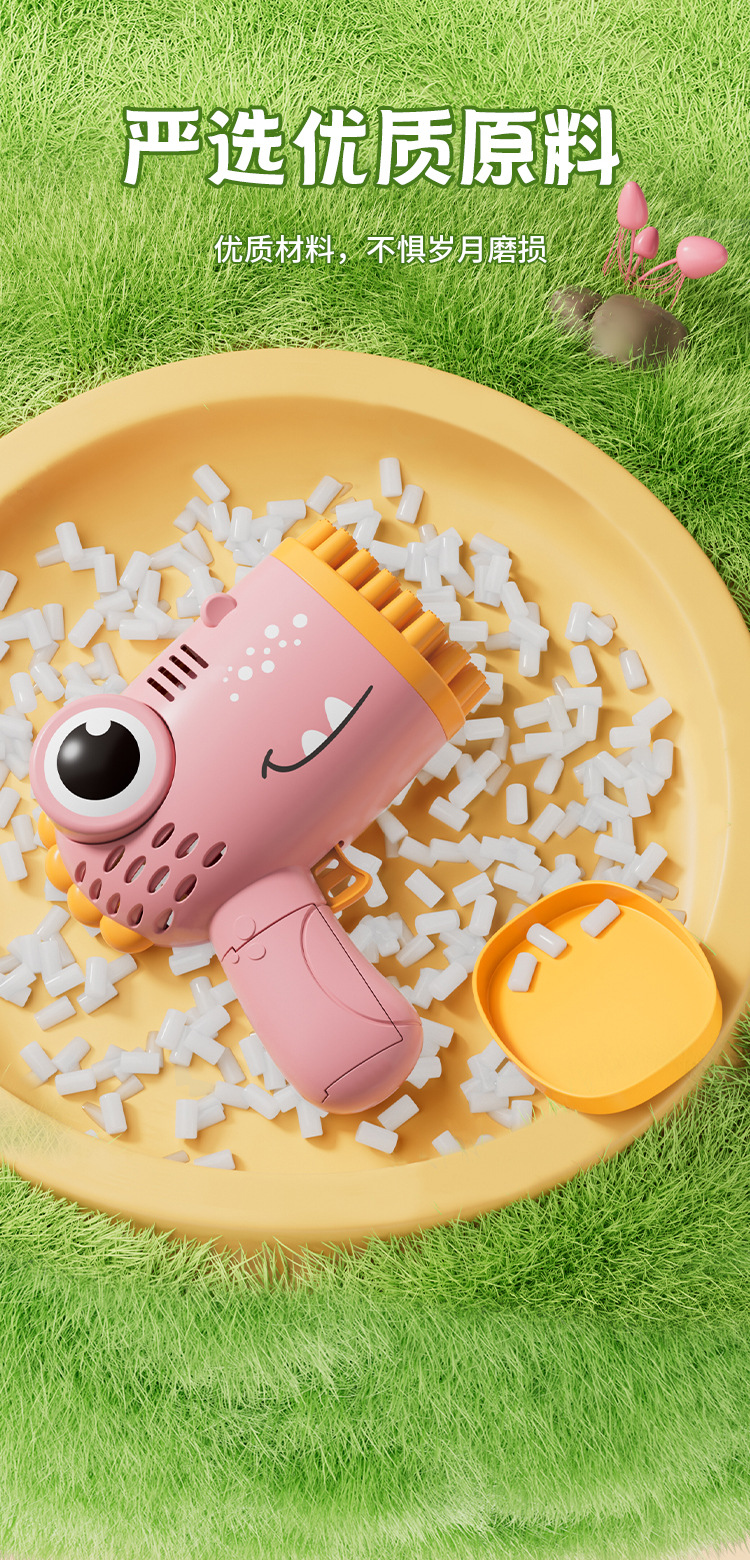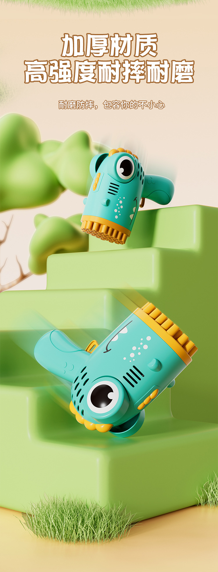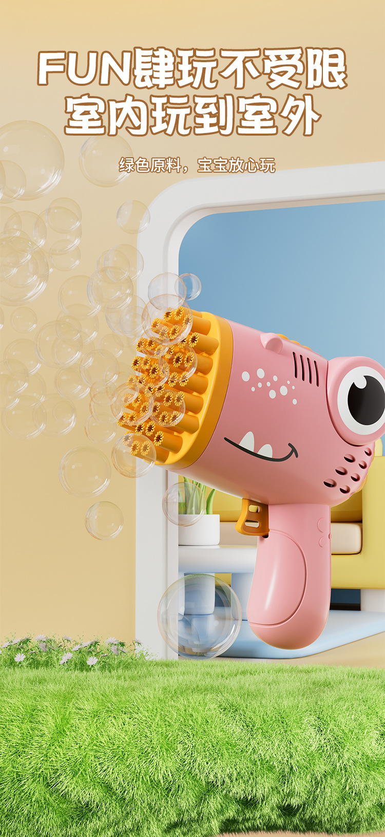 Nuevos productos transfronterizos pequeños dinosaurios máquina de burbujas de 40 agujeros gatlin juguetes infantiles de burbujas totalmente automáticos sin fugas pistola de burbujas