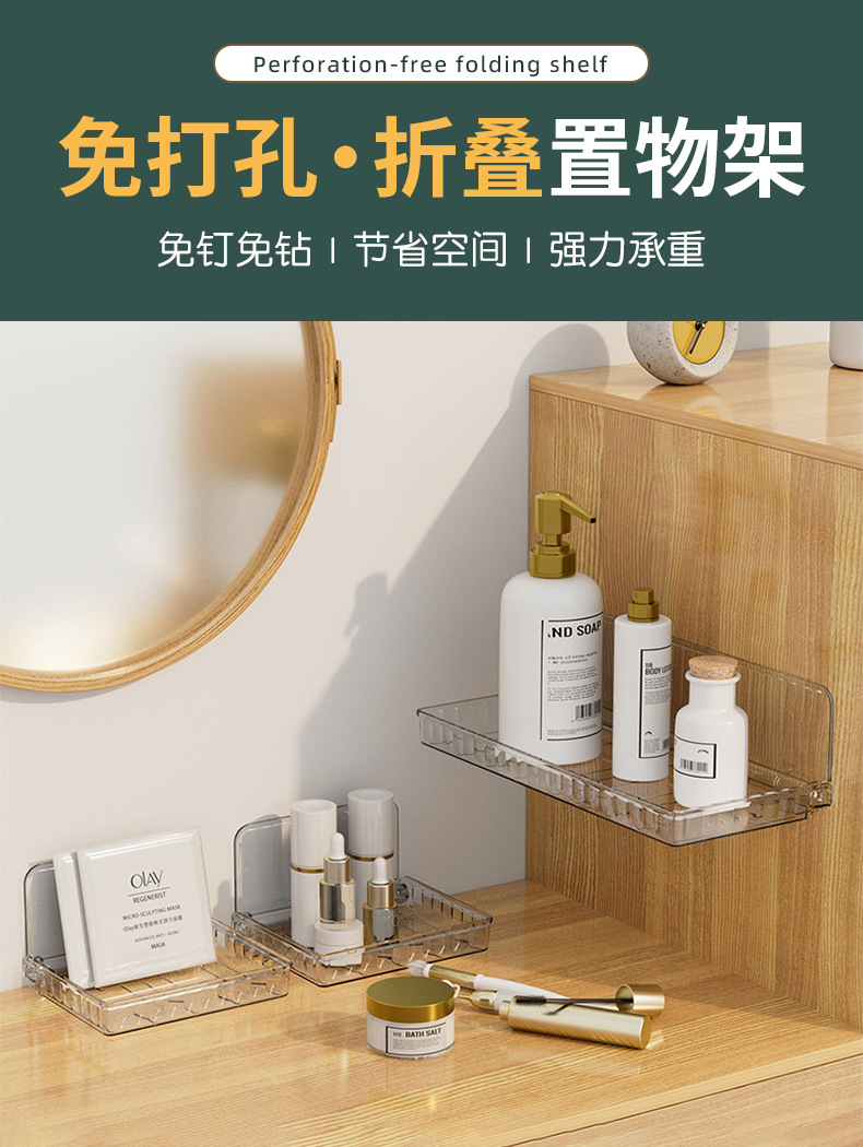 Estante de almacenamiento plegable, estante de almacenamiento, Gabinete montado en la pared, caja de almacenamiento, cosméticos multifuncionales, inodoro de pared sin perforación