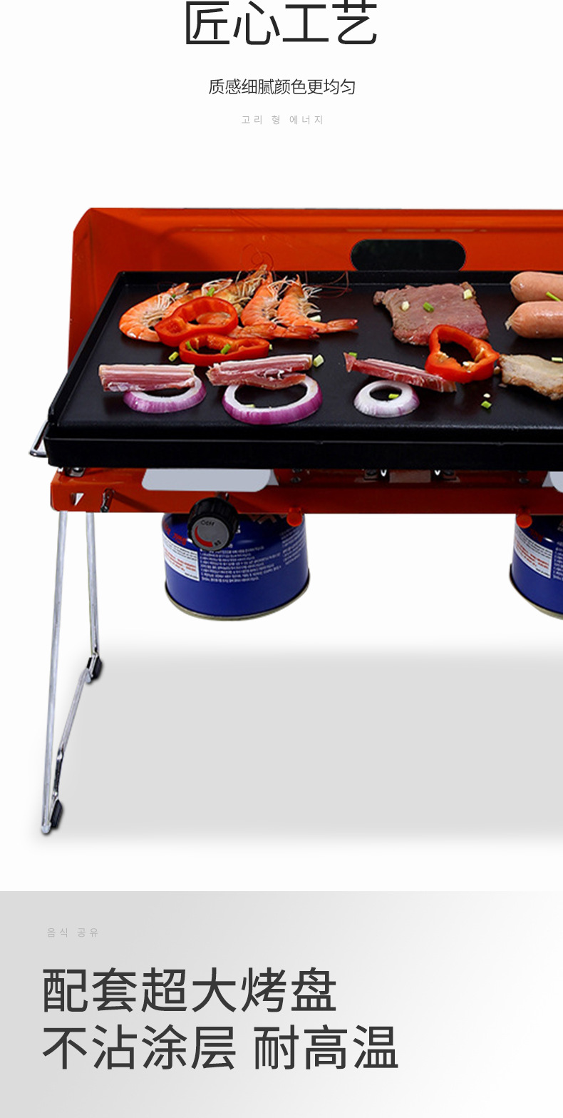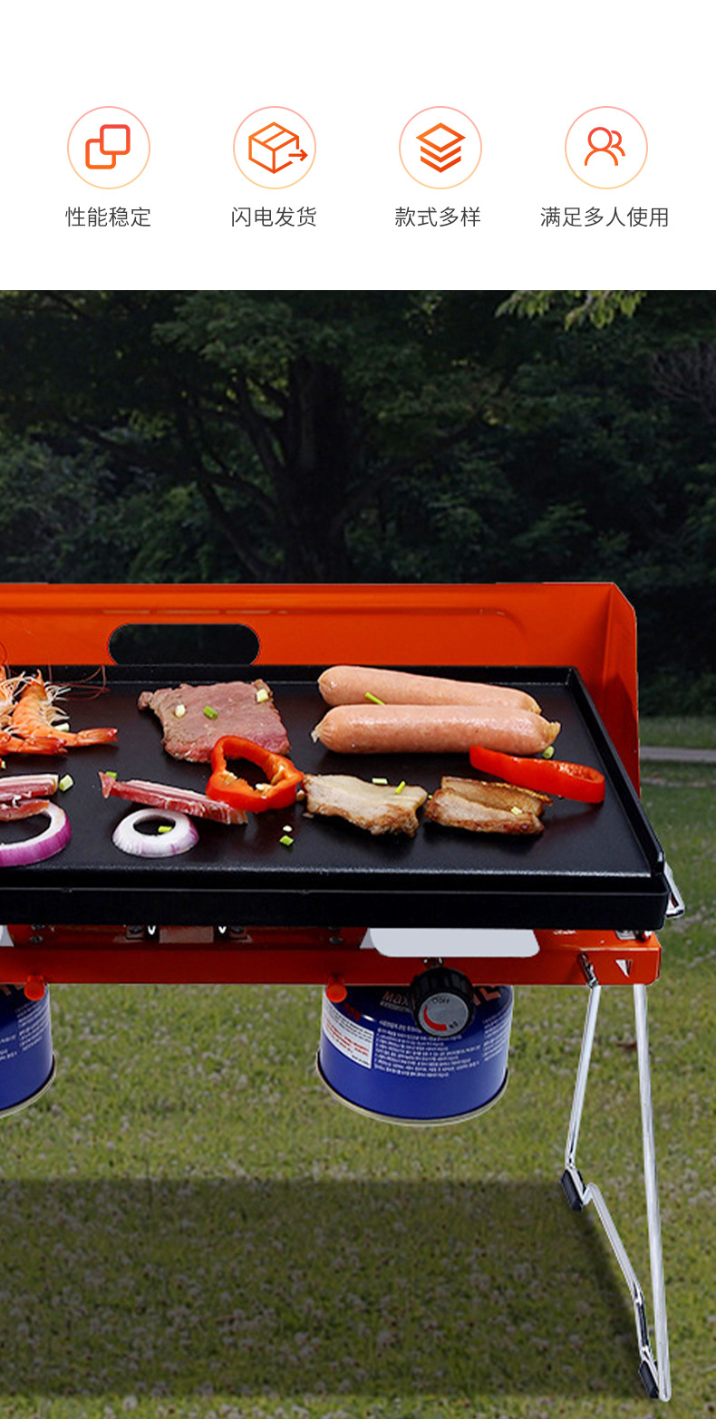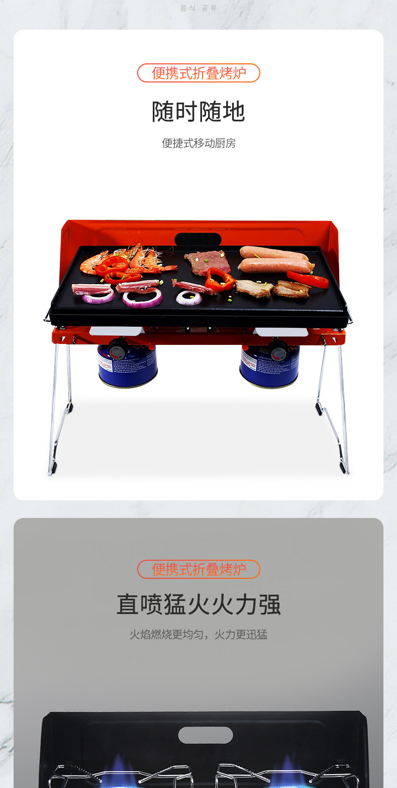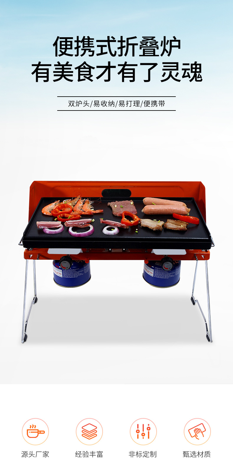 Especialmente para acampar en la exportación, estufa de doble cabeza al aire libre a prueba de viento, estufa de barbacoa de butano plegable portátil al por mayor