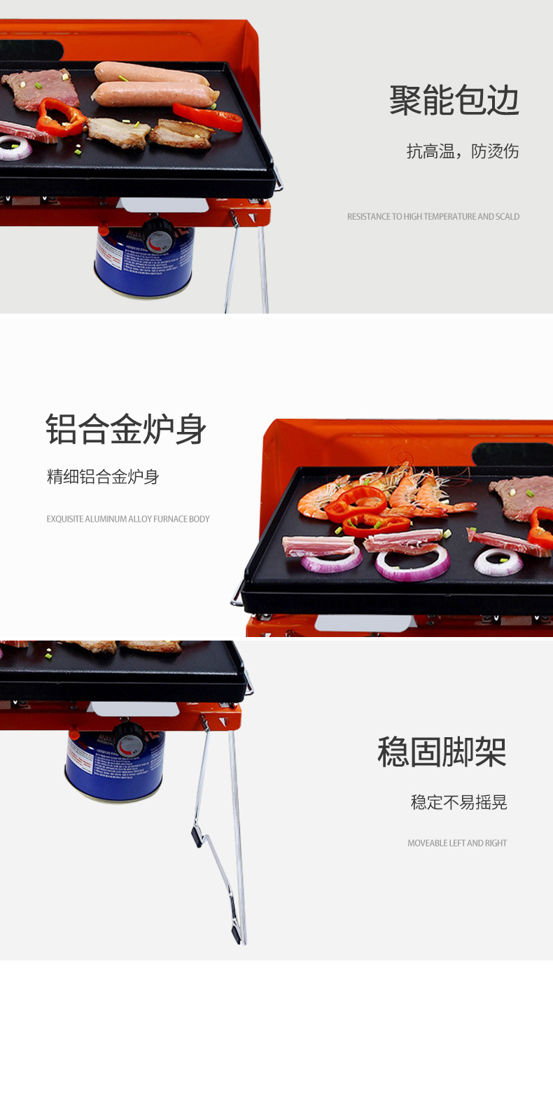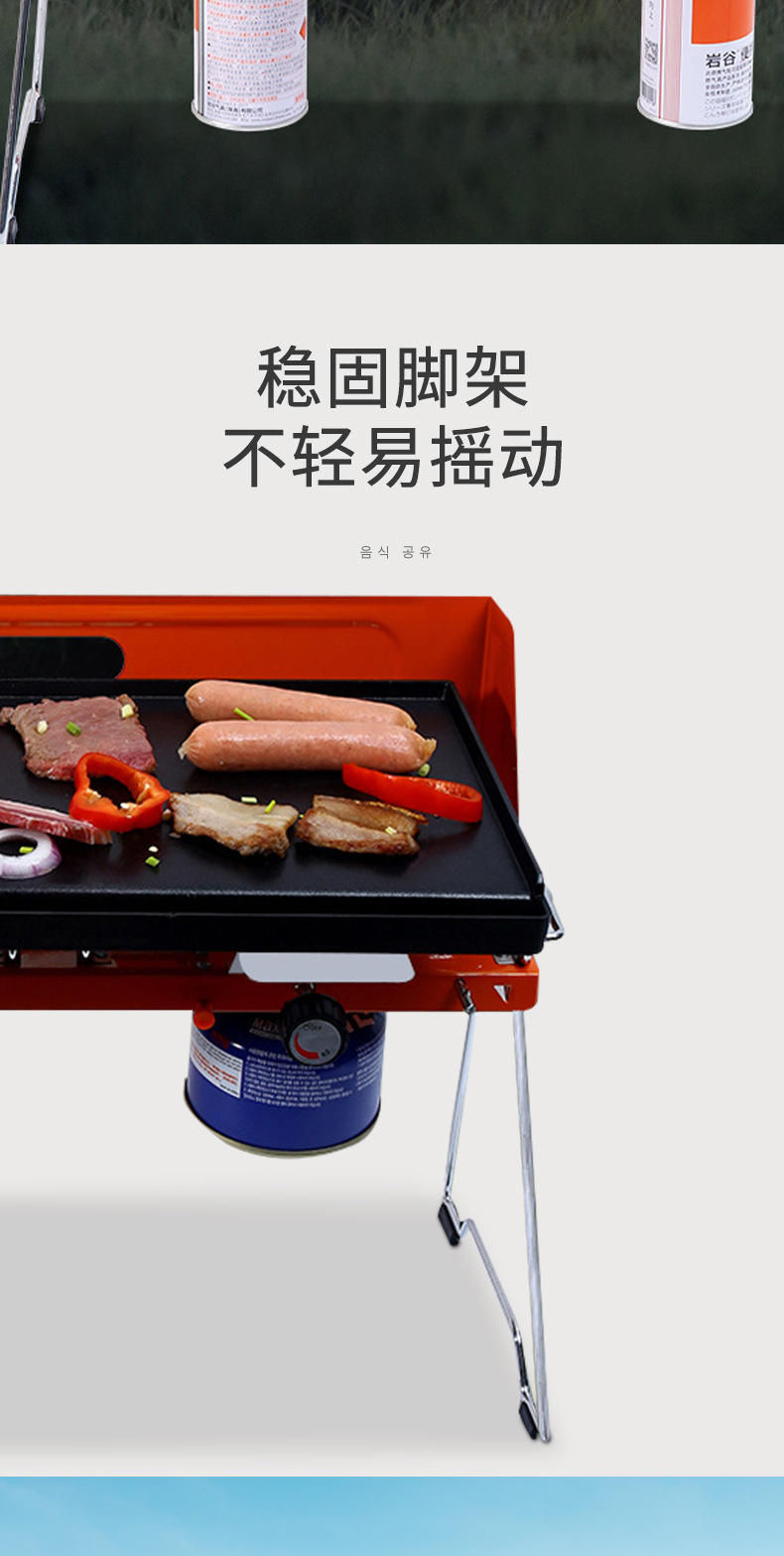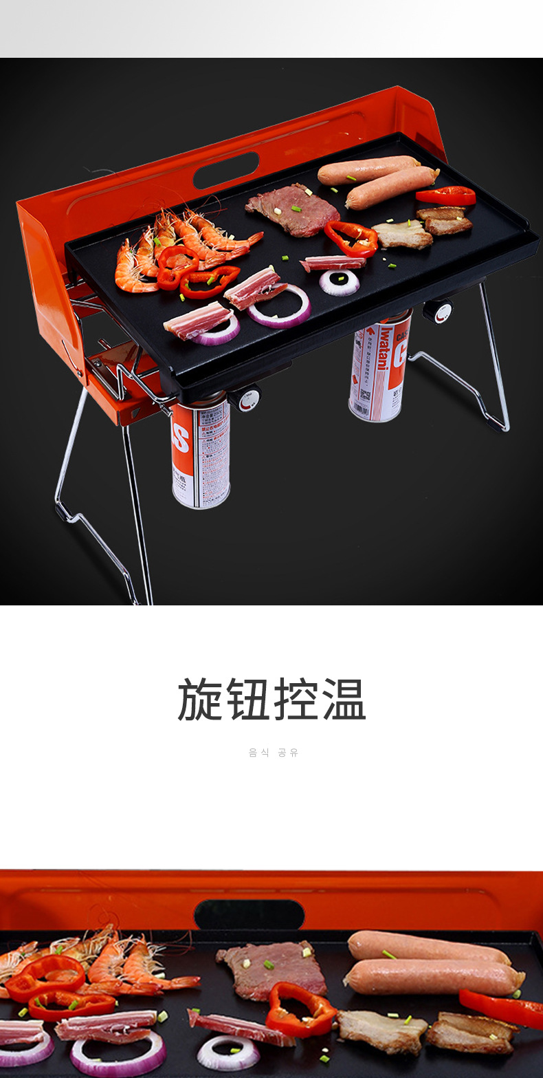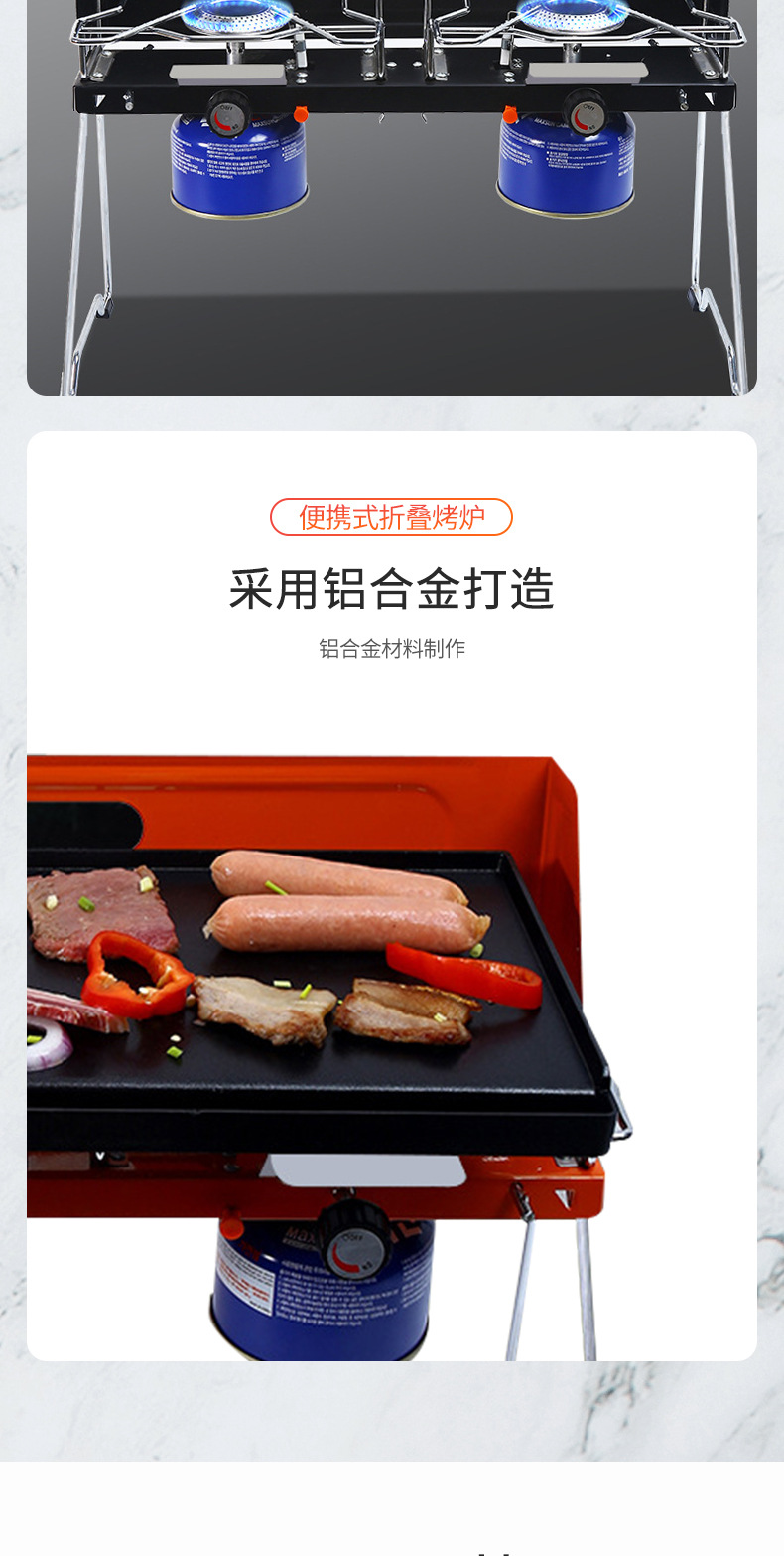 Especialmente para acampar en la exportación, estufa de doble cabeza al aire libre a prueba de viento, estufa de barbacoa de butano plegable portátil al por mayor