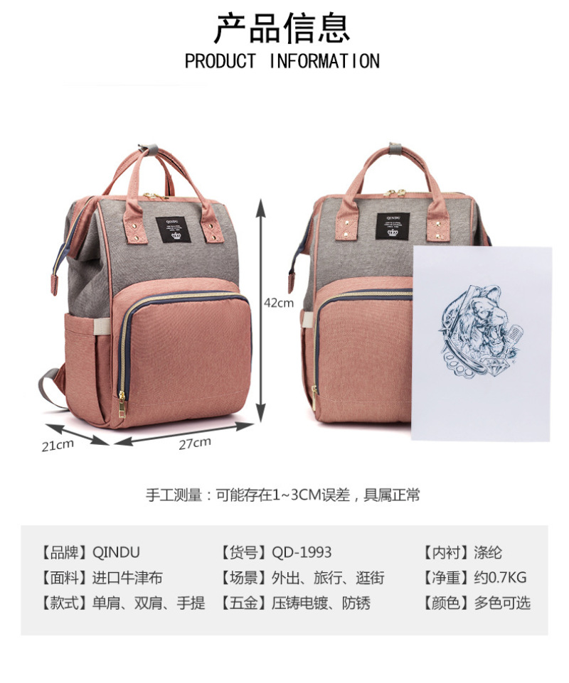 Venta caliente transfronteriza bolso de mamá de color pincelada bolso de madre e hijo multifuncional bolso de madre e hijo bolso de hombro mochila de pañal baoma logotipo personalizado