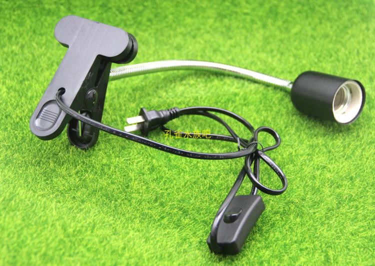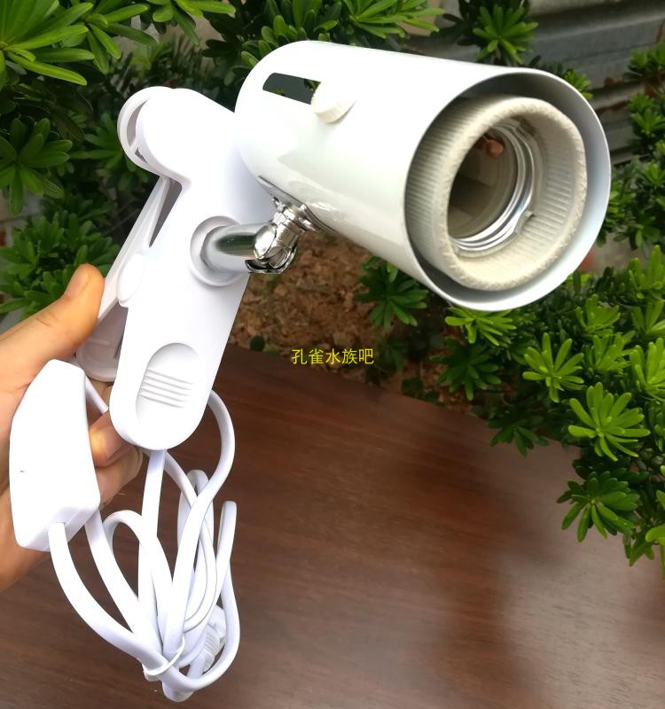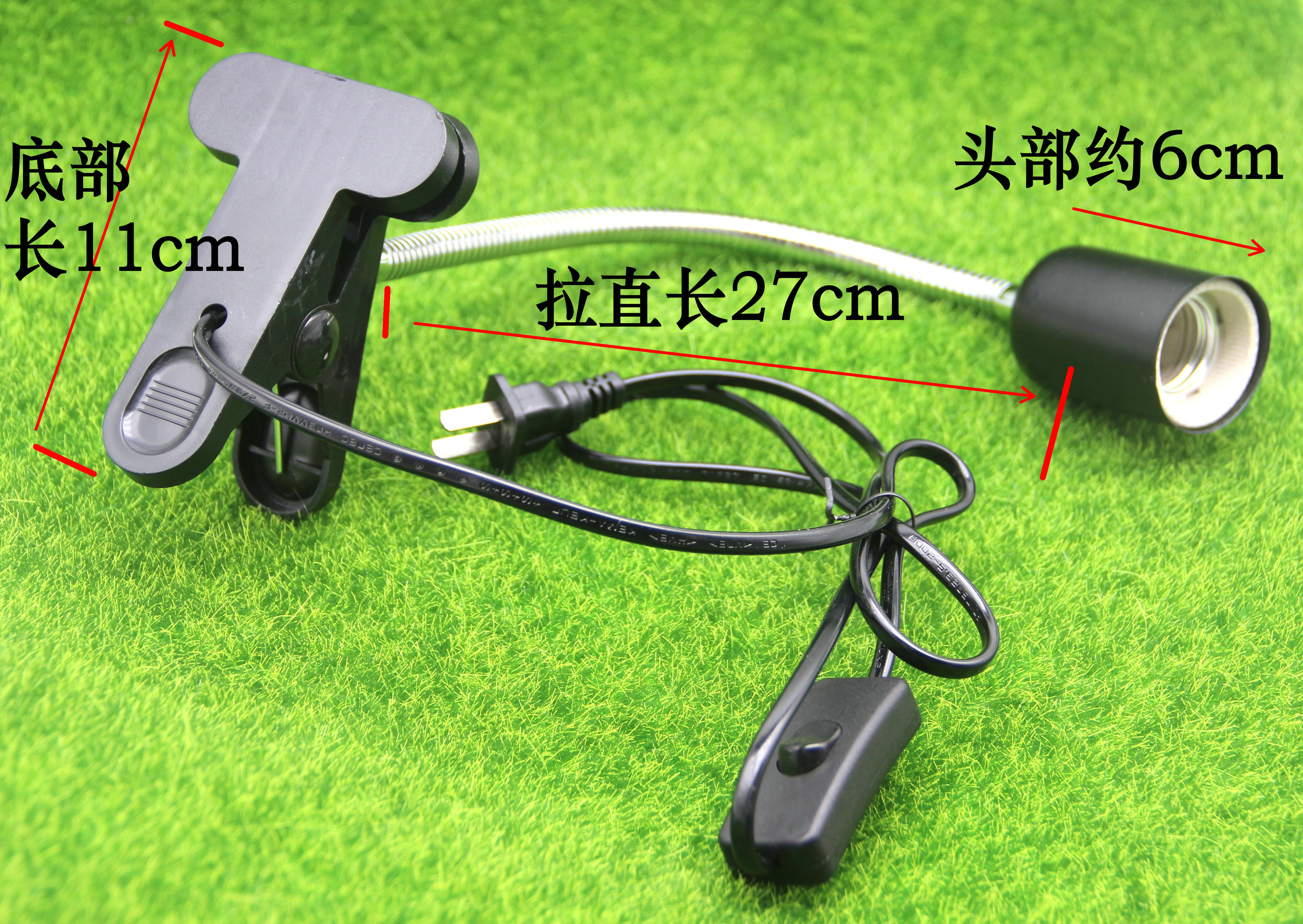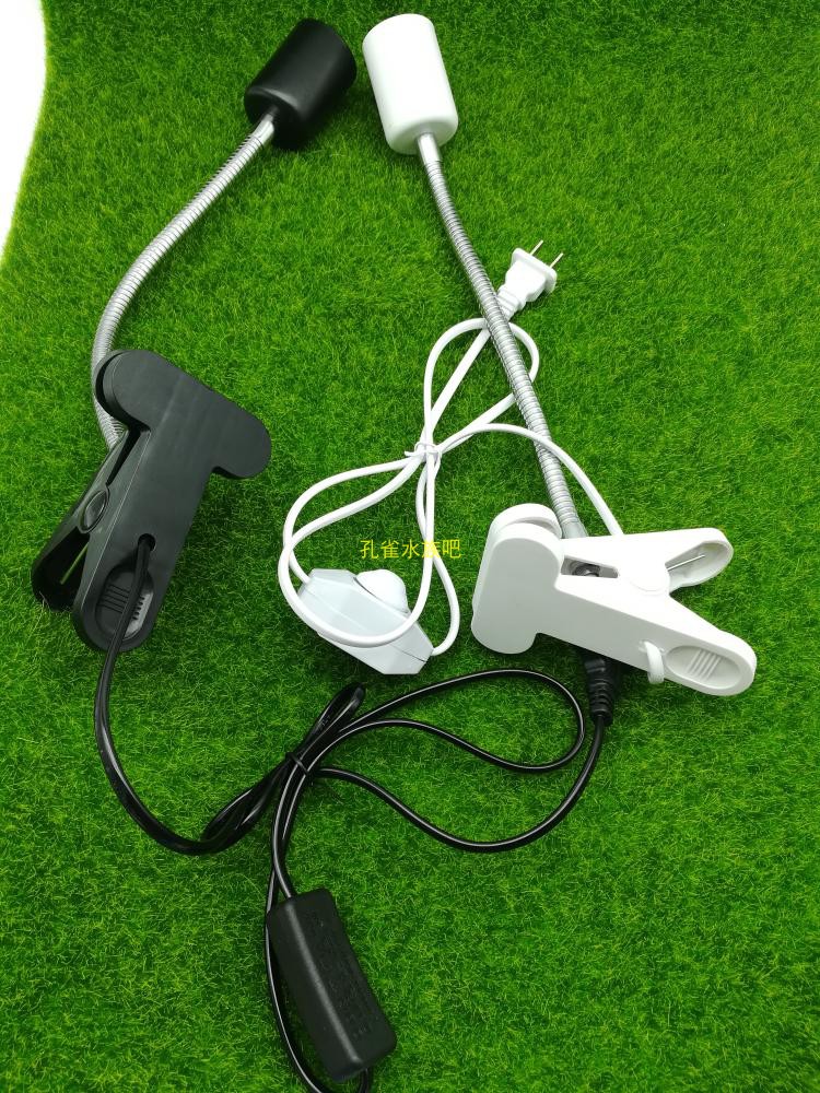 『名称』E27螺口转向夹子灯座 \ \『颜色』黑色,白色。 \ \『材质』优质钢铁烤漆 \ \『尺寸』夹子开口最大可夹4cm,灯筒长115mm,圆筒直径50mm,灯头可伸缩长度30mm。 \ \\ \ 『用途』可适用于台灯,展柜,服装店射灯照明,鱼缸水族箱保温,照明。 \ \\ \ \ \ \ \ \ \ \ \ \ \ \ \