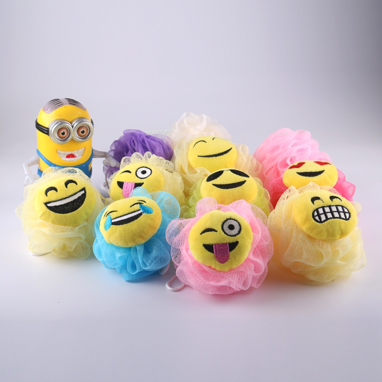 Bola de baño de dibujos animados QQ expresión forma flor de baño anti - dispersión de niños bola de baño súper suave nuevo tamaño grande
