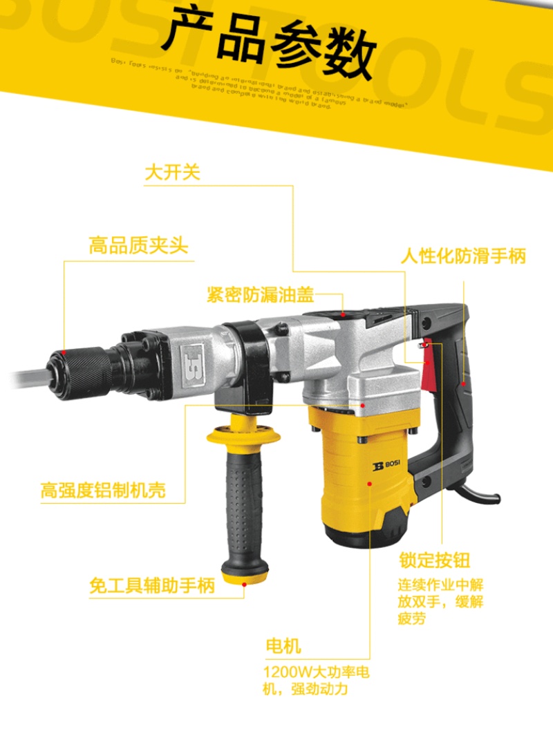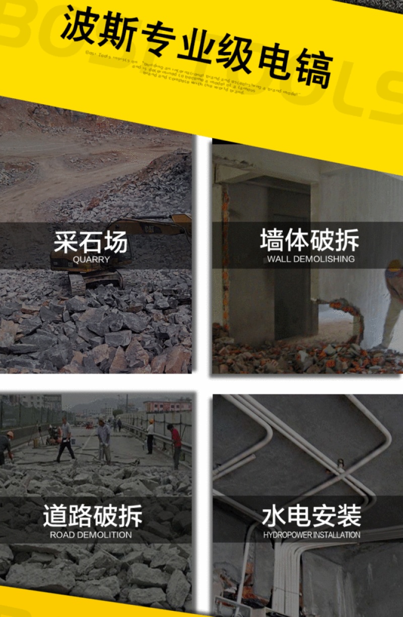 Pico eléctrico de alta potencia persa de grado industrial ranurado, demolición de paredes, hormigón, carretera pesada 95 pico eléctrico 65 herramientas eléctricas