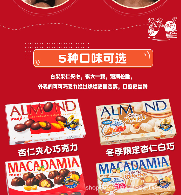 Japón Meiji badanmu Sandwich chocolate almendras nueces dulces de ocio regalo de San Valentín bocadillos