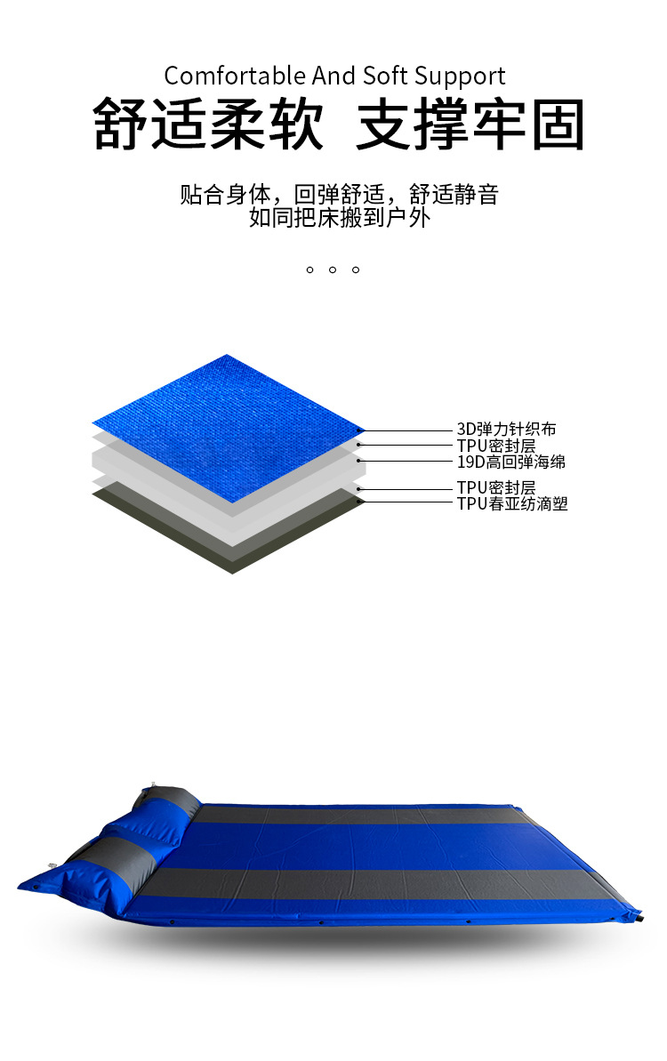 Campamento cama de colchón de aire, tienda de campaña esponja rebota, doble engrosamiento, colchoneta de cama inflable automática, campamento a prueba de humedad al aire libre al por mayor