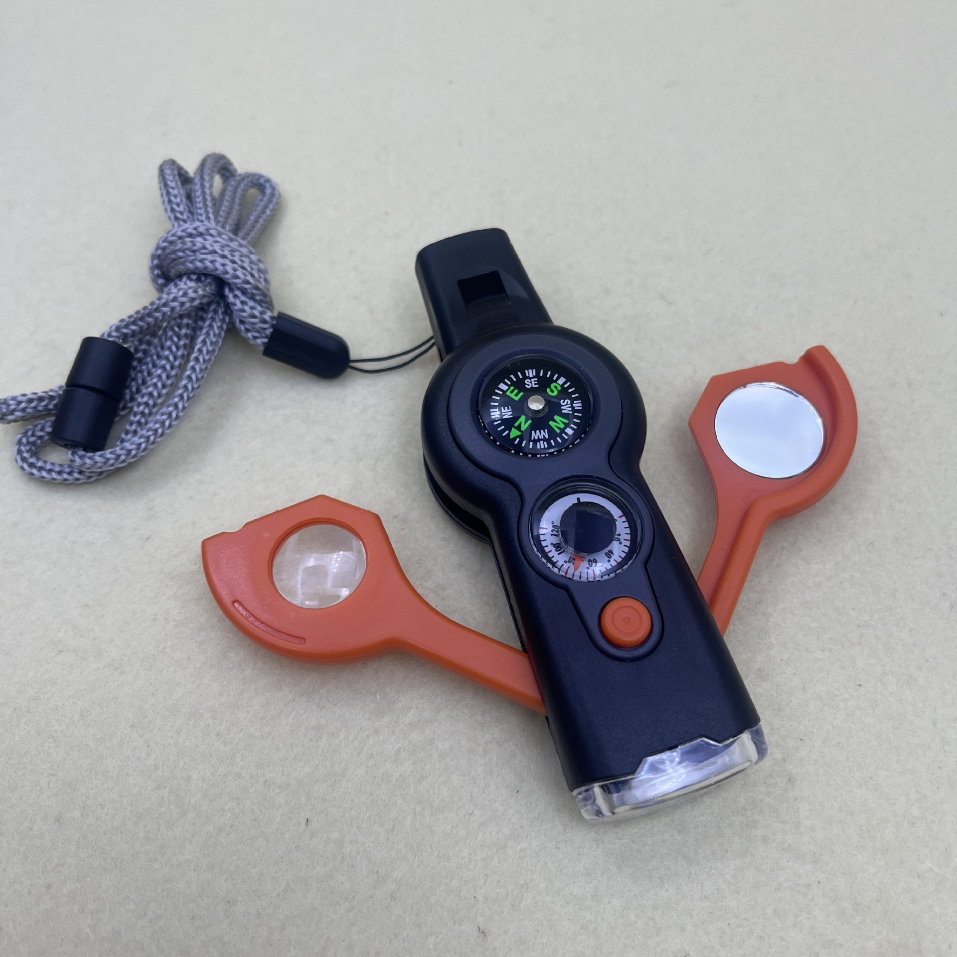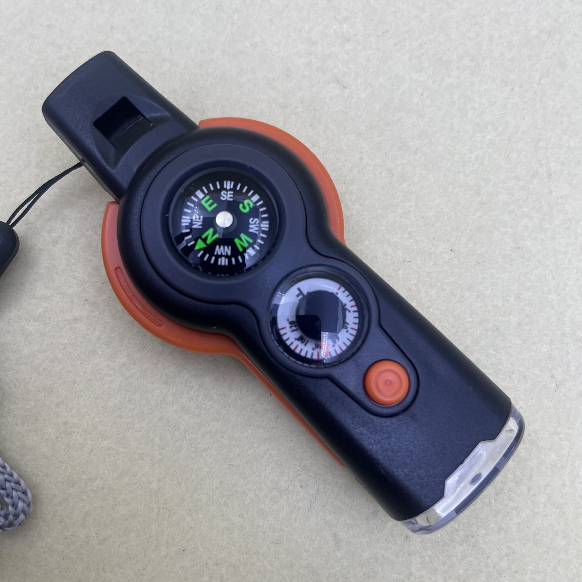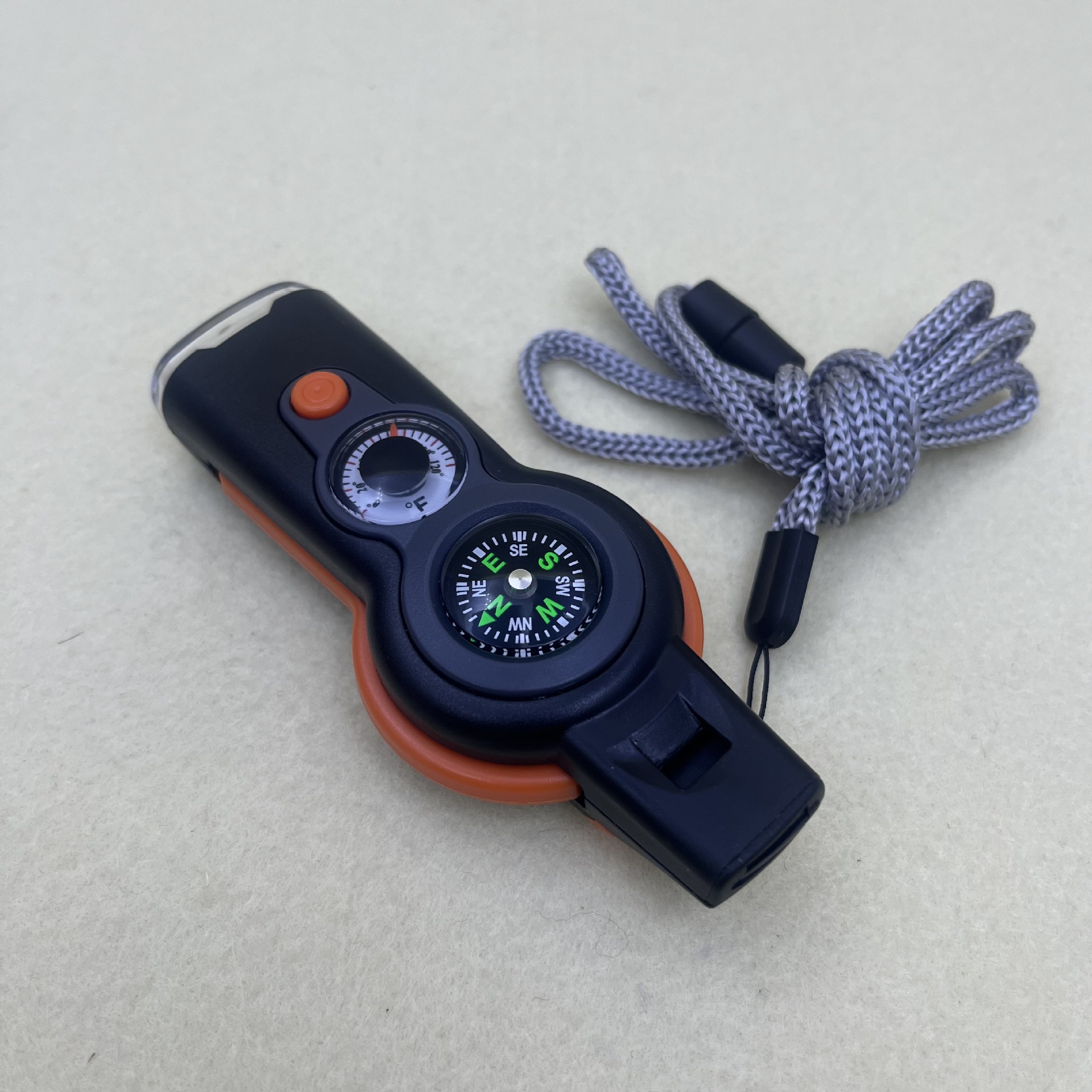 Nueva Brújula de silbato multifuncional de siete en uno al aire libre, silbato de supervivencia, Brújula de termómetro de linterna