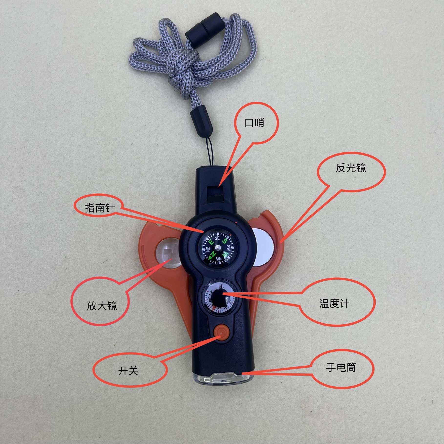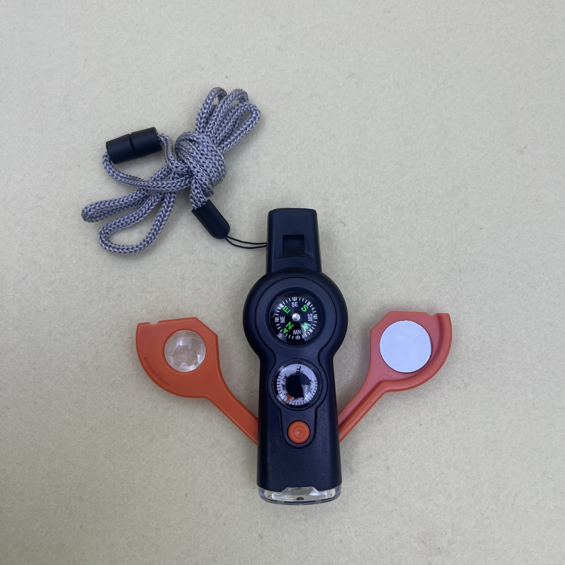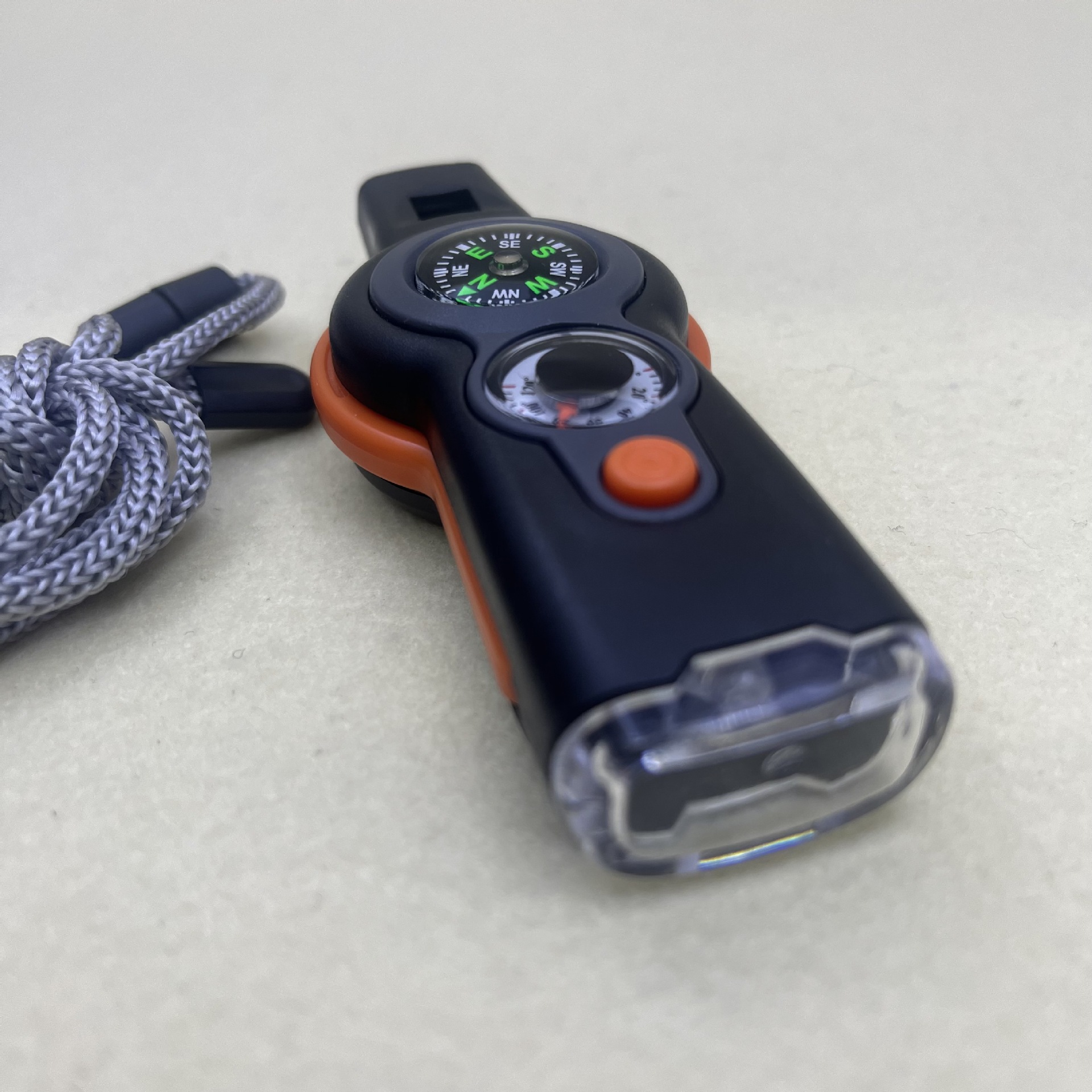 Nueva Brújula de silbato multifuncional de siete en uno al aire libre, silbato de supervivencia, Brújula de termómetro de linterna