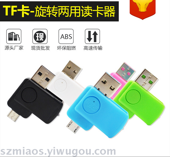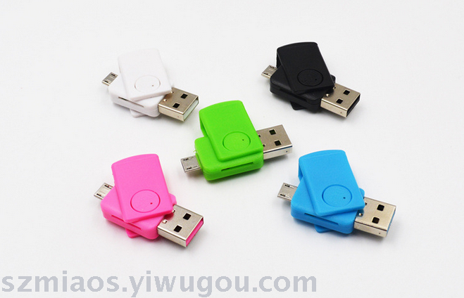 Micro USB接口;只要你的手机支持OTG功能,这款读卡器都是可以用的,可用机型,三星,小米,华为,OPP,只要插入一张内存卡,就是一个手机U盘了.