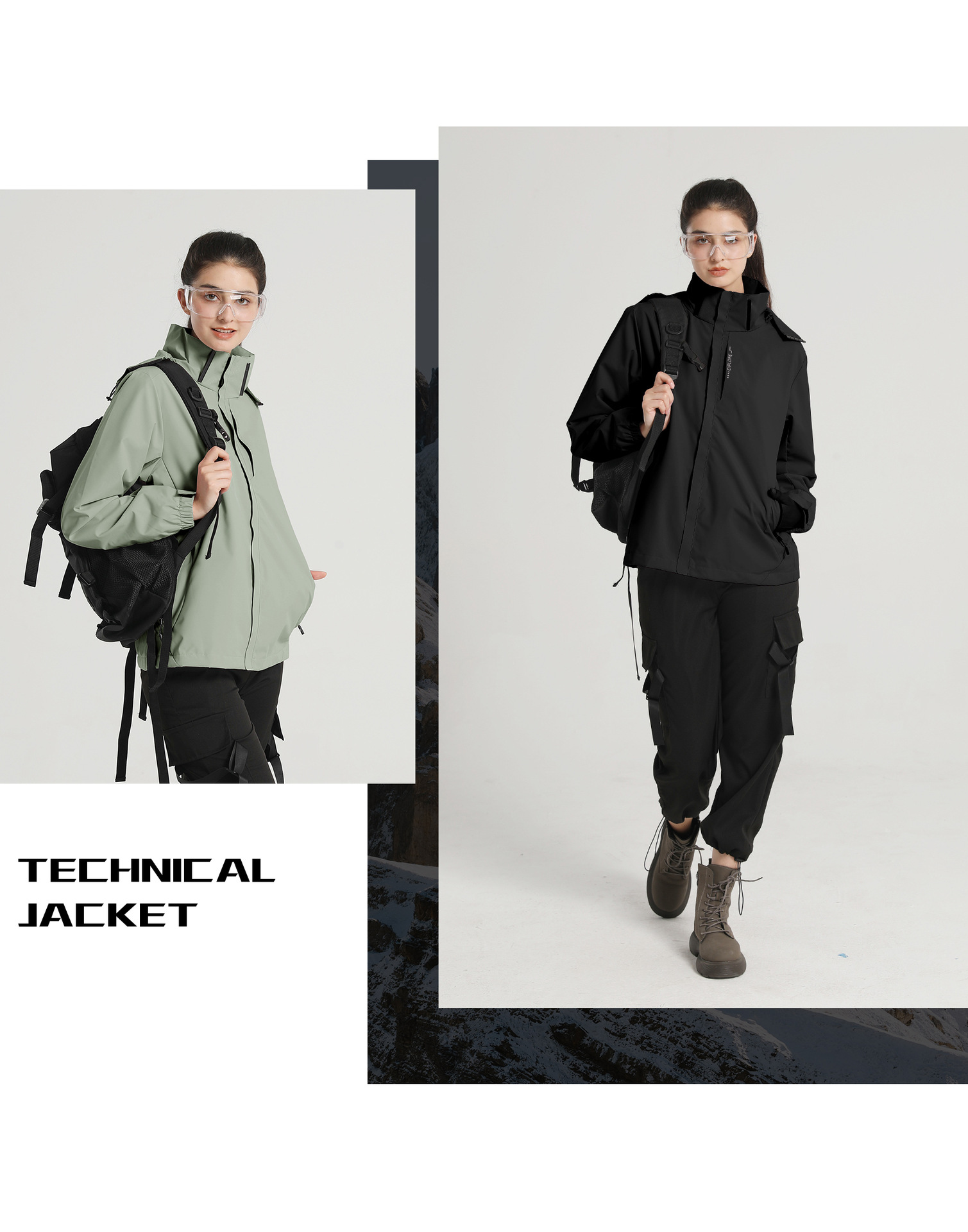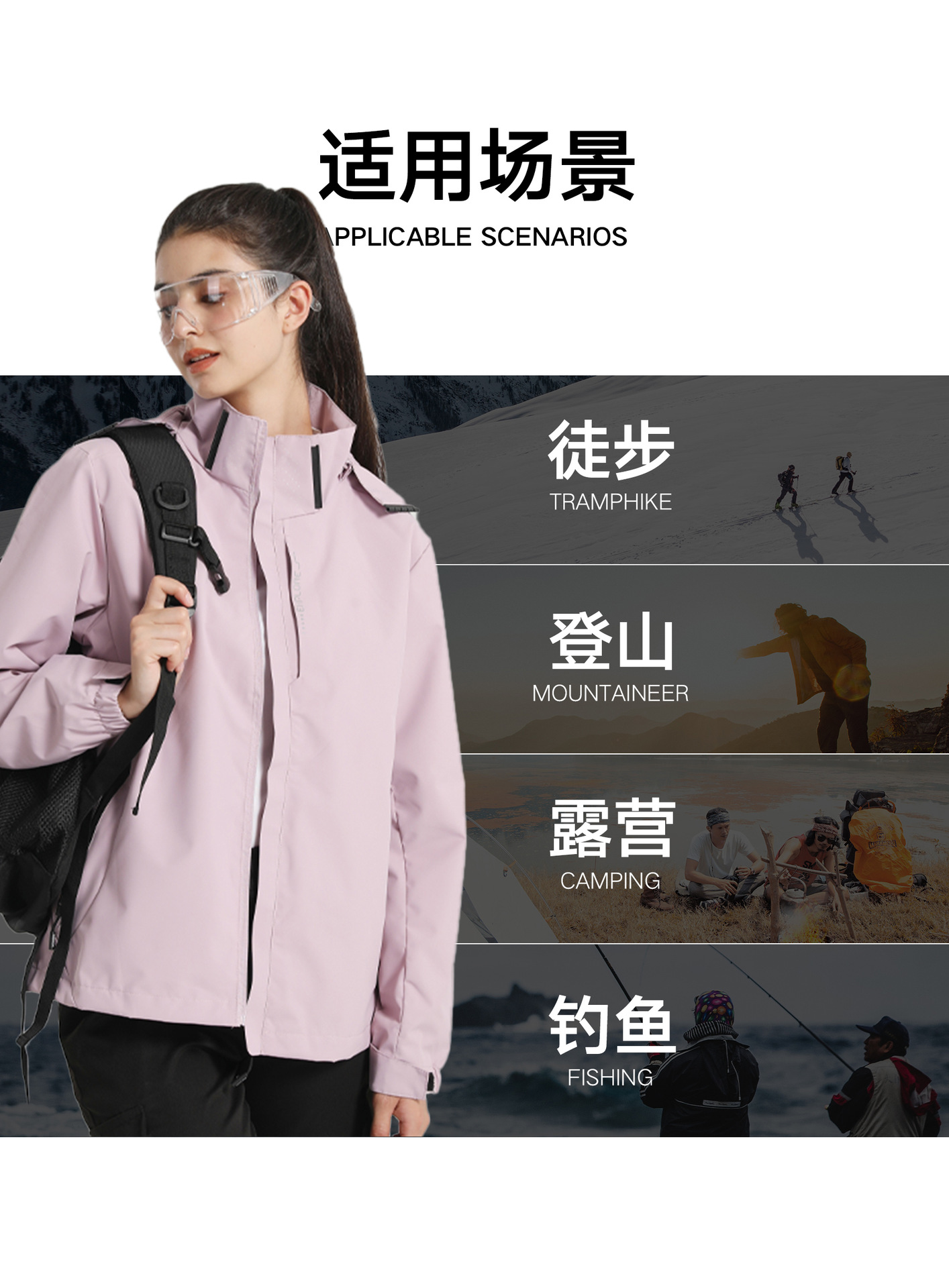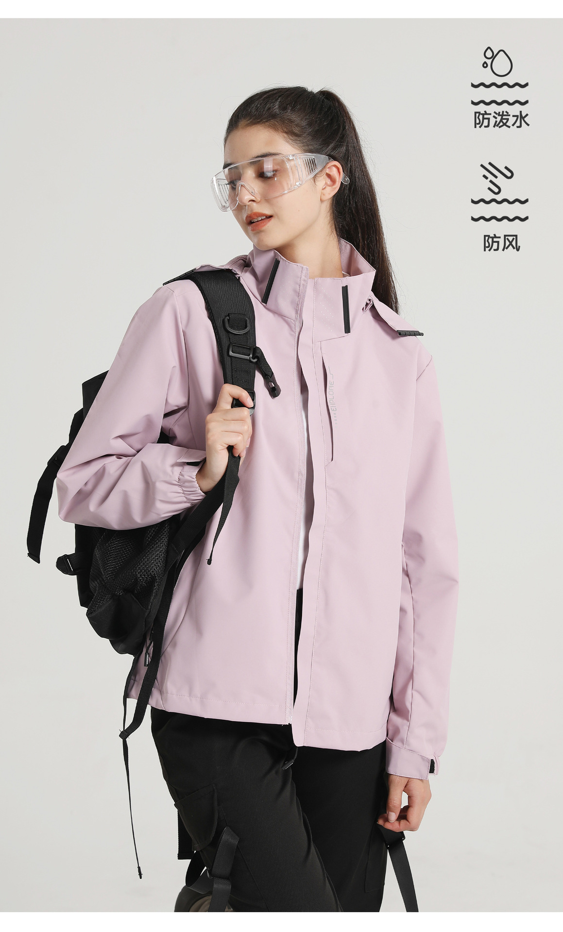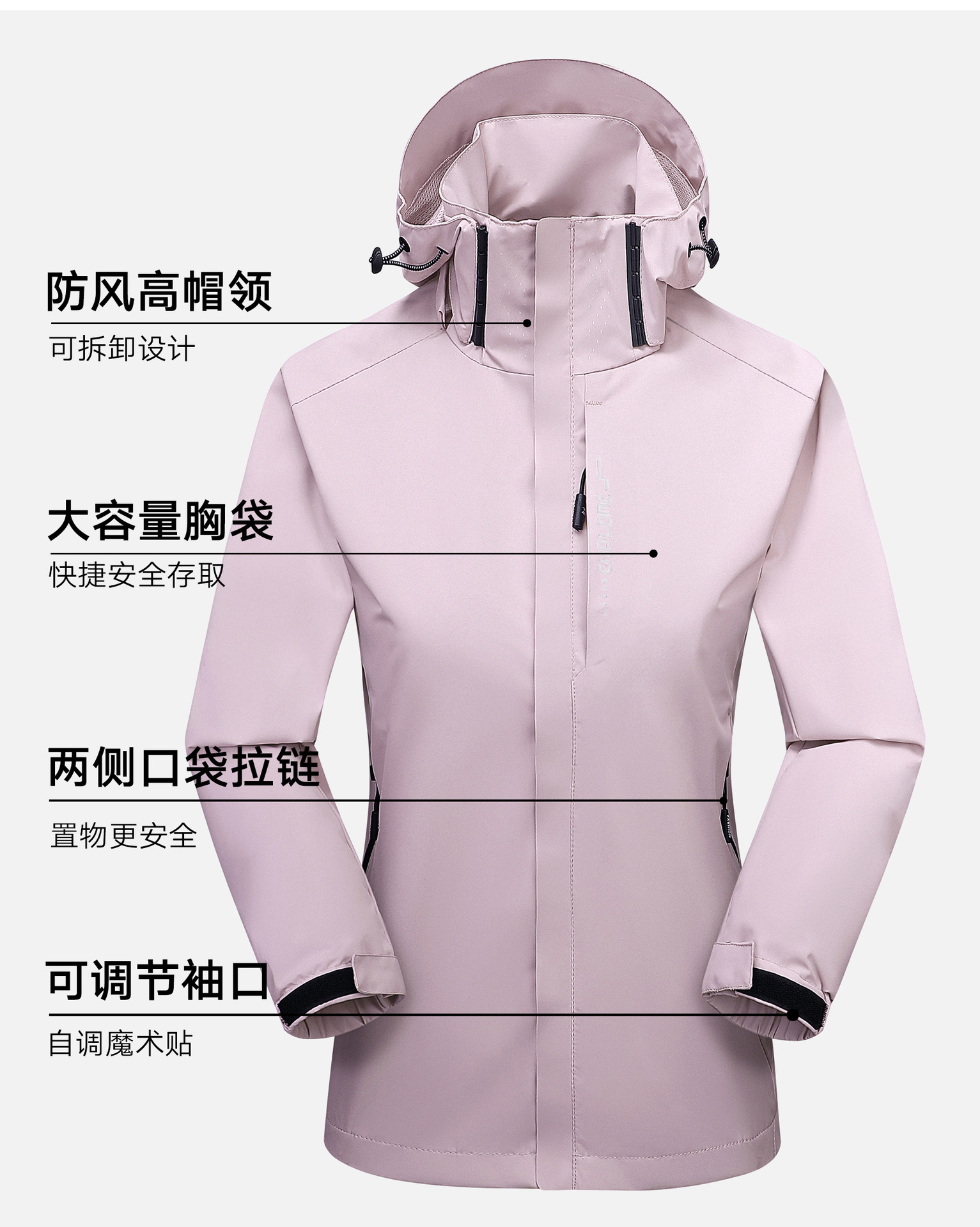 Ropa de carga desmontable de capucha para parejas, ropa de montañismo impermeable de un solo golpe, ropa de montañismo al aire libre para mujeres, un cabello