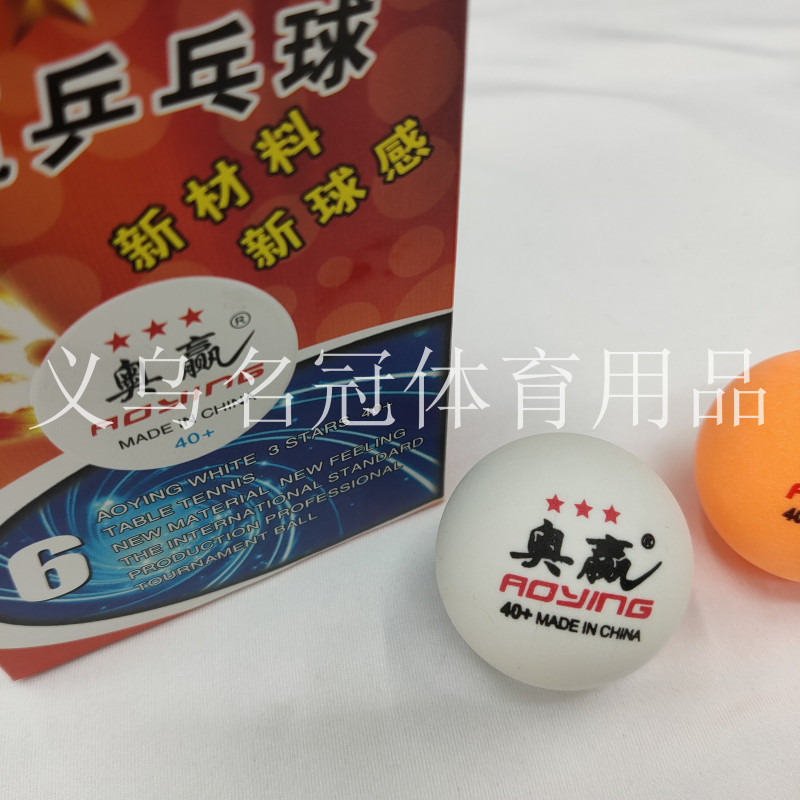 【品牌】:奥赢 【品名】:三星 【材质】:新材料ABS+ 防燃防爆 【规格】:40+ 【包装】:彩盒装,6粒/盒,240盒/件,如需散装,价格请联系客服 【适用对象】:学校学生训练练习学习用球,成人训练健身娱乐用球