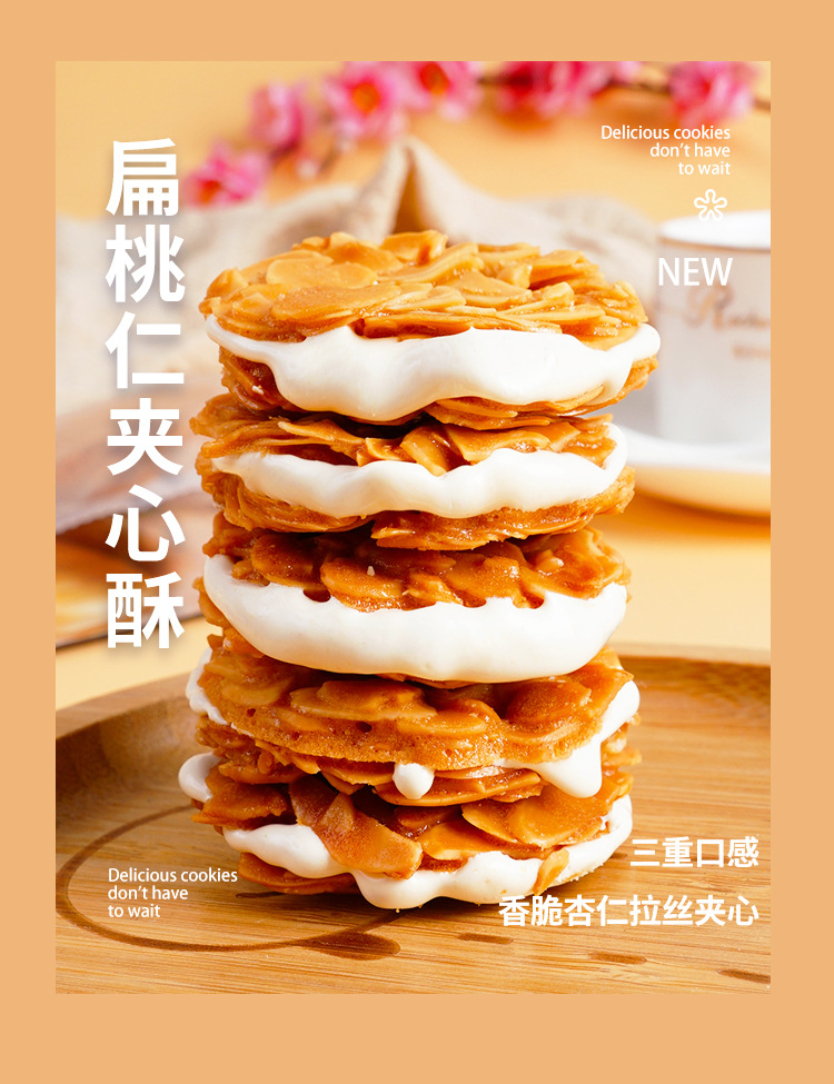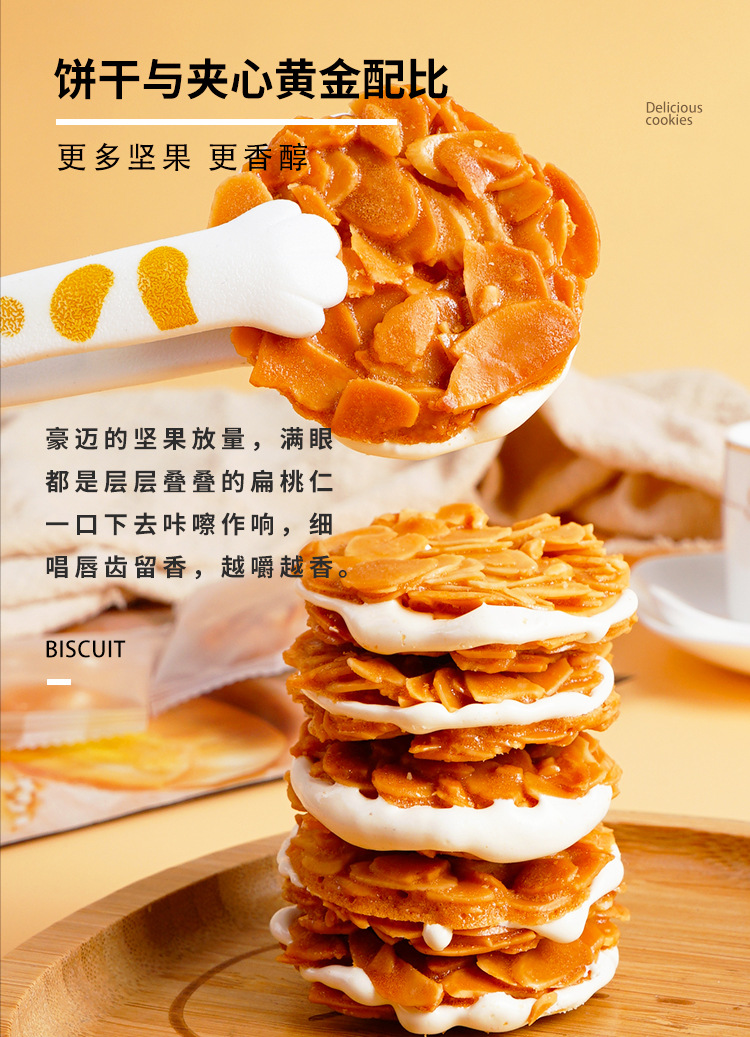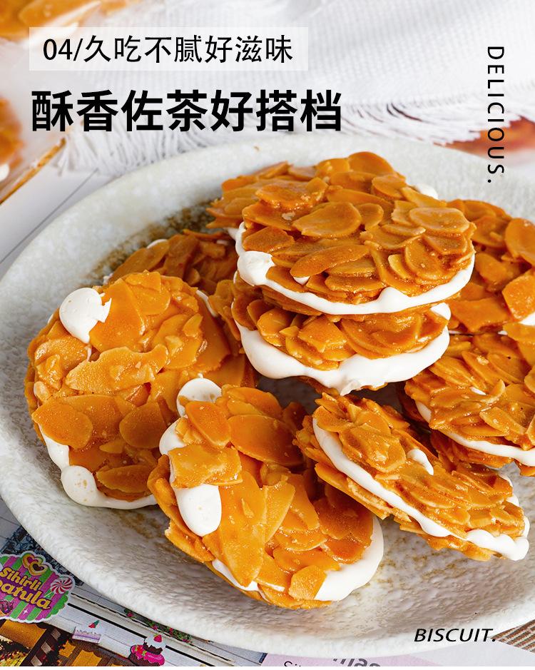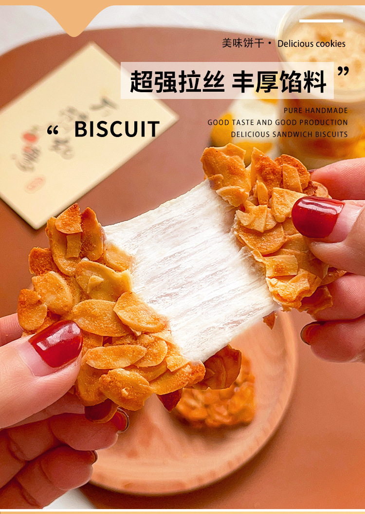 [pelo recto al contado] venta al por mayor de bocadillos rojos en línea con almendras, sándwiches de almendras, carne de res crujiente, almendras laminadas, nueces cepilladas