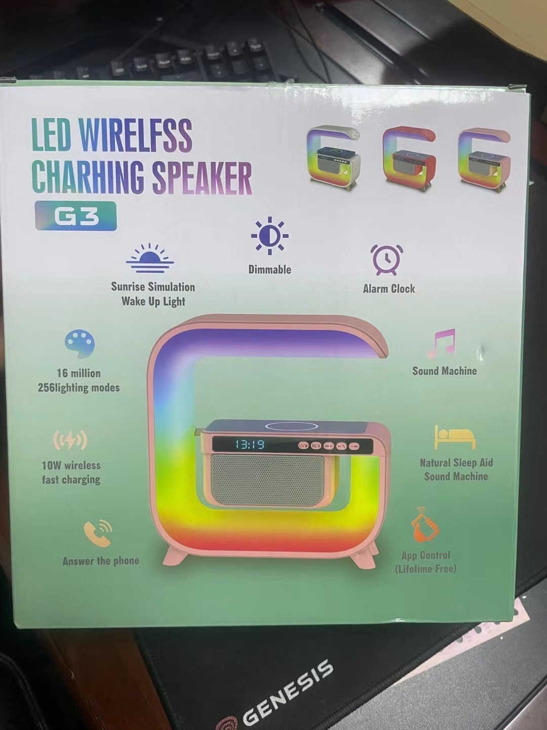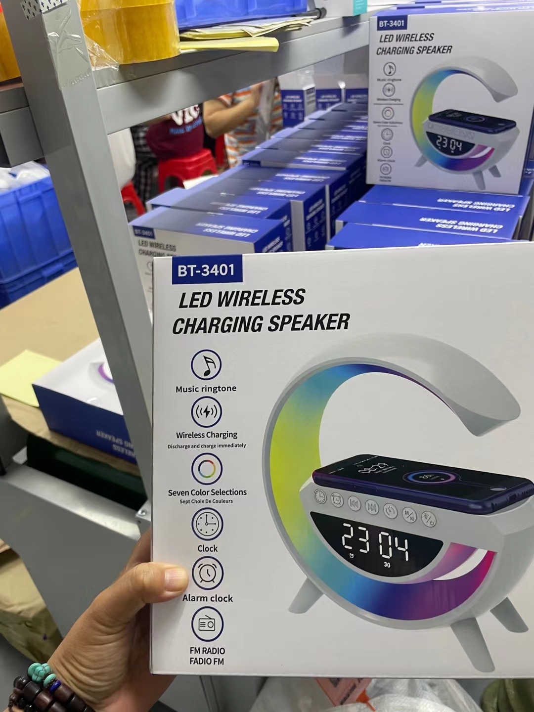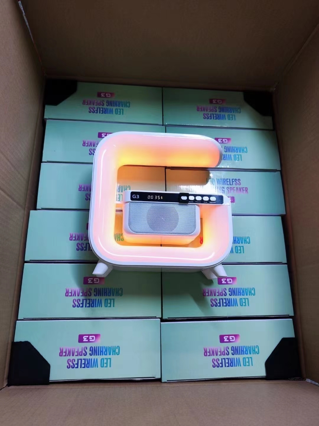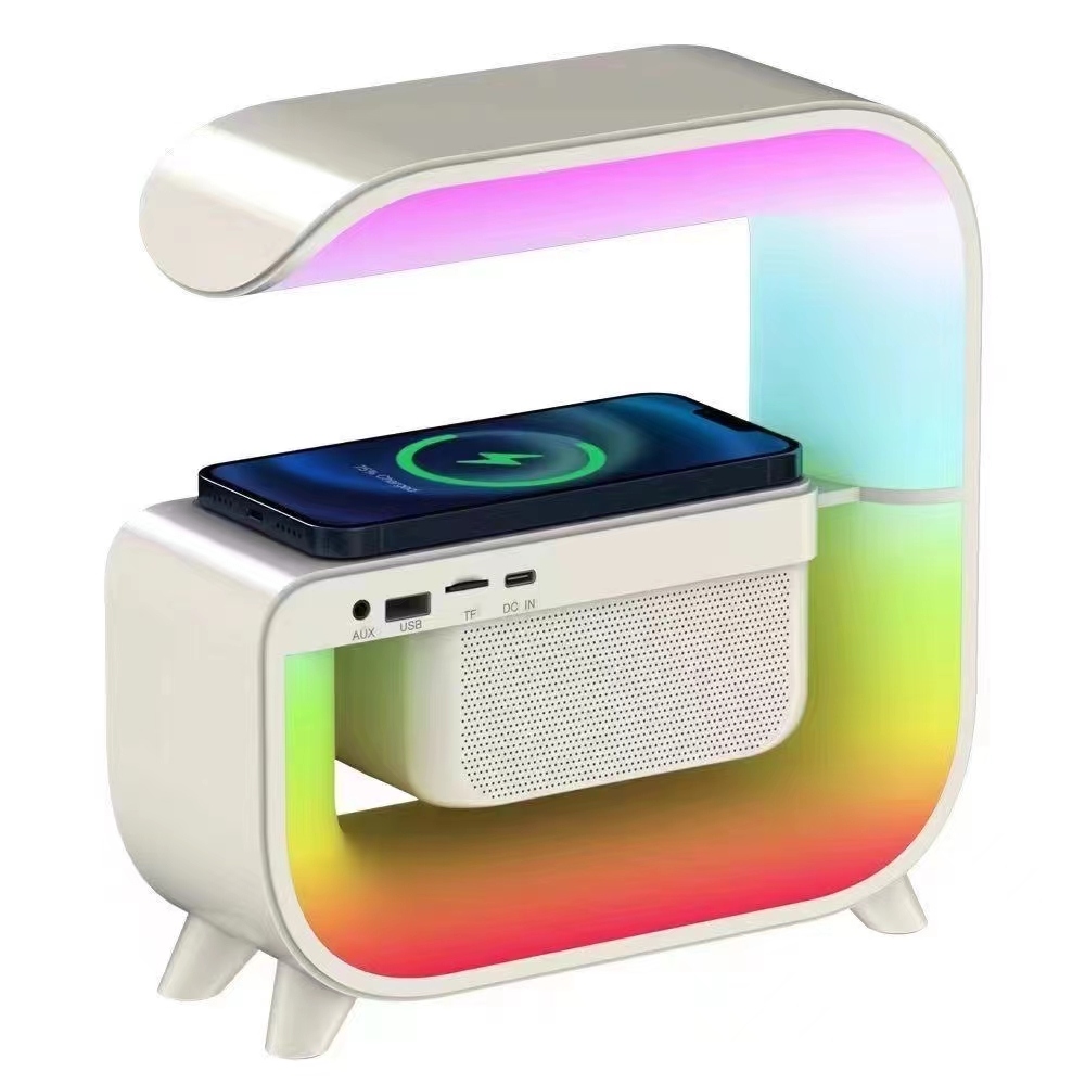 Carga inalámbrica de teléfonos móviles, tecnología de sonido inteligente, sensación de alta apariencia, luz de ambiente, pantalla digital electrónica, gran G de sonido Bluetooth