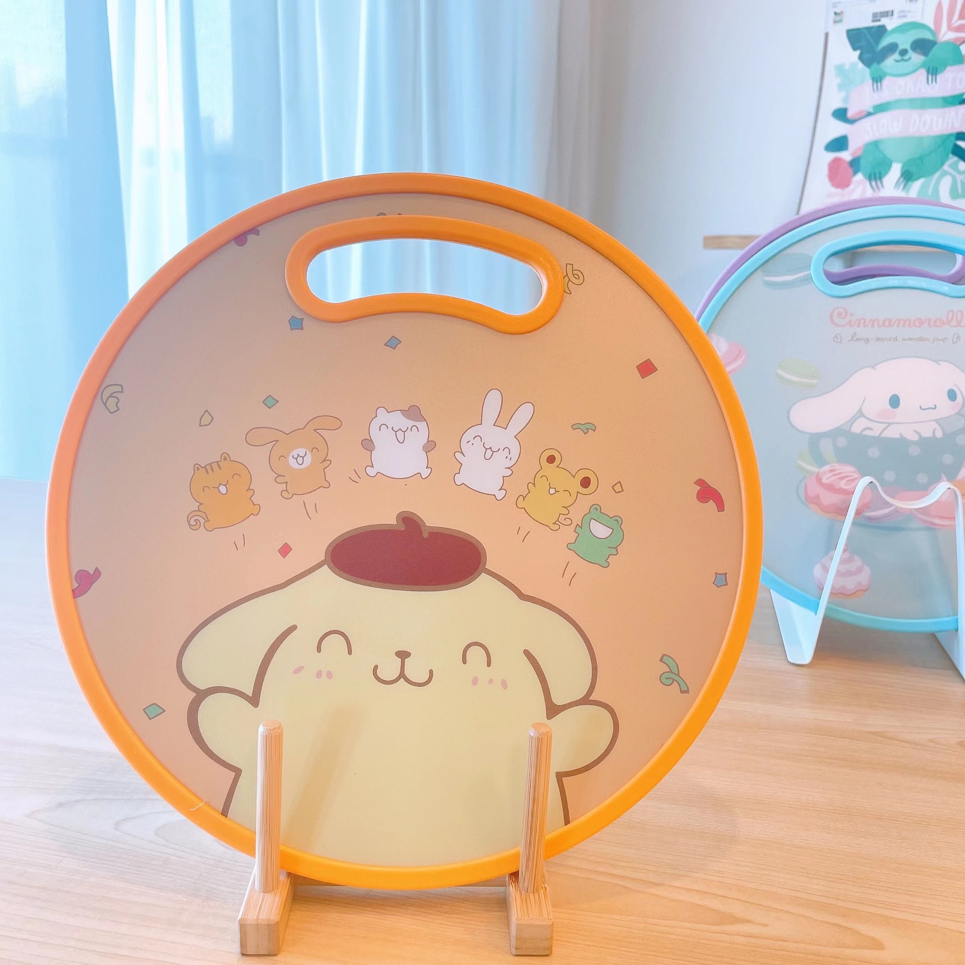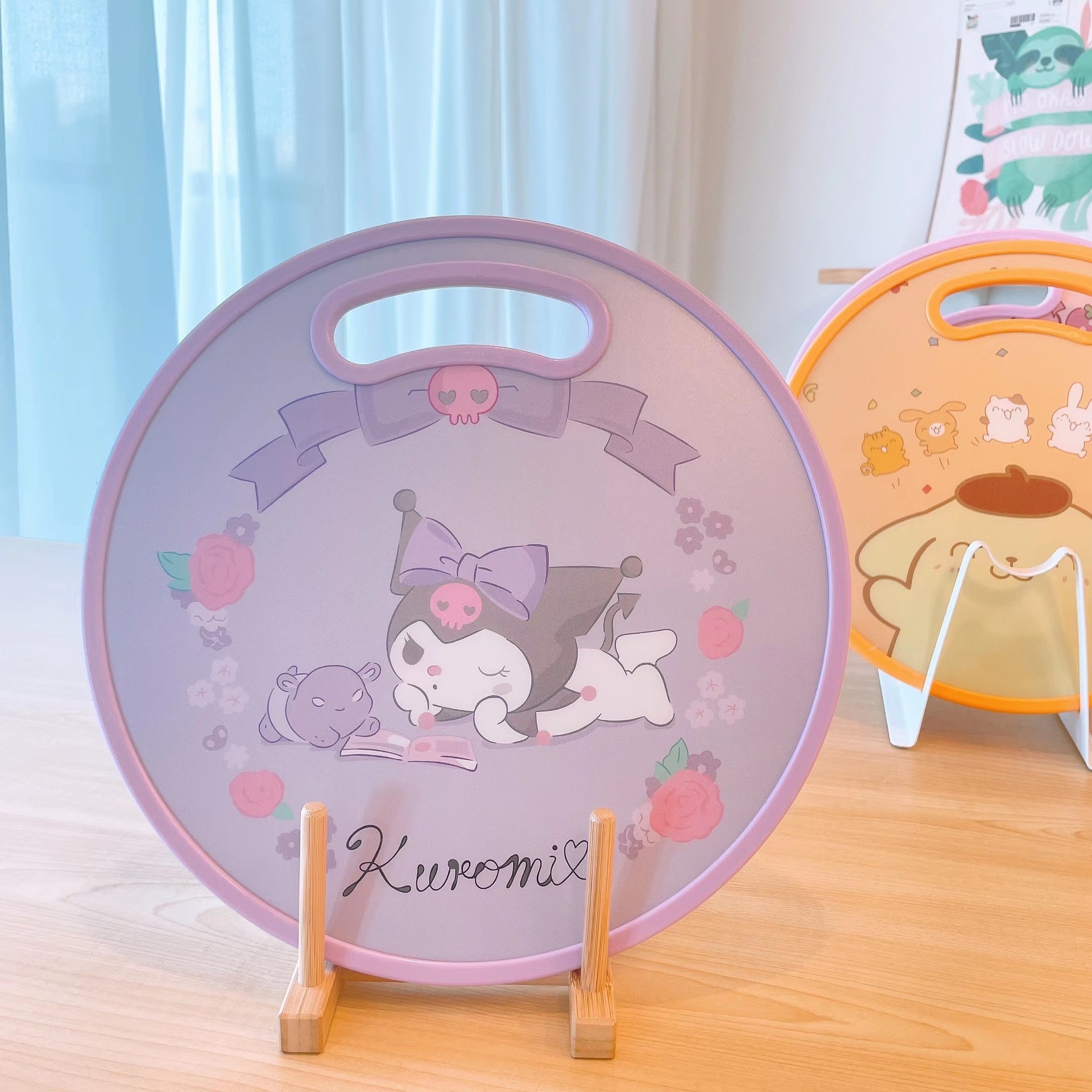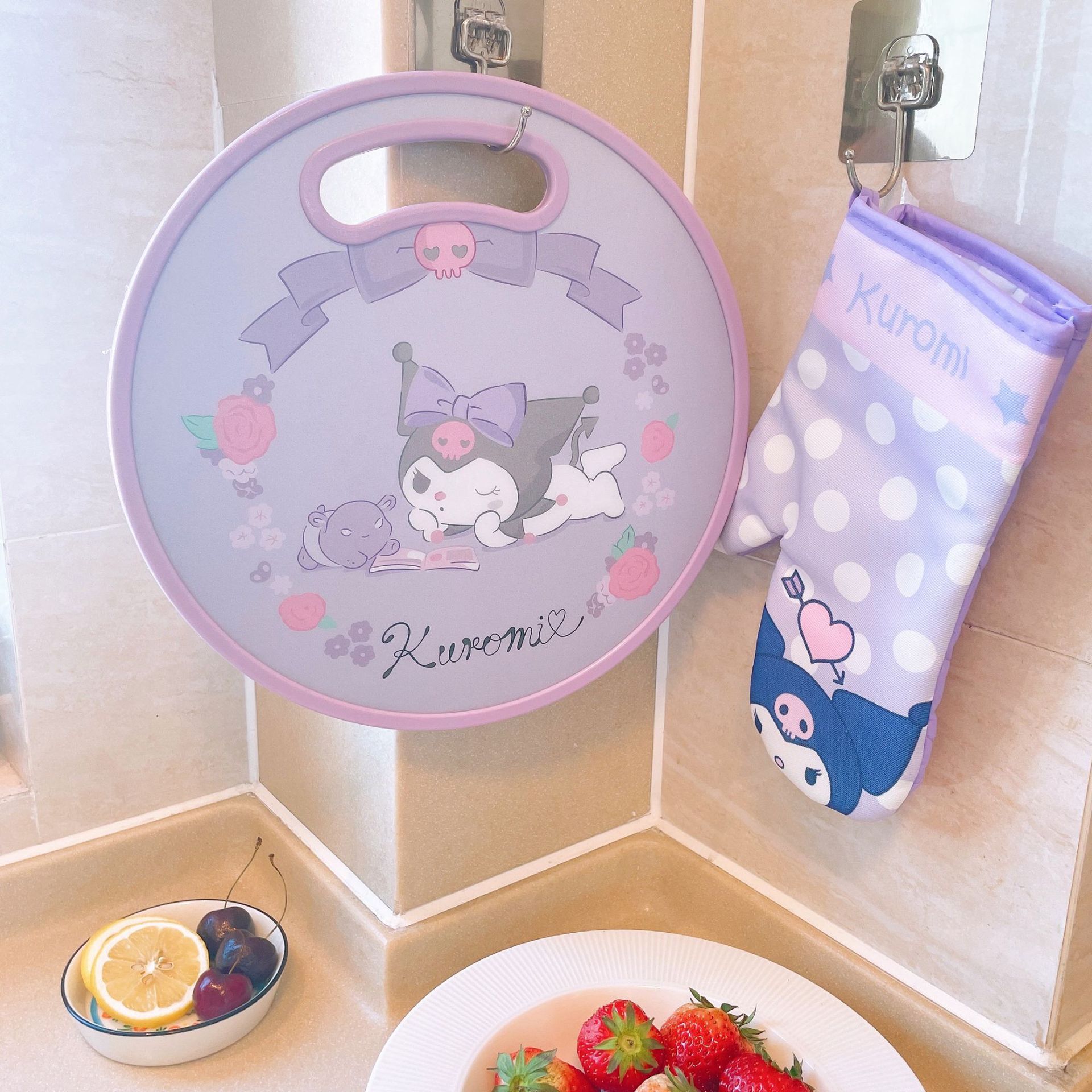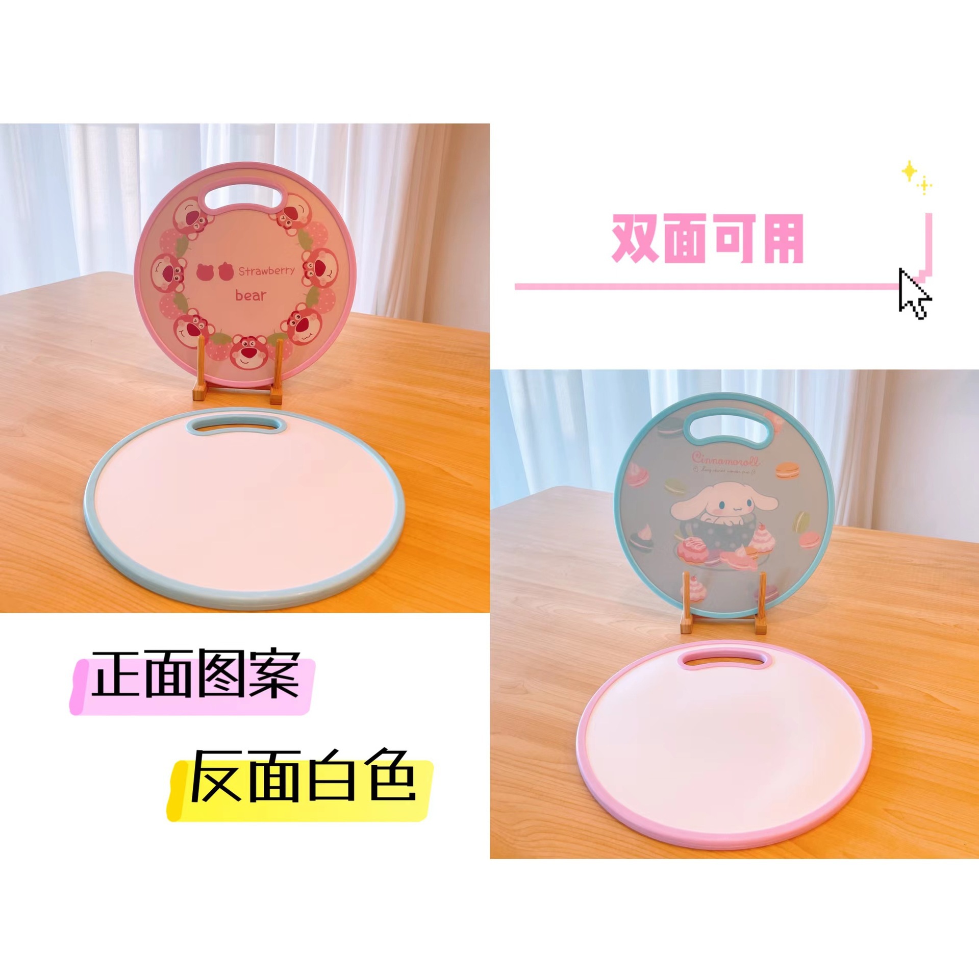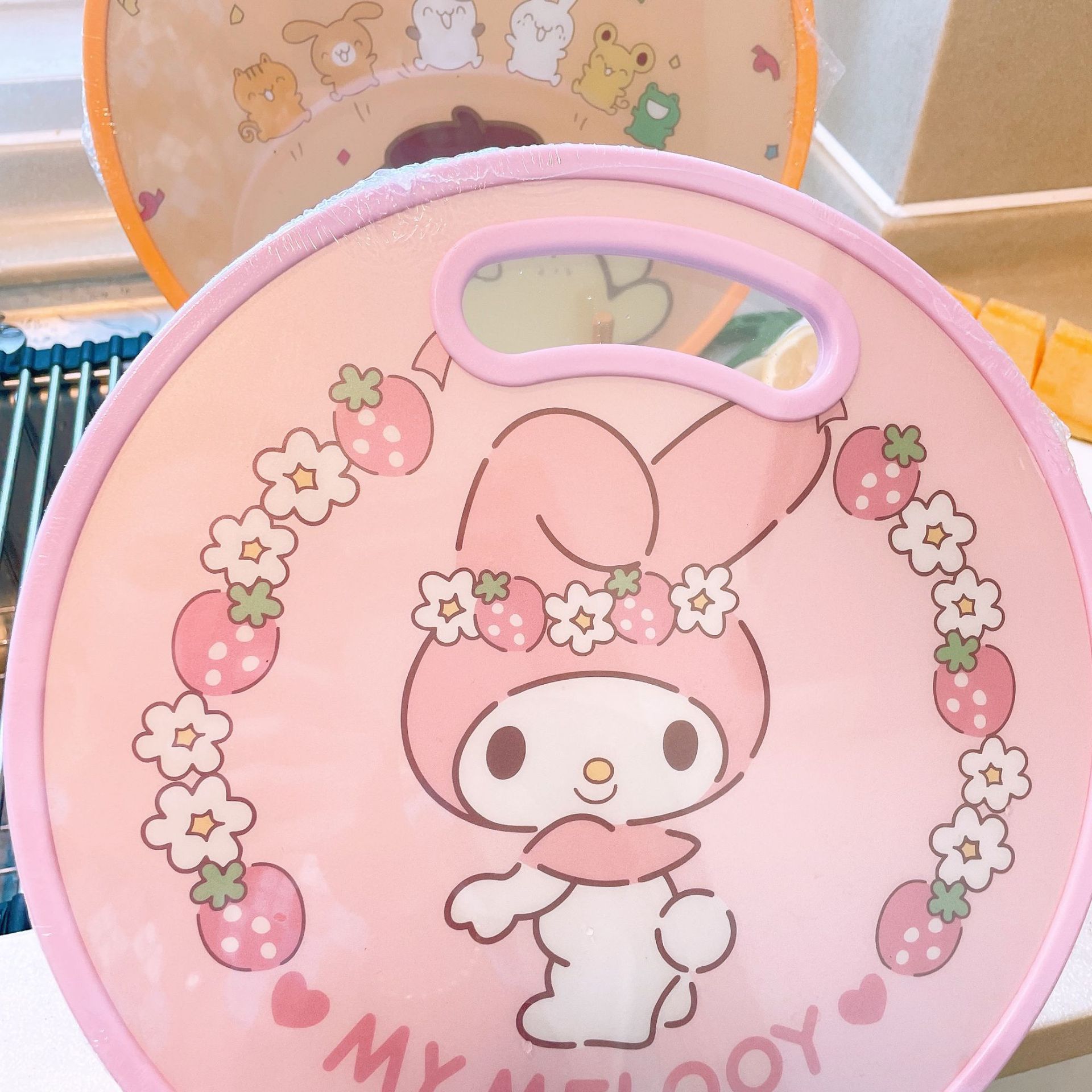 El nuevo dibujo animado kulomi Strawberry Bear Lovely Round Vegetable Board puede cortar la tabla de cortar en el lavabo antidesbordamiento en ambos lados.