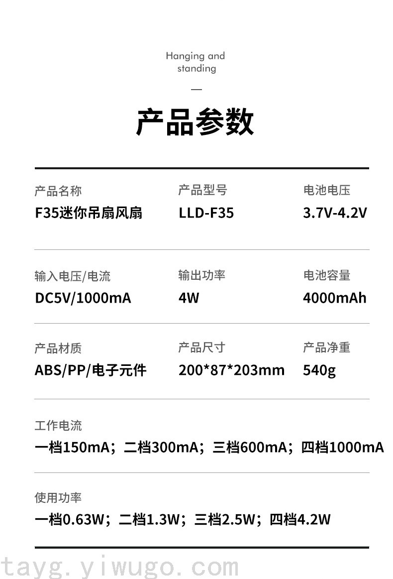 产品名称: F35迷你吊扇风扇 产品编号: D-F35 电池容量: 4000mAh 材质: ABS/PP/电子元件 装箱量: 20PCS 产品尺寸: 200.5*87*203mm 彩盒尺寸: 190*91*194mm 外箱尺寸: 47.5*39.5*41cm 单个净重/毛重: 540g/652g 整箱净重/毛重: 16kg/17kg 款式/颜色: 白色/绿色 证书类型: 质检报告、CE、ROSH、FCC ![]() ![]() ![]() ![]() ![]() ![]() ![]() ![]() ![]() ![]() ![]() ![]() ![]() ![]() ![]() ![]() ![]() ![]() ![]() ![]() |