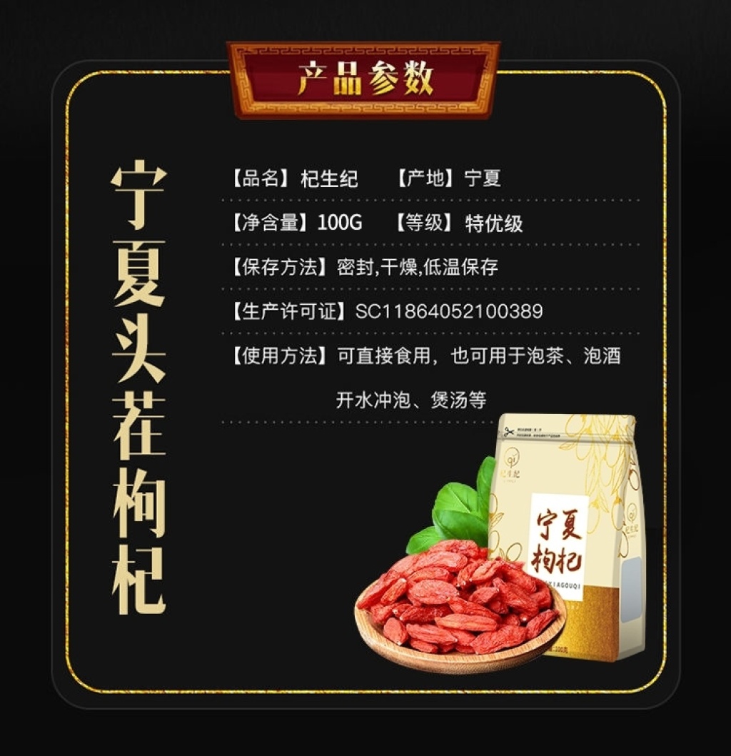 Wolfberry Ningxia grado especial 100g * 1 Bolsa de partículas grandes limpias auténtica zhongning agua empapada té de wolfberry masculino Gou Qi salvaje