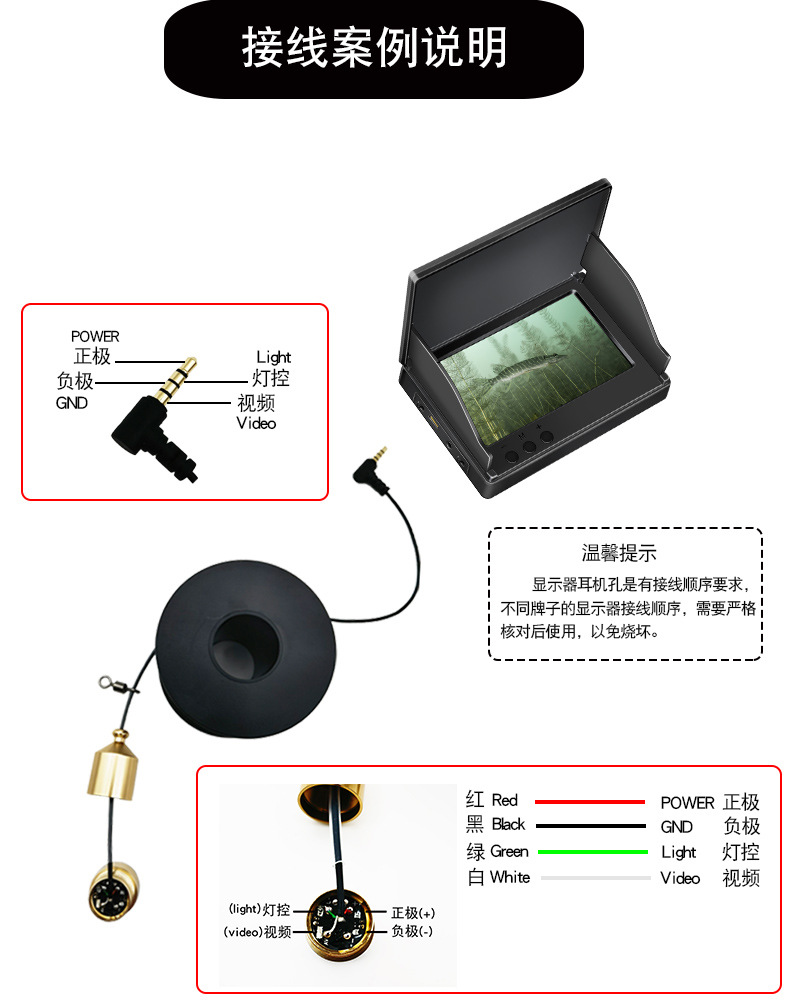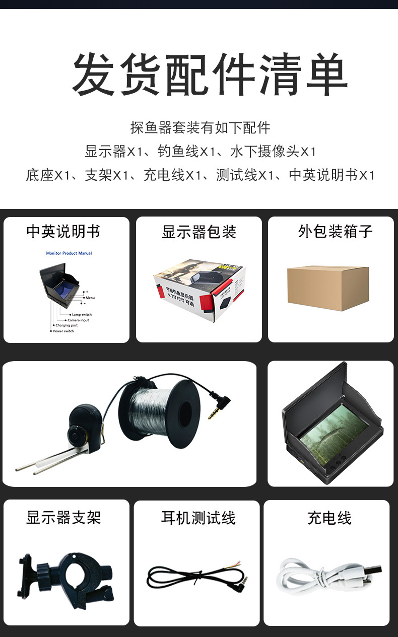 Detector de peces de alta definición submarino pantalla visual cámara submarina pesca de hielo pesca marina detector de peces de anclaje visual