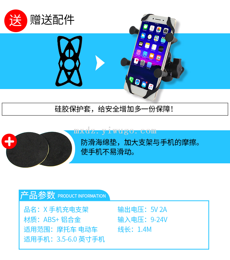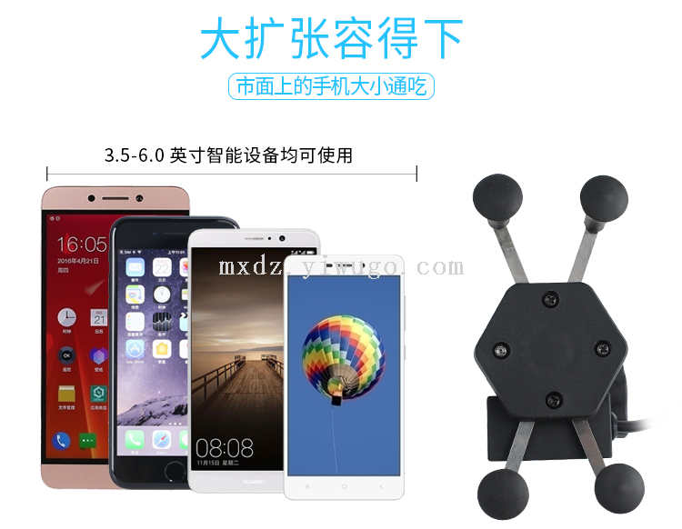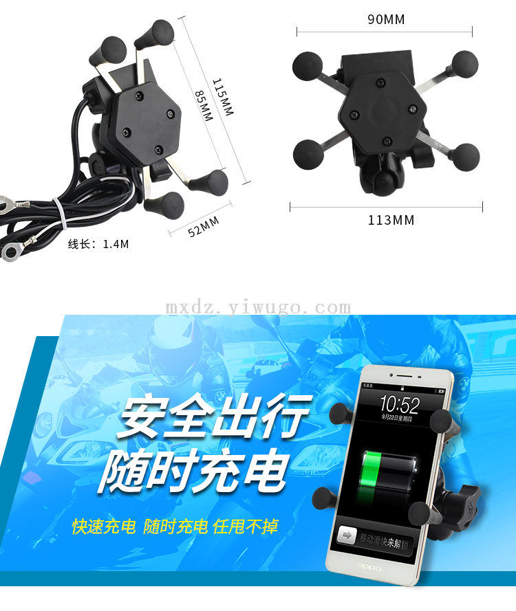 Soporte metálico para teléfonos móviles tipo X de motocicleta con cargador USB espejo retrovisor para teléfonos móviles a bordo al por mayor